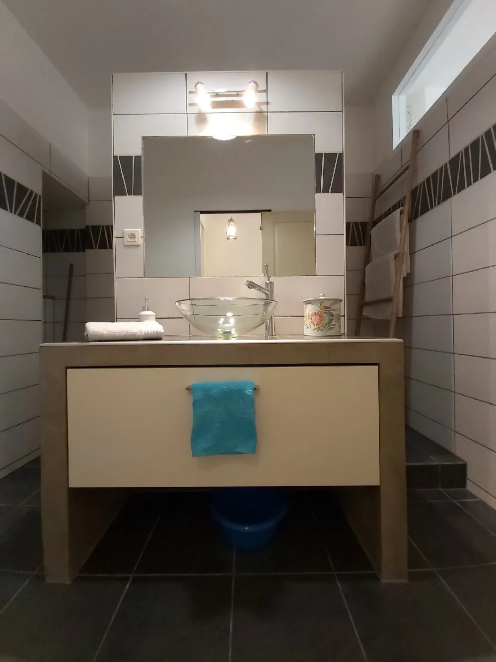 La salle d’eau, accessible par la chambre, termine cette composition en vous proposant une belle surface très fonctionnelle avec WC indépendants de la douche.