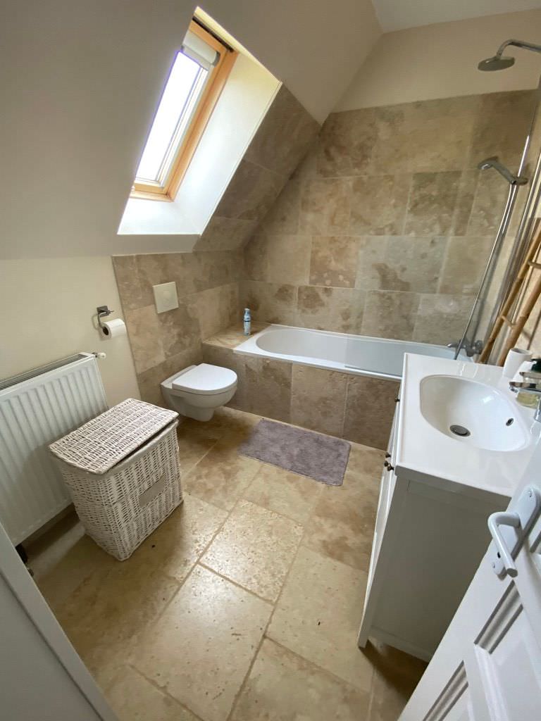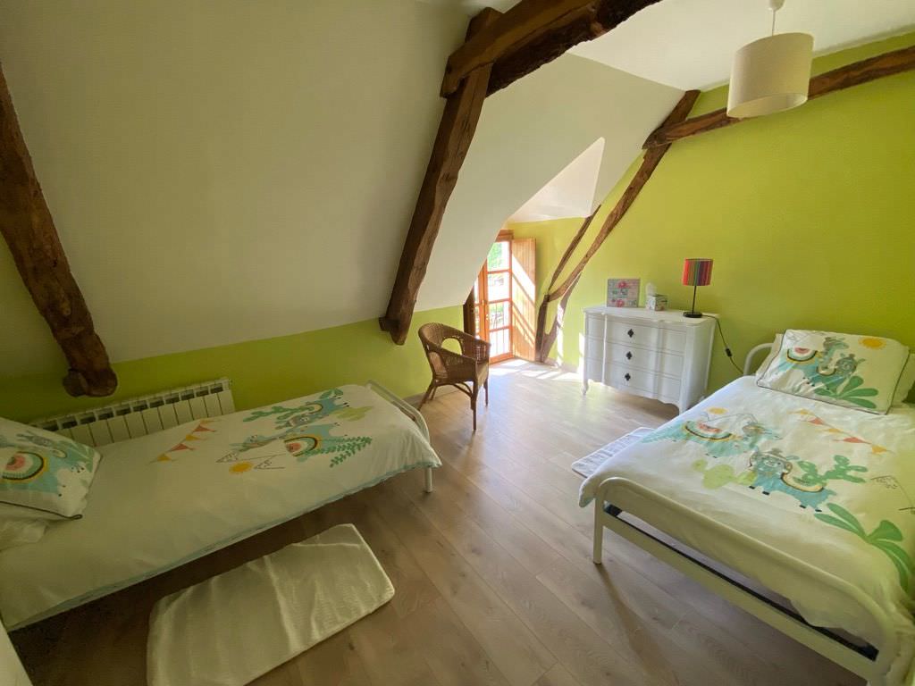 Tourné vers la campagne, le Cottage comprend une belle pièce à vivre (1 canapé d’angle 6 places, 1 fauteuil, poêle à bois, TV, table repas), une cuisine de grand confort aménagée avec éléments intégrés (lave-vaisselle, réfrigérateur, congélateur, micro-ondes, four), un placard avec lave-linge. A l’étage, une chambre (1 lit 2 personnes en 140), une chambre (1 lit 2 personnes en 160), une chambre (2 lits en 0,90) salle de bains avec wc. 1 grande terrasses couverte avec salon de jardin, barbecue, qui donne accès à une salle d’eau fermée avec wc douche à l’italienne. Piscine privée avec alarme devant la terrasse avec bains de soleil. Trampoline.