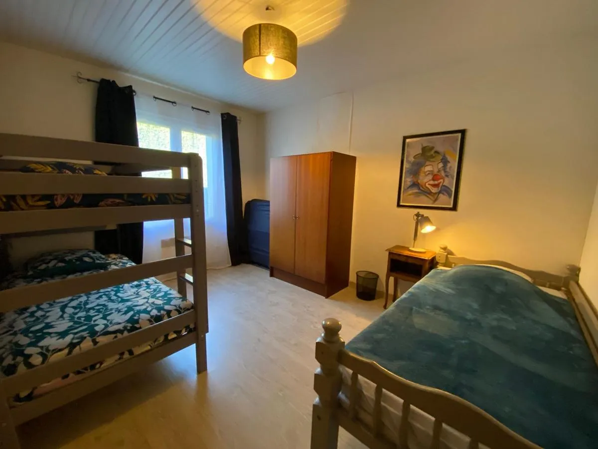 Gîte indépendant, de plain pied, à proximité de la maison des propriétaires, dans un village. 3 chambres (2 lits 140, 2 lits 90 superposés), possibilité d’un couchage supplémentaire 90, salle d’eau, cellier/buanderie (lave-linge), coin-cuisine (lave-vaisselle)/séjour (canapés, télévision, poêle à granulés, accès internet/wifi), chauffage électrique, terrasse (m²) et jardin (m²) clos privés, parking privé, salon de jardin, barbecue.