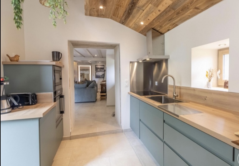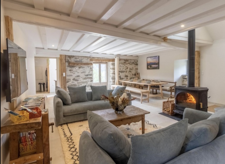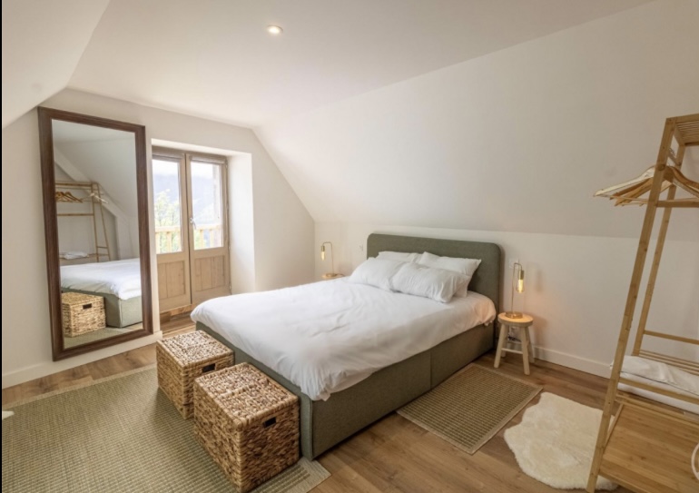 Une Grange entièrement rénovée en 2025 avec des prestations de qualité, 3 chambres, 2 salles de bains, une cuisine équipée, une pièce à vivre spacieuse et un extérieur avec une vue imprenable sur le Val d’Azun .