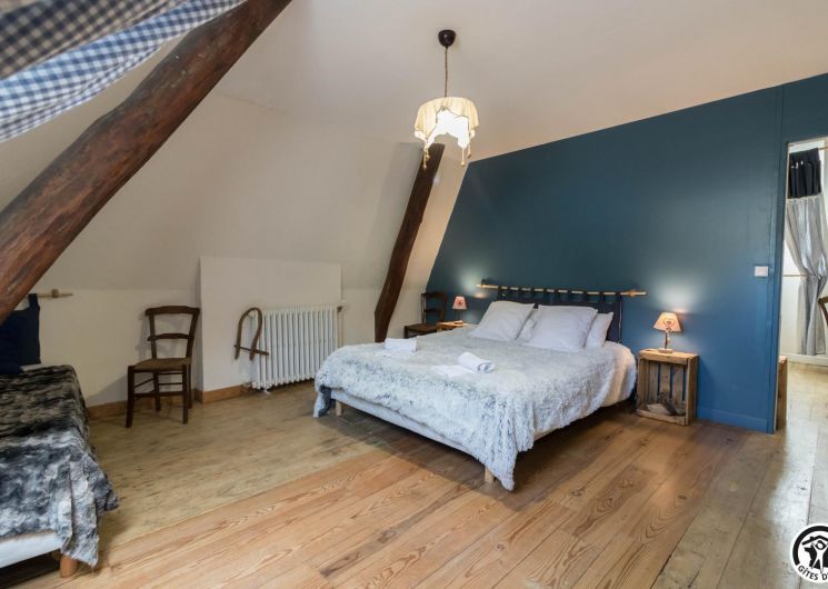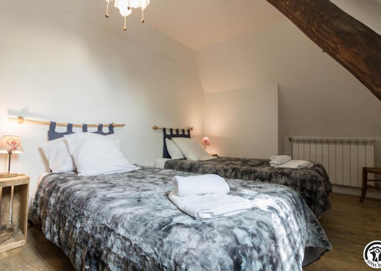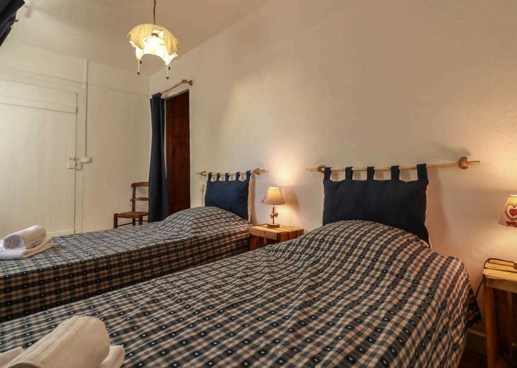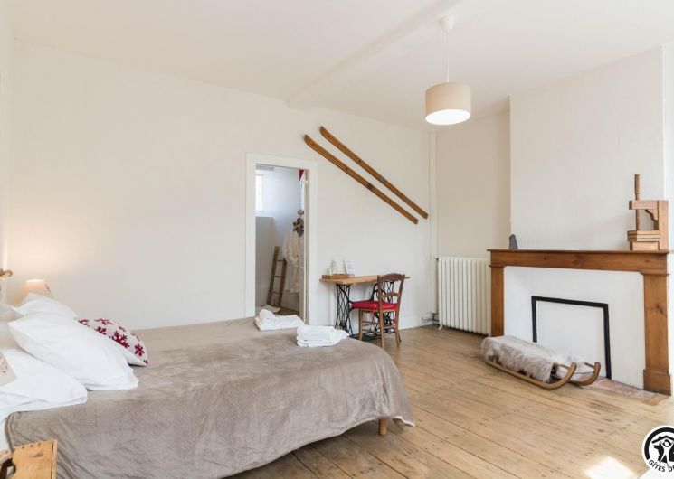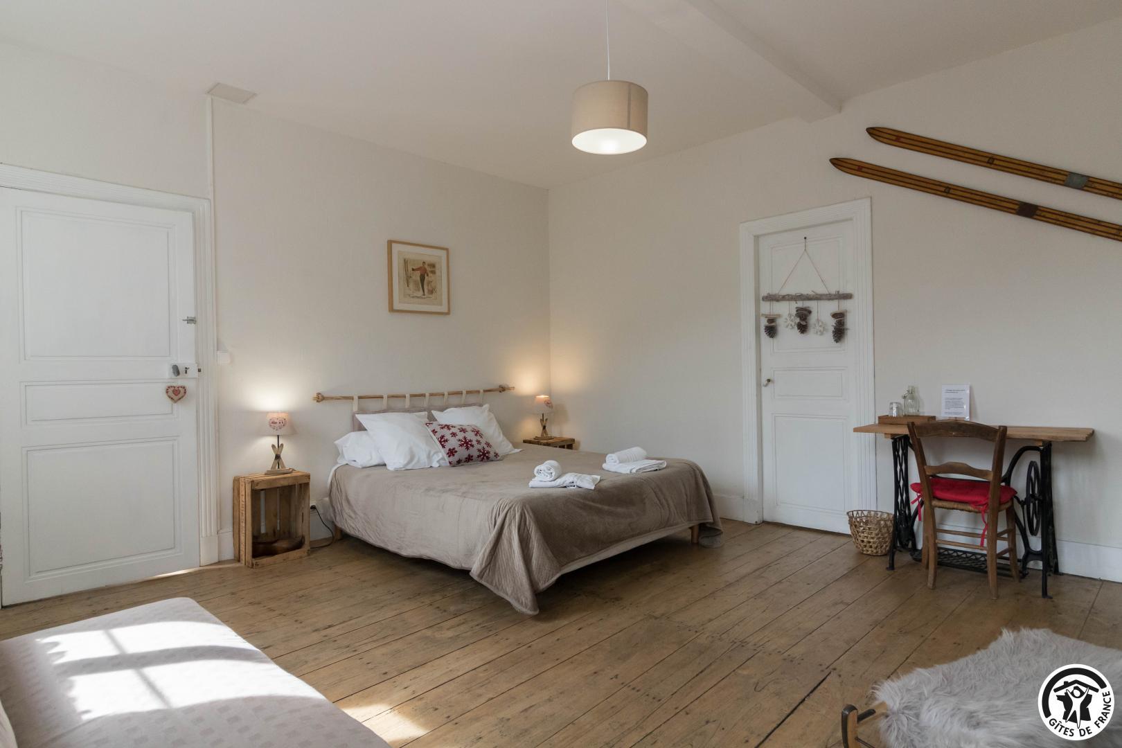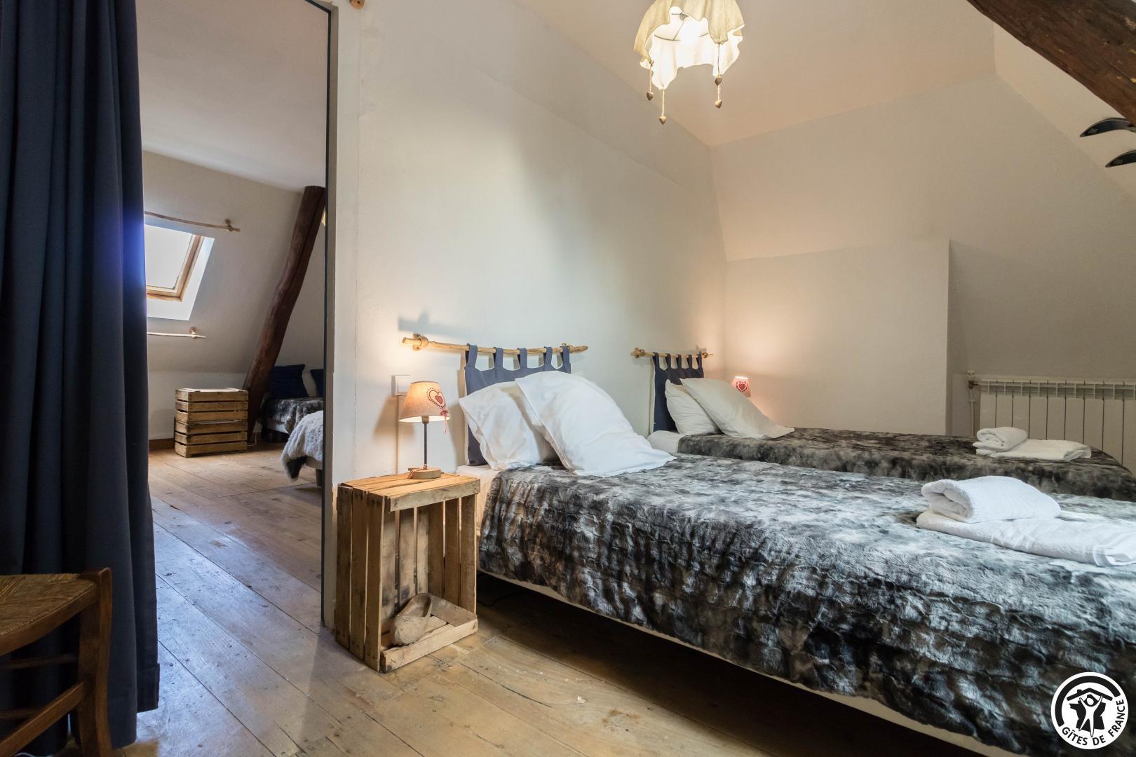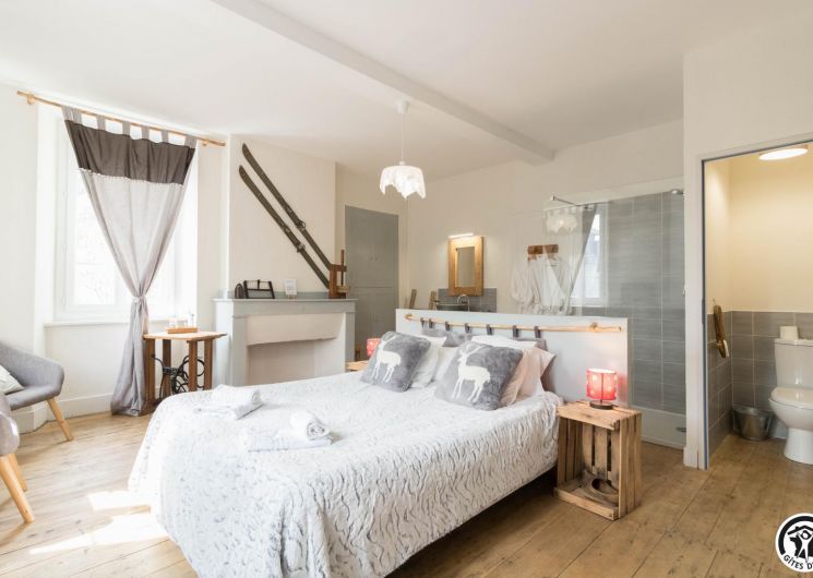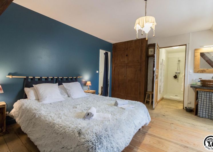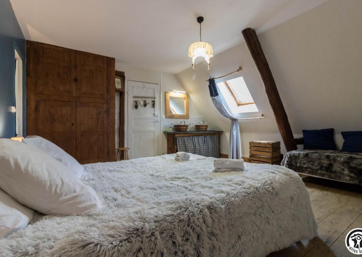 – au deuxième étage sous combles, une chambre familiale : « L’Aneto » avec, en enfilade, la chambre enfants (2 lits simples en 90cm), la chambre parents (1 lit double en 160cm, et une double vasque) et la douche et le WC séparés.