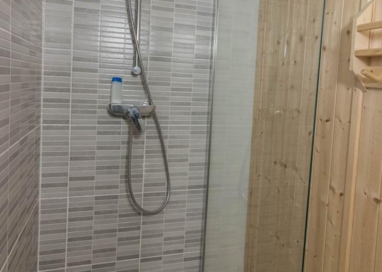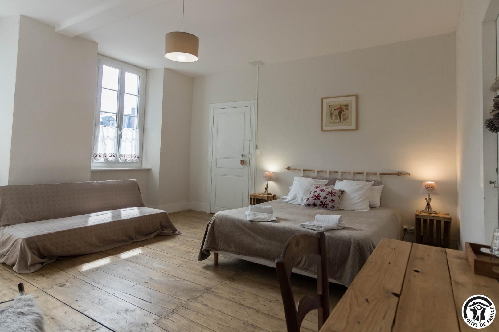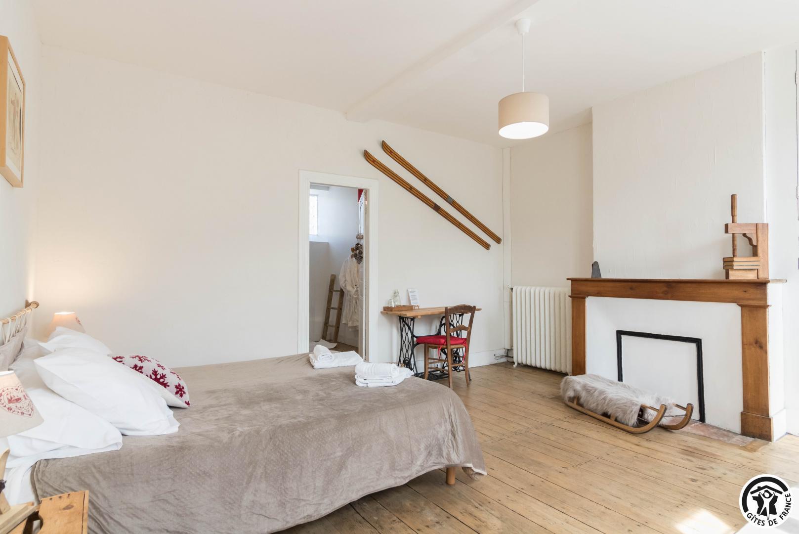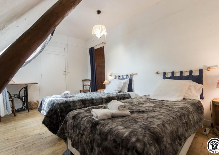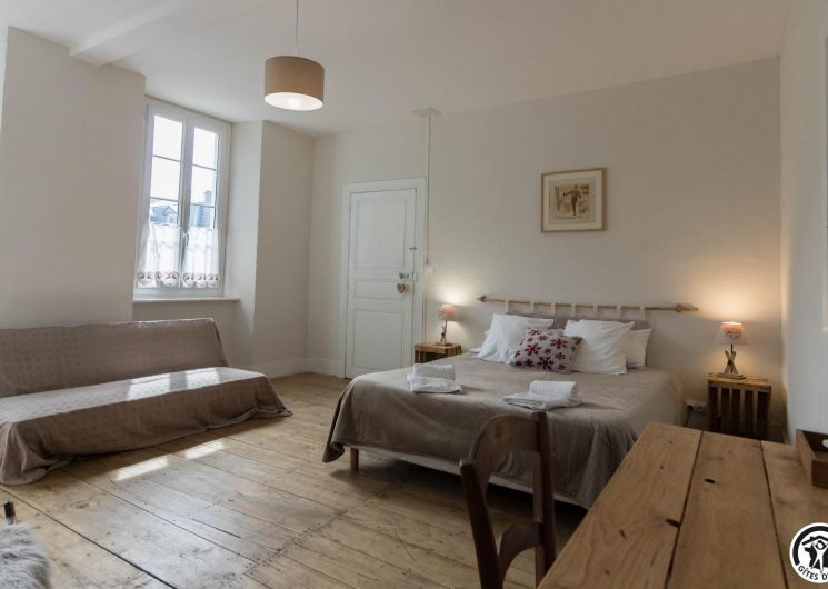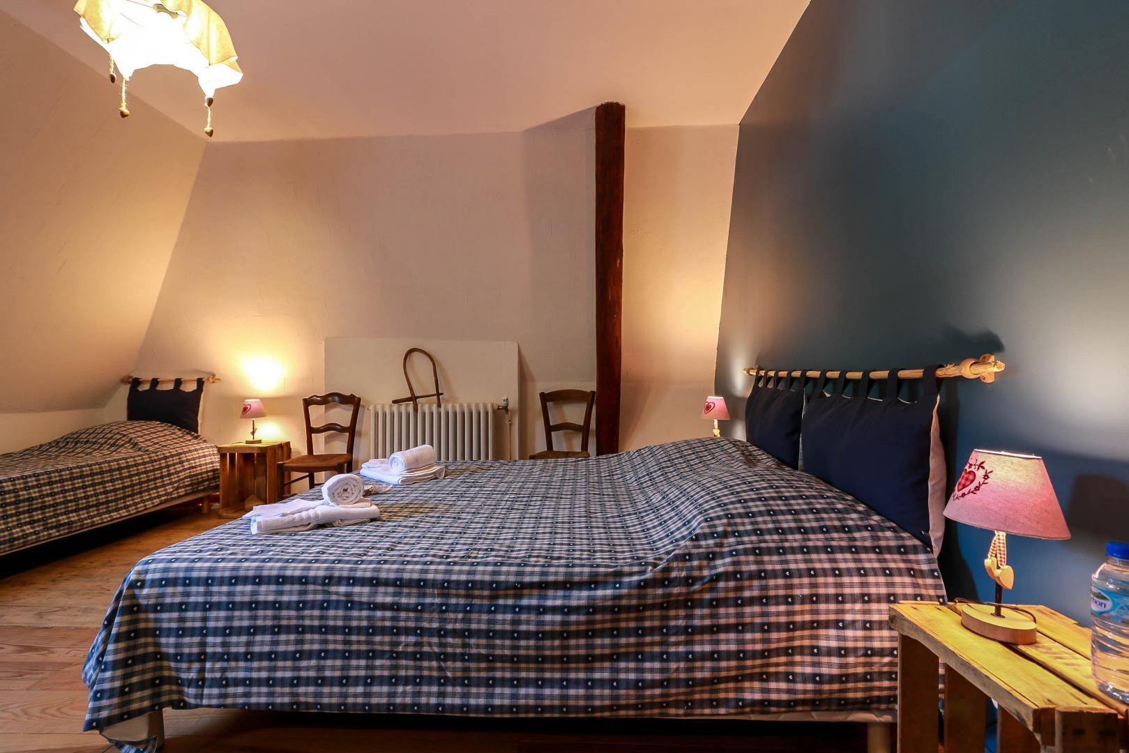 – au deuxième étage sous combles, une chambre familiale : « L’Aneto » avec, en enfilade, la chambre enfants (2 lits simples en 90cm), la chambre parents (1 lit double en 160cm, et une double vasque) et la douche et le WC séparés.