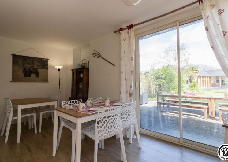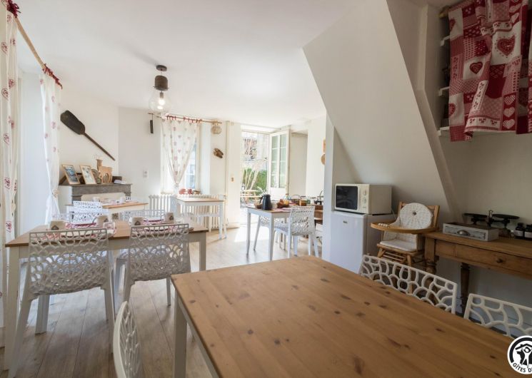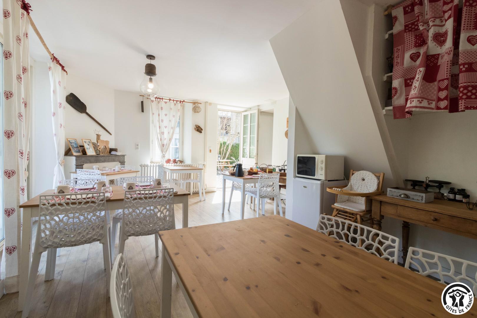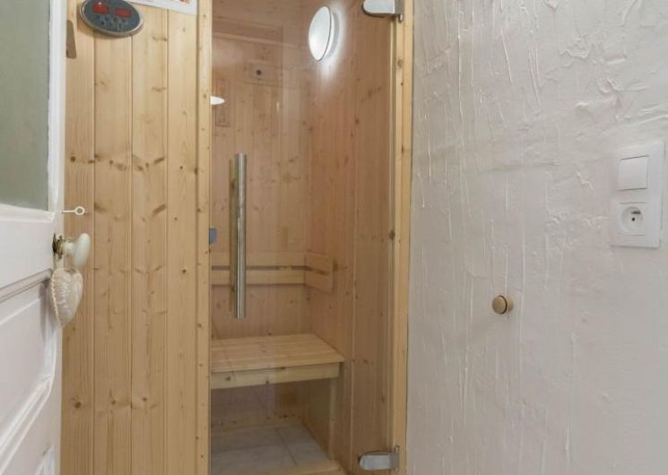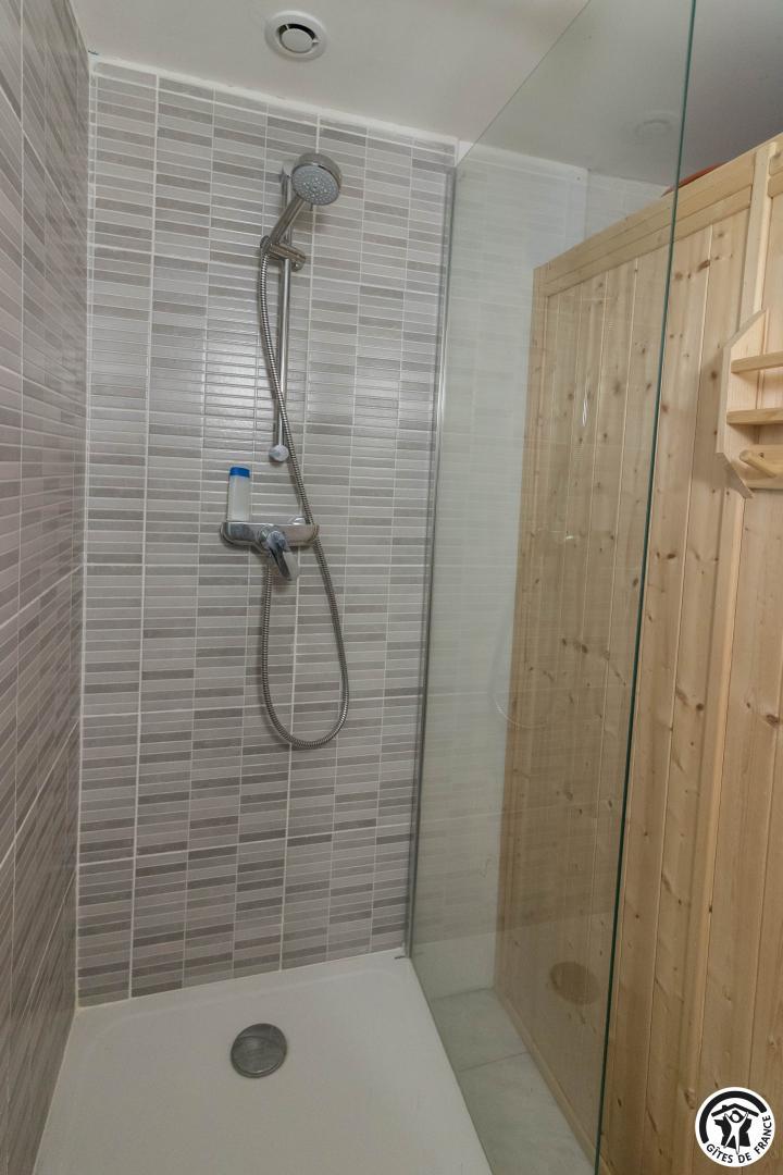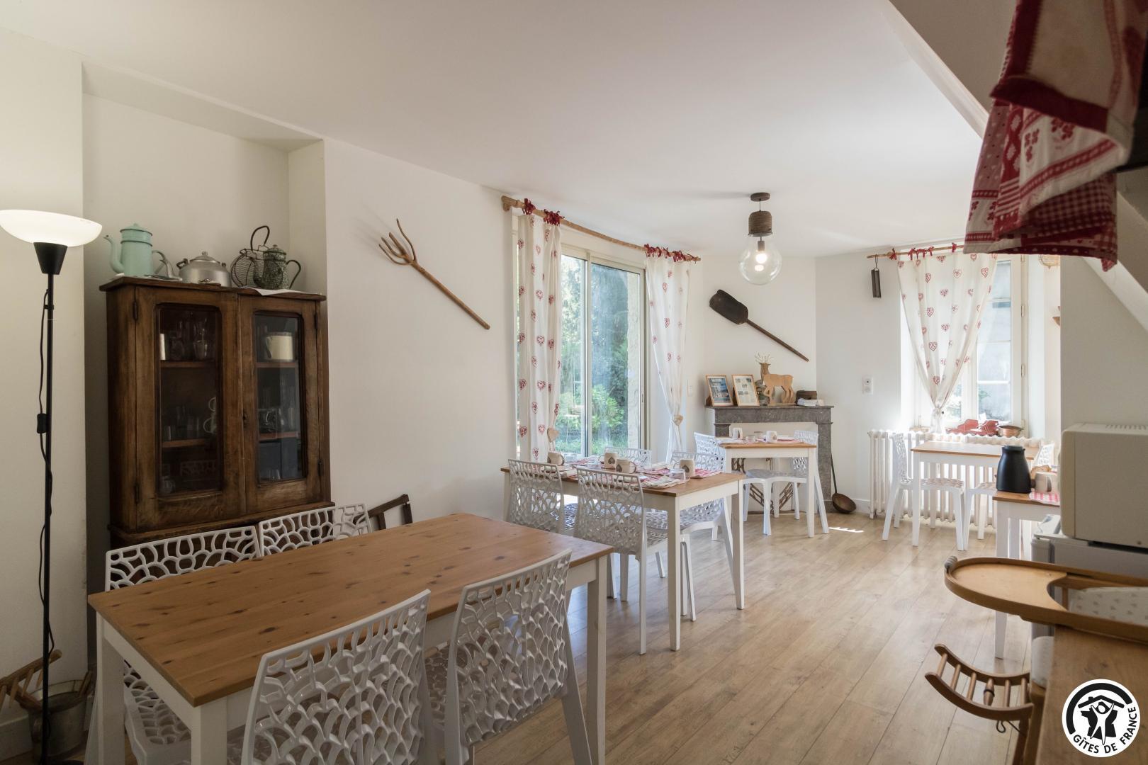 – au rez-de-chaussée : le hall d’entrée dessert d’une part la salle des petits-déjeuners qui ouvre sur la terrasse plein Sud, d’autre part un salon avec cheminée et télévision et un grand séjour où sont servis les repas en table d’hôtes. Un sauna intérieur est proposé pour le bien-être des hôtes.