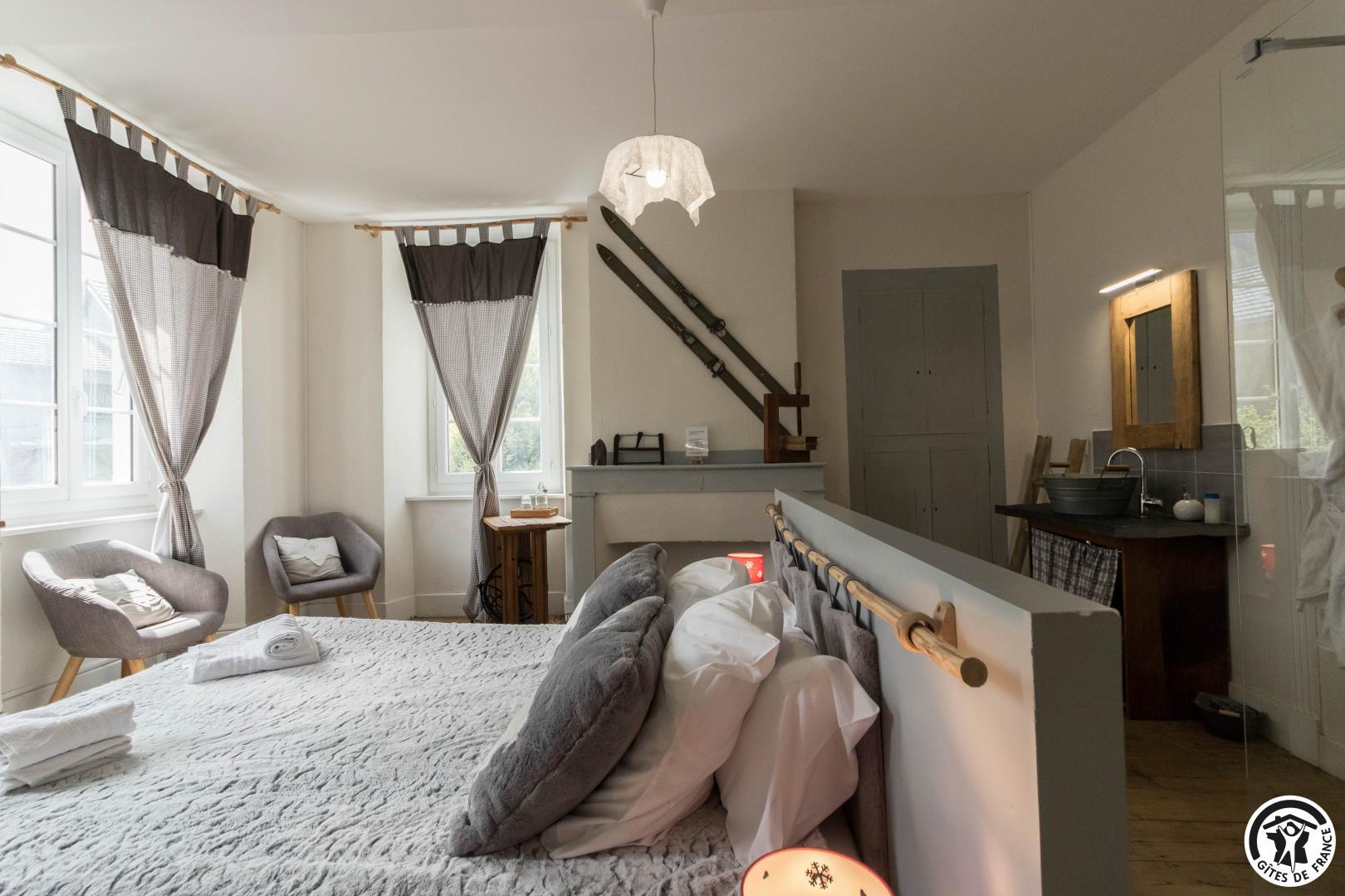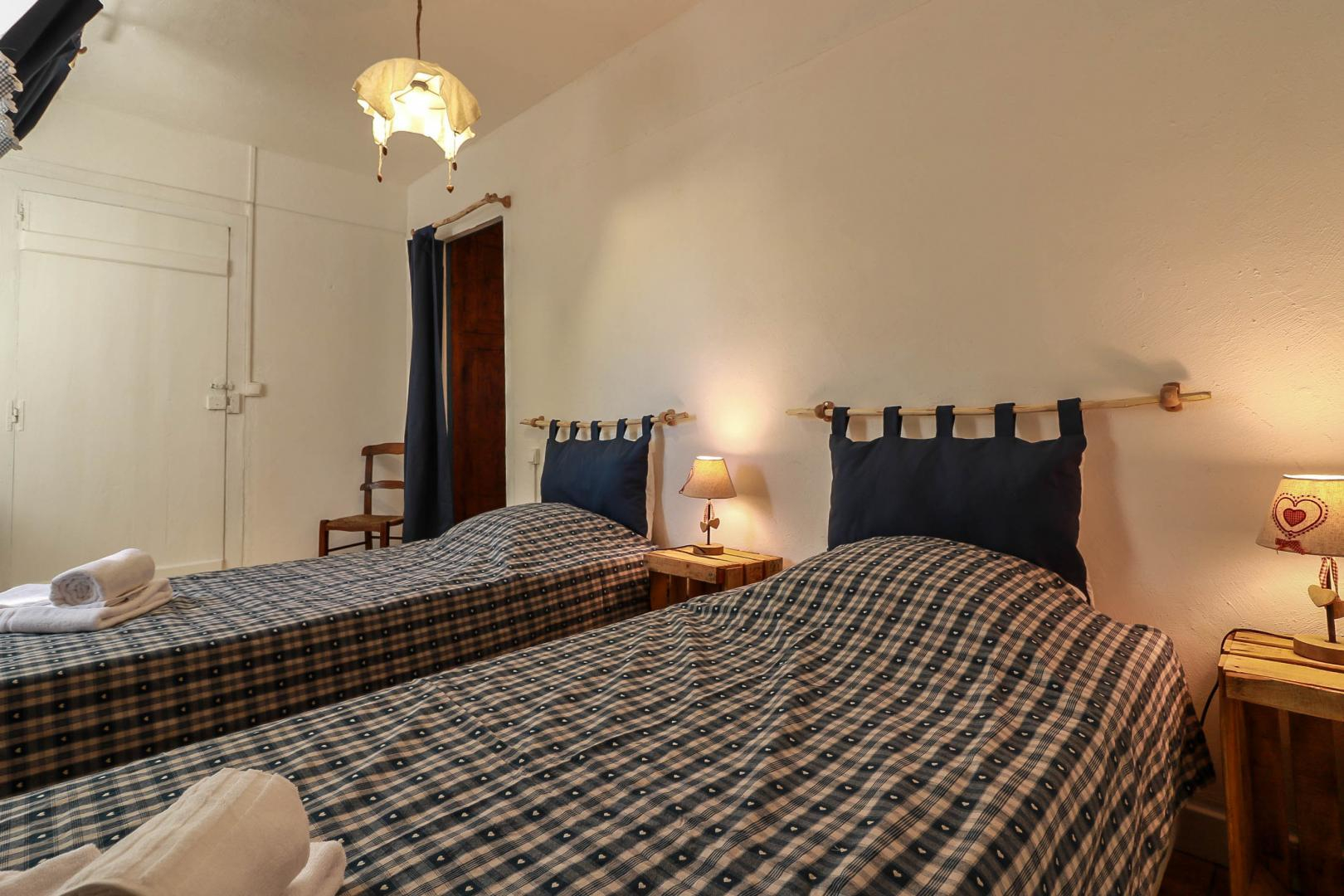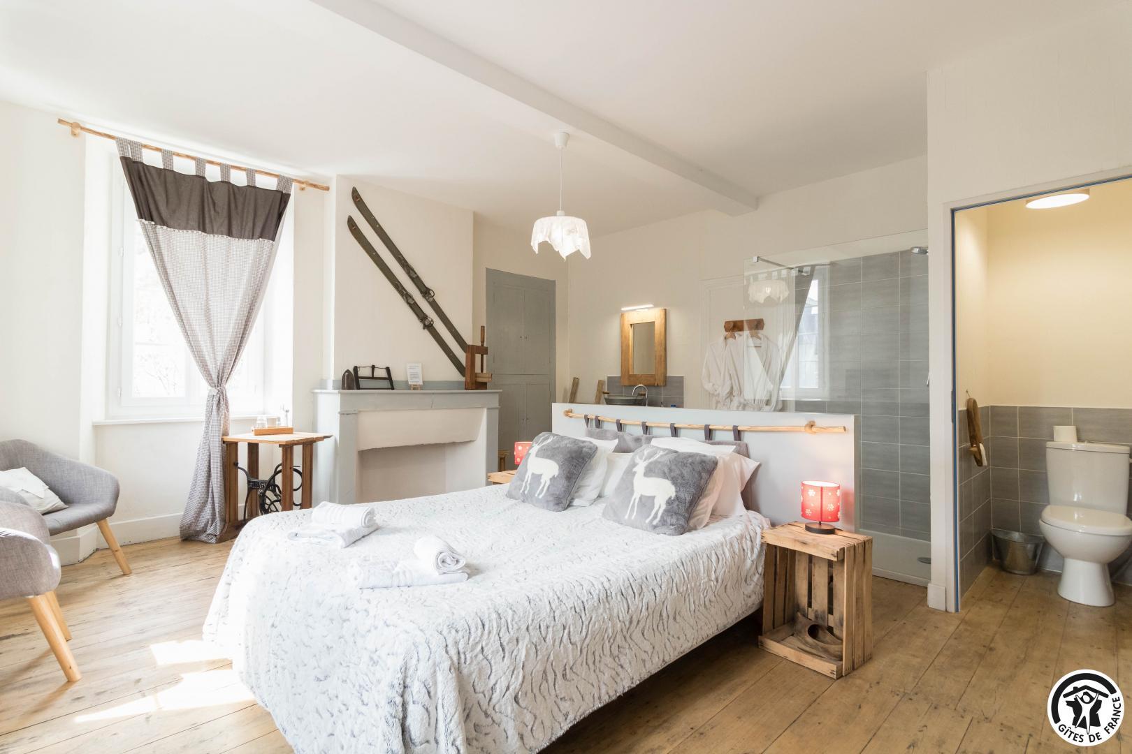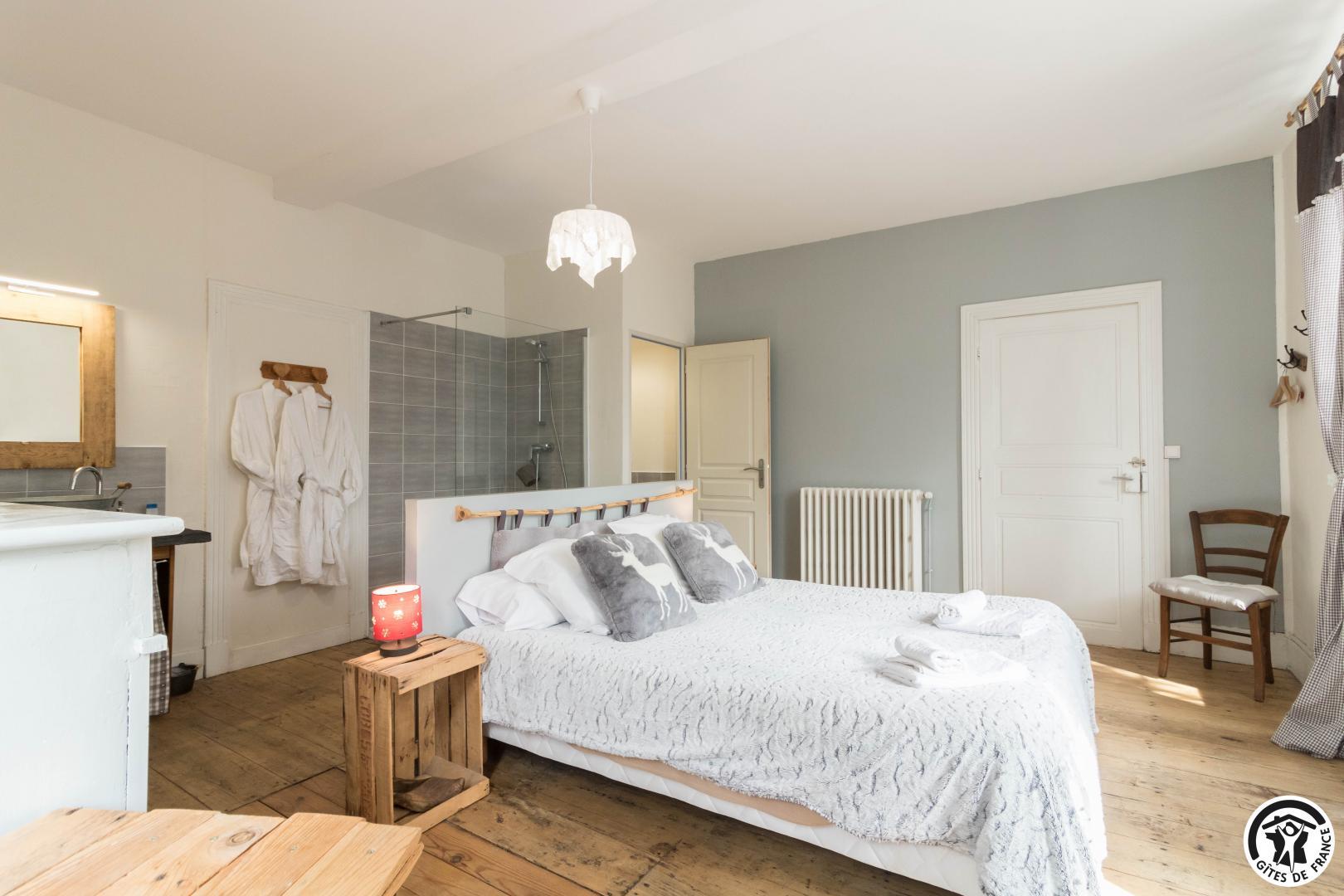 – au premier étage, deux chambres doubles : « Le Burat » (1 lit double en 160cm avec salle d’eau ouverte sur la chambre et WC séparés) et « L’Escalette » (1 lit double en 160cm, salle d’eau et WC séparés).