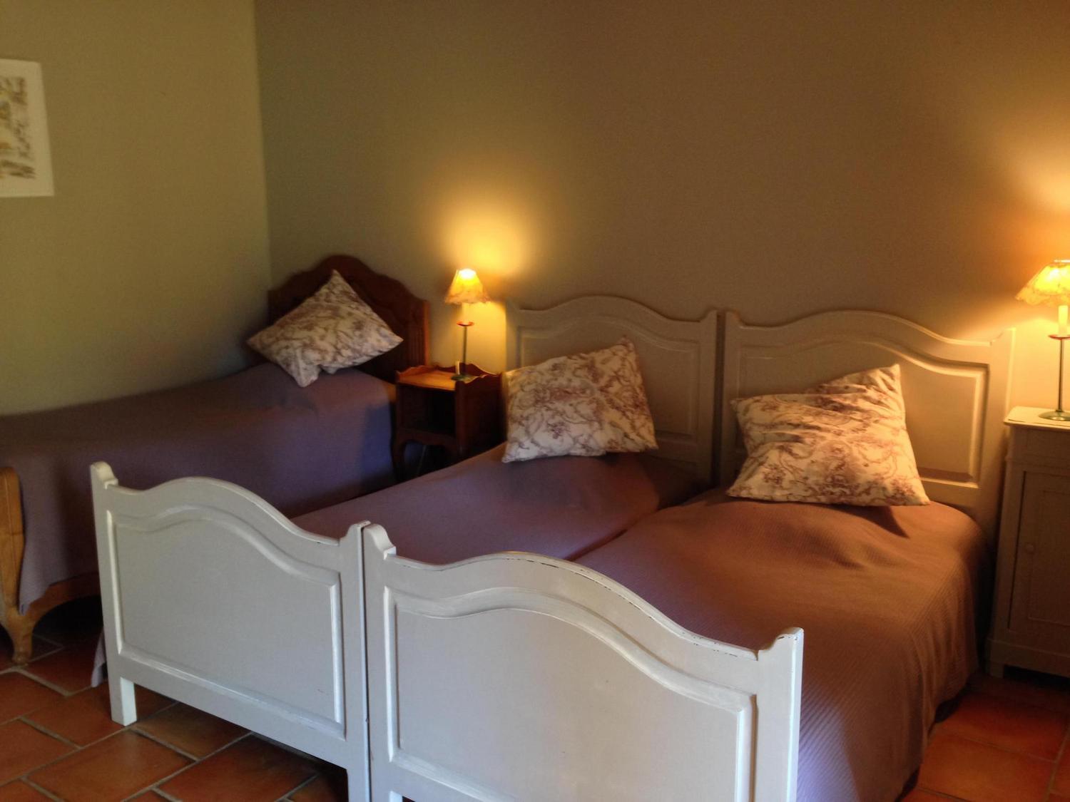 Sur la Route de Saint Jacques, Les olviers est un appartement de 75m2. Le logement est composé d’une chambre avec un lit double et salle d’eau, une chambre avec 3 lits simples et salle d’eau, une cuisine équipée avec coin repas, un salon avec une table billards et un canapé convertible double. Une terrasse privative est accessible depuis la cuisine.