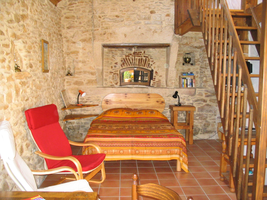 Dans la pièce principale, un lit double (140 cm) et un espace dressing. Table de ferme avec deux chaises, et deux fauteuils avec une petite table. La salle d’eau comprend une cabine de douche, toilette, bidet, lavabo, sèche serviettes électrique. Coin cuisine avec ustensiles de cuisine et équipement de base pour la préparation de repas simples. Bouilloire, grille-pain, cafetière, four micro-ondes, casseroles et plaque de cuisson au gaz. (Pas de four, lave-vaisselle ou lave-linge.). Un barbecue est à votre disposition dans la cour. L’auvent devant le gîte offre un endroit sympa pour les repas à deux entre le chèvrefeuille et des pots de fleurs et d’herbes culinaires. Accueil de pèlerins.