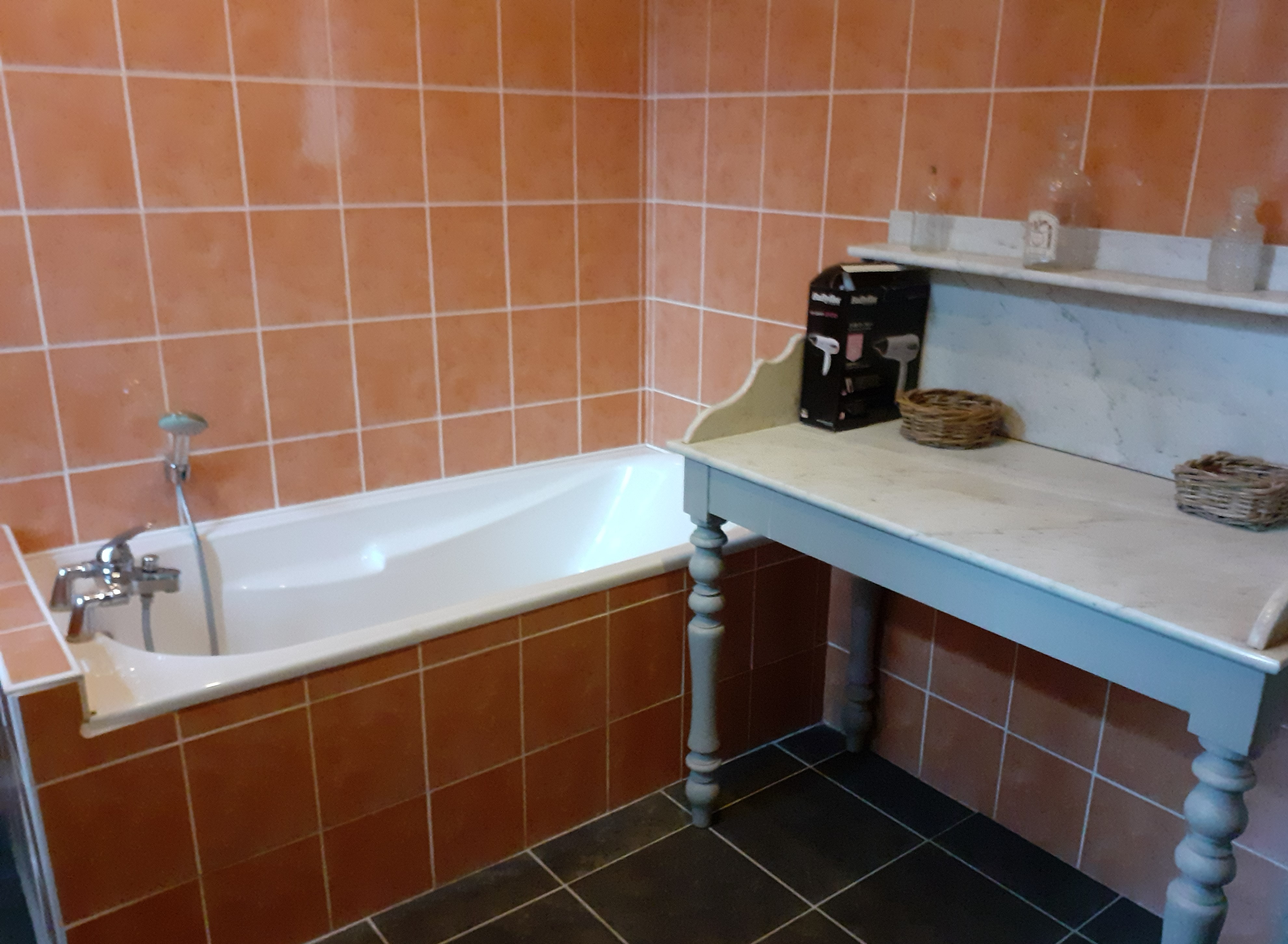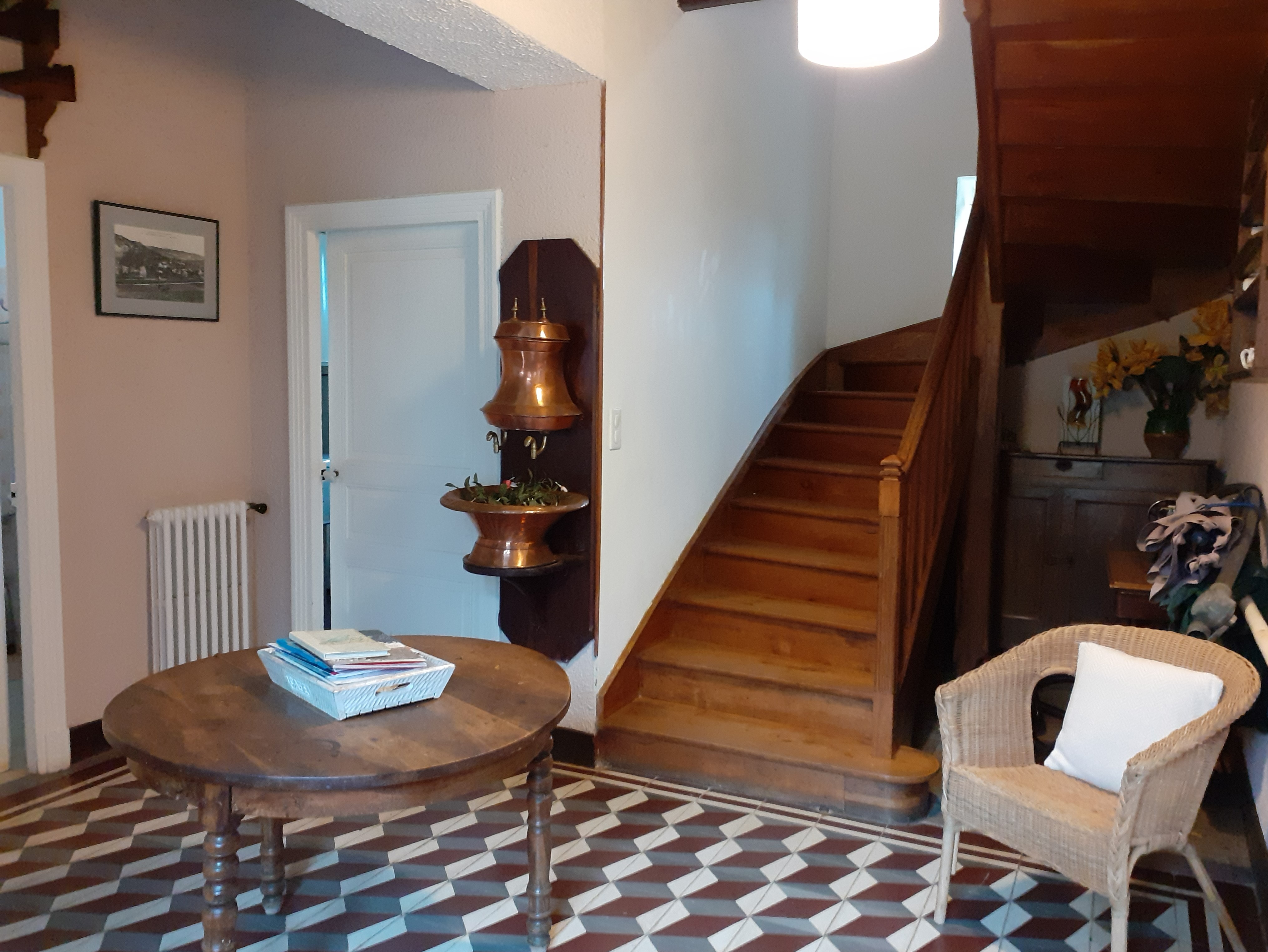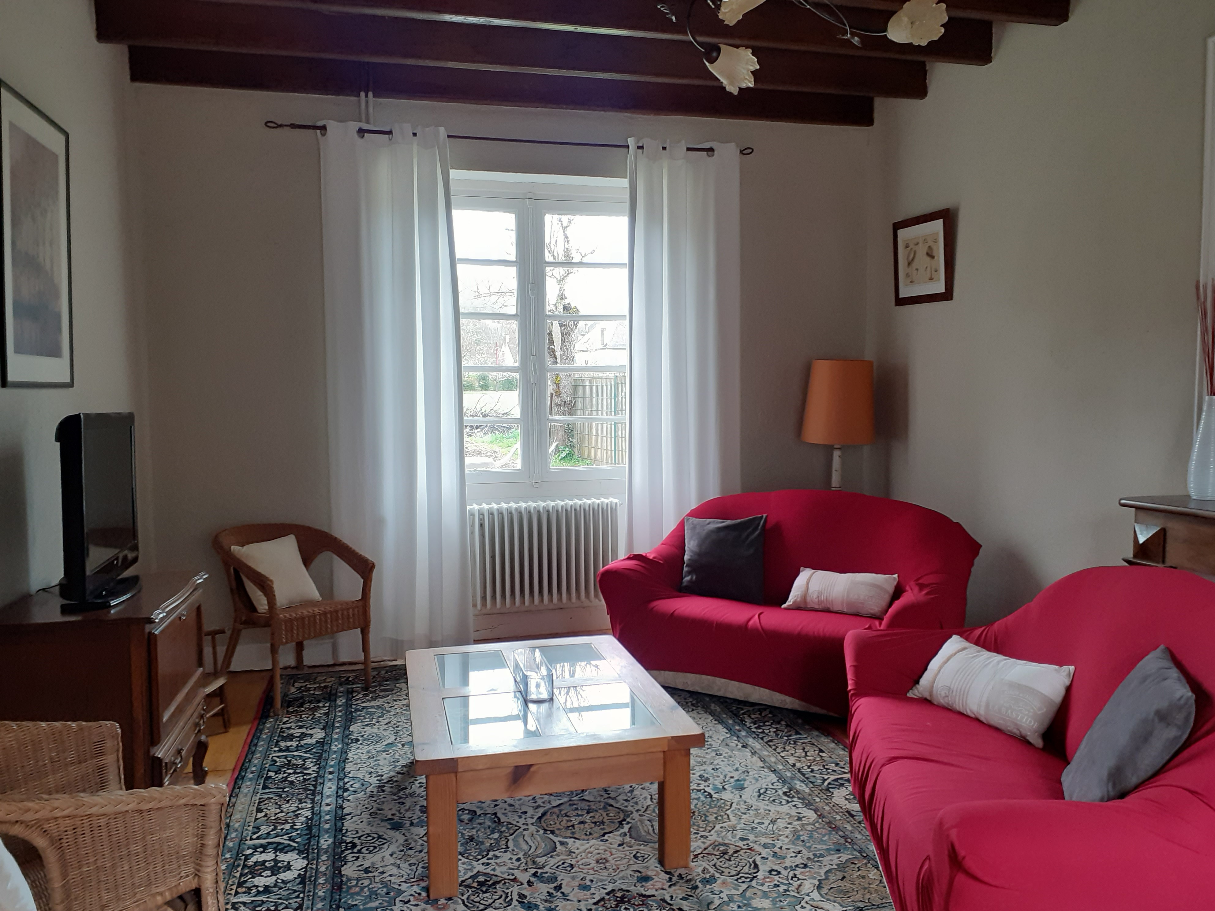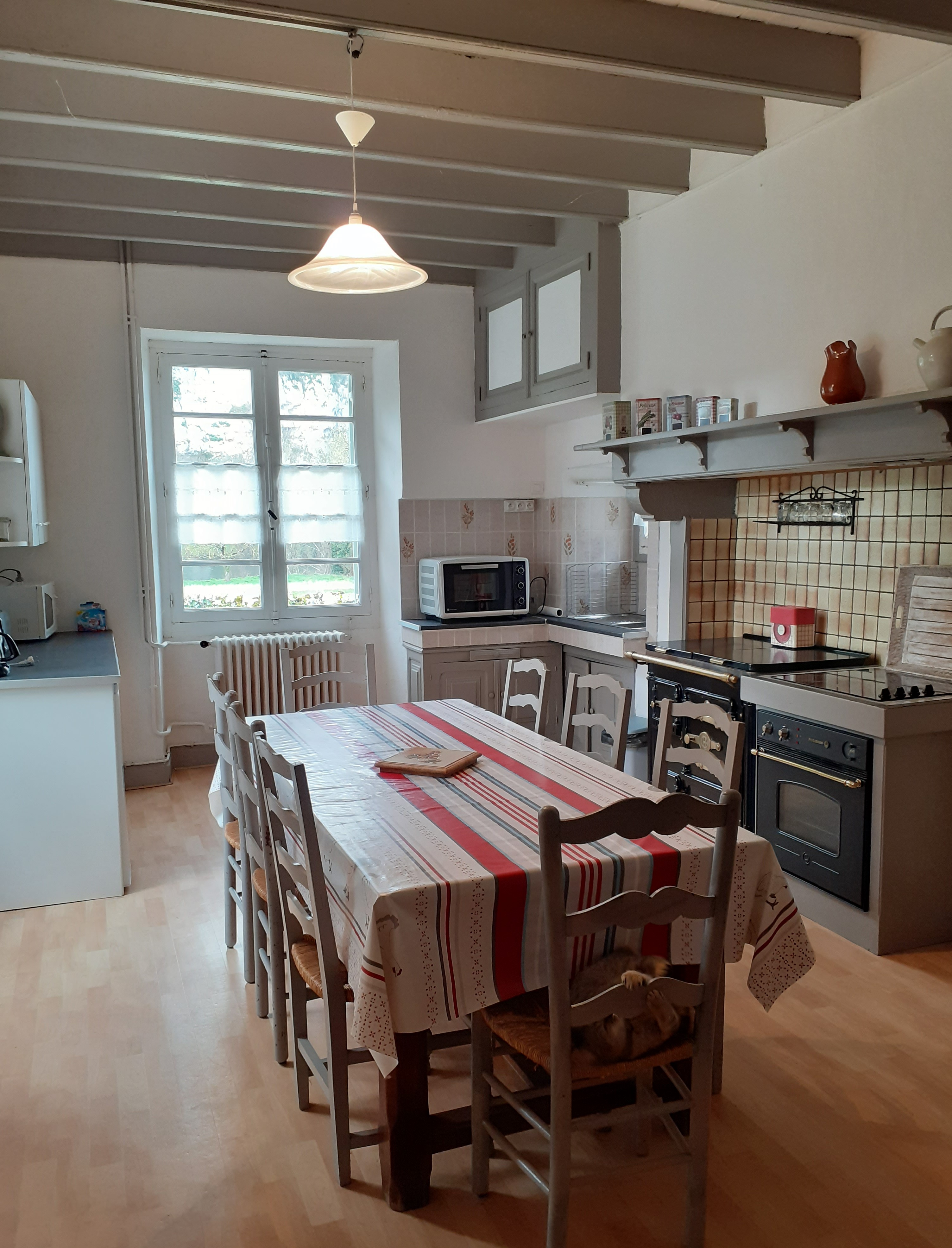 Gîte de 150m2, au rdc, grd hall d’entrée, salon (cheminée), écran plat, cuisine équipée, salle d’eau avec douche à l’italienne, wc indpdt et buanderie avec lave linge, réfrigérateur…. A l’étage 4 ch, 3 ch avec chacune 1 lit 2 pers en 1,40m et 1 ch avec 2 lits jumeaux de 0,90m. Une salle de bains avec douche et wc indpdt. Chauff central au fuel, terrasse et terrain non clos.