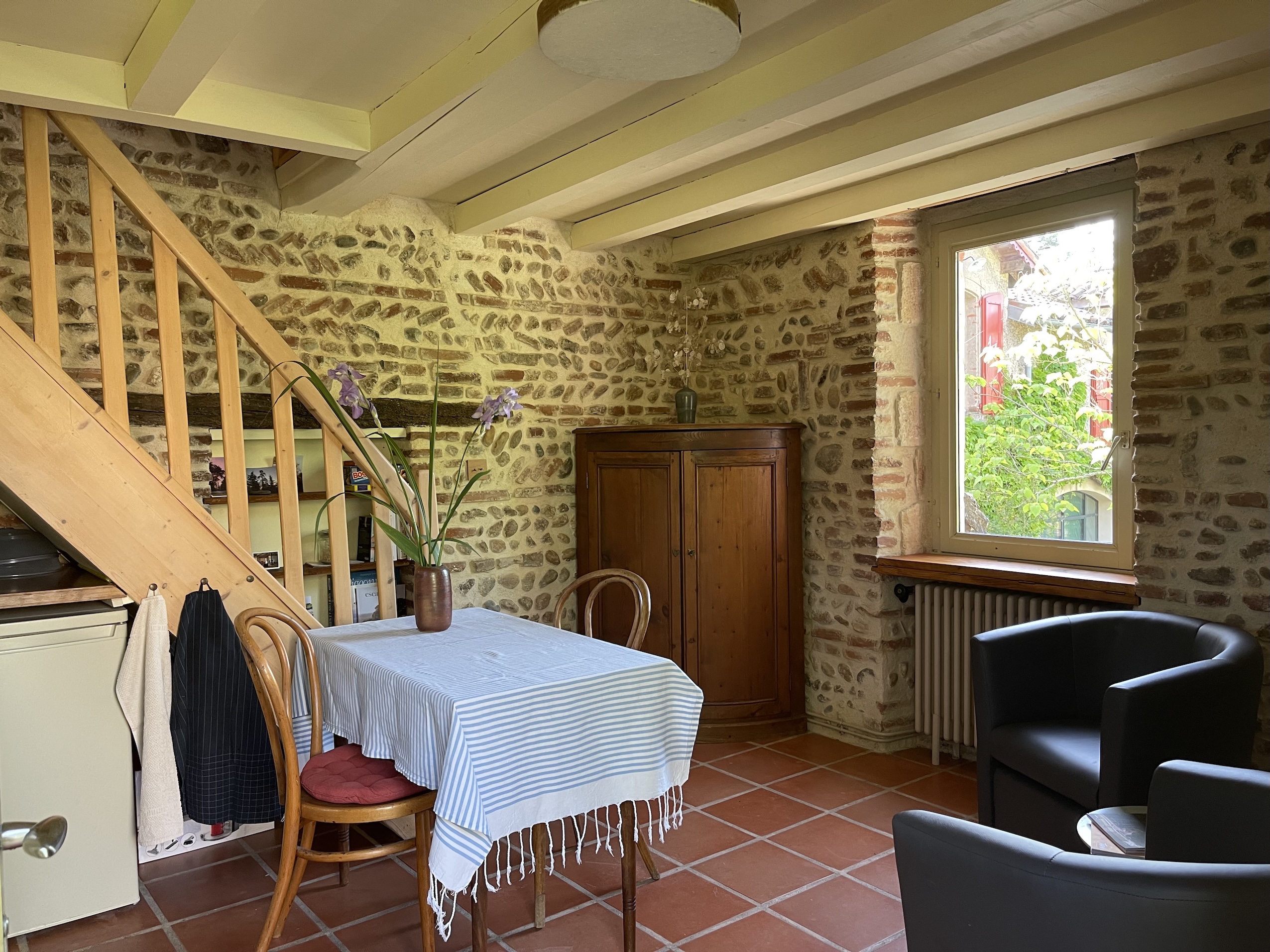 L’accès se fait par un escalier extérieur, indépendant et réservé, jusqu’au 1er étage.