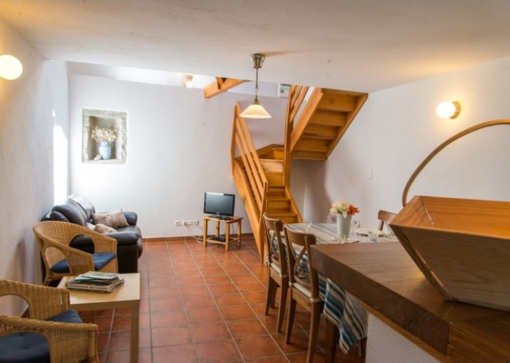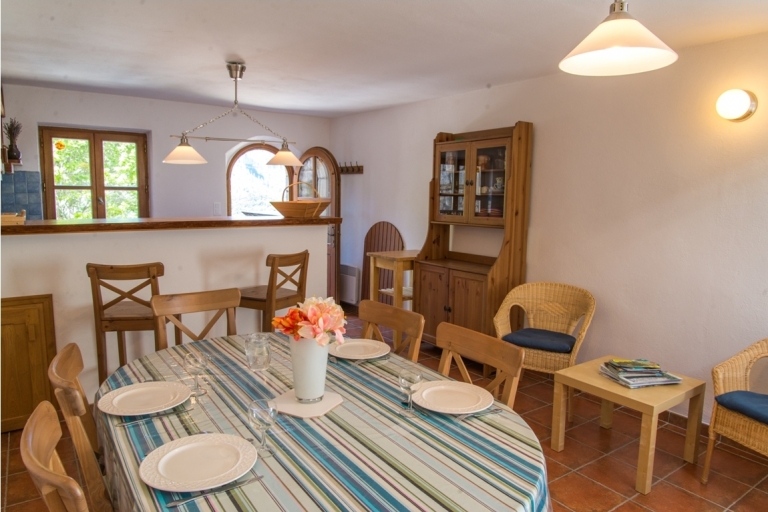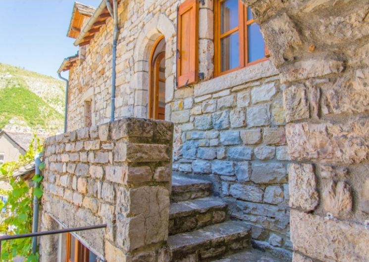 Maison de village, confortable en toute saison, elle bénéficie d’une vue superbe sur les Gorges du Tarn. C’est le point de départ idéal pour tout type de randonnées. Au rez-de-chaussée : cave voûtée avec lave-linge et espace de rangements Au premier étage : Cuisine (plaques vitro-céramique, four, micro-ondes, lave vaisselle, hotte aspirante, bar), espace salle à manger – salon (télévision) Au deuxième étage : grande chambre en mezzanine (1 lit 2 places et 1 lit 1 place) avec armoire-penderie, salle de bains et WC. Un seul animal accepté.