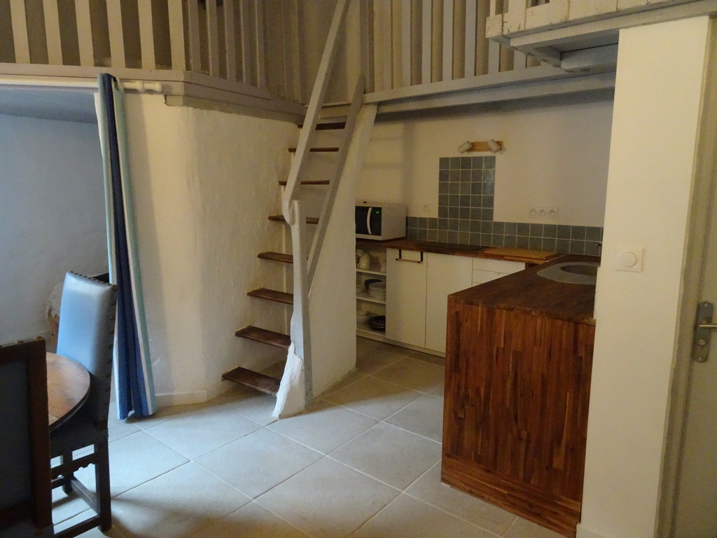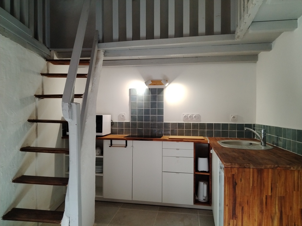 T1 de plain-pied sans vis à vis composé de : 1 salon-salle à manger avec télévision écran plat – Kitchenette bien équipée – 1 chambre avec lit en 140 X200 – 1 SdB/WC avec cabinet de douche. Prêt de vélo gratuit. Réservation de 2 jours minimum