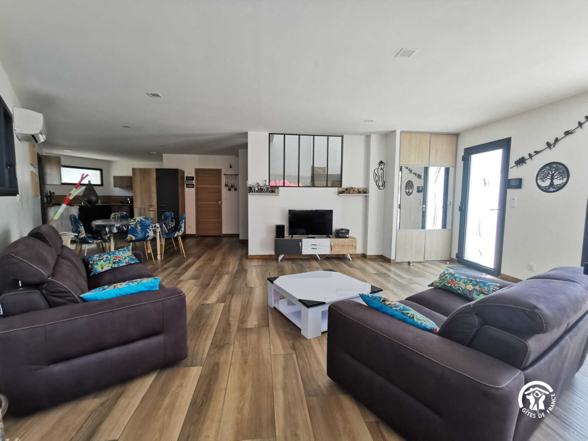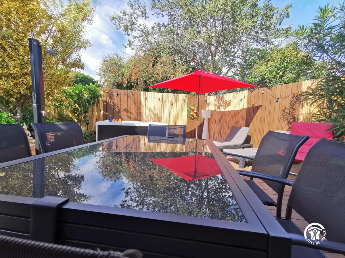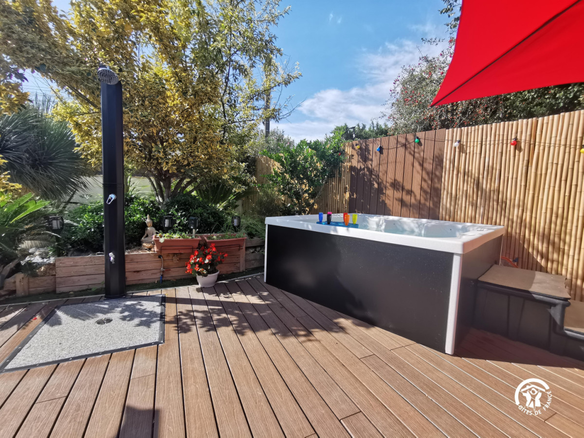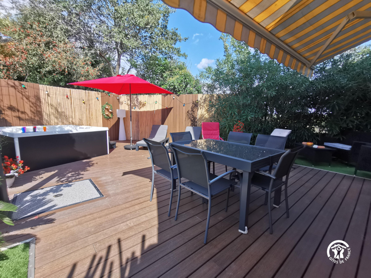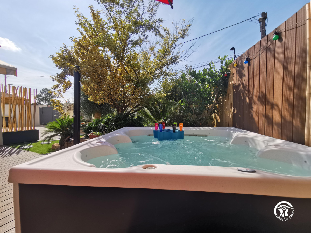A votre arrivée, vous serez séduit par le jardin laissant place à la » zenitude » grâce au jacuzzi et barbecue privatif agrémenté d’une belle terrasse ombragée. Bains de soleil, salon de jardin et douche extérieure : tout est réuni pour vous détendre ! A l’intérieur, au rez-de-chaussée, cette maison entièrement neuve est composée d’un grand salon/séjour à la décoration minutieuse comprenant la TV, deux canapés confortables, un petit espace bureau et une belle cuisine équipée et fonctionnelle. Une buanderie est également à votre disposition à côté de la cuisine et une première chambre spacieuse de 13 m² (lit en 160×200) avec salle de bain moderne vous offre tout le confort recherché dans cette pièce intimiste. A l’étage, l’espace nuit se prolonge avec 2 autres chambres (lits en 160×200 également) ainsi qu’une seconde salle de bain joliment décorée avec des matériaux de qualité. N’hésitez plus et venez profitez d’un magnifique séjour entre amis ou en famille où tout le confort nécessaire est à votre portée. Bienvenue au gîte d’Eden ! ATTRAITS TOURISTIQUES : Montpellier à 20 kms environ (ville universitaire et culturelle), Le Golf de Baillargues, les plages (Carnon, Palavas, la Grande Motte), La Camargue (Les Saintes-Maries-de-la-Mer, Aigues-Mortes), les Salins du Midi.