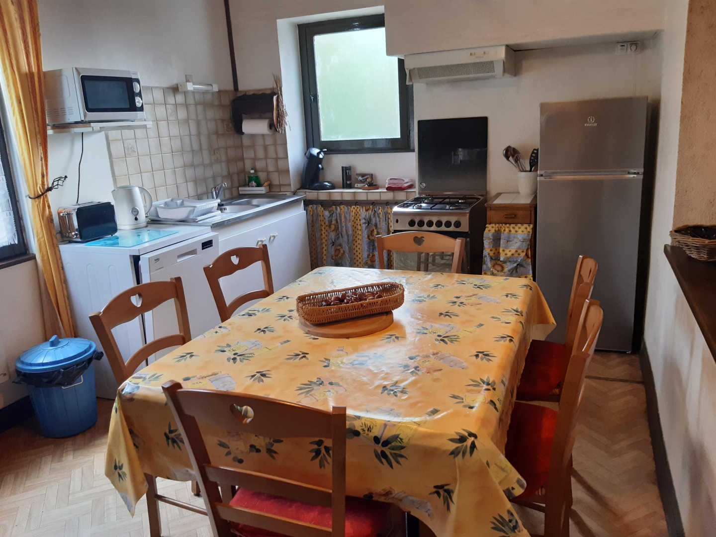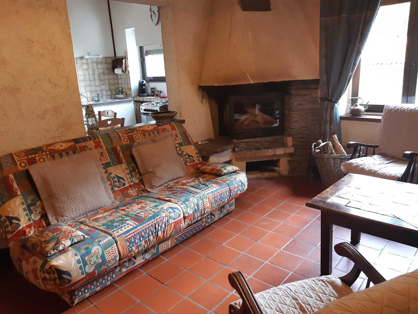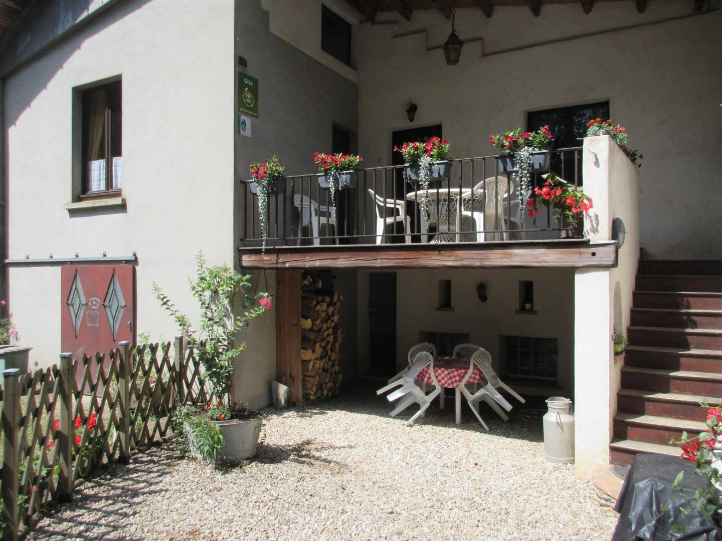 Gîte à proximité de la maison des propriétaires, accès à l’étage par un escalier extérieur. Au rez-de-jardin : cour close (salon de jardin, barbecue), buanderie (lave linge, sèche linge, rangement matériel de loisir). A l’étage : terrasse couverte (salon de jardin), cuisine équipée (batterie de cuisine complète, micro-ondes, cuisinière gaz, réfrigérateur-congélateur, lave-vaisselle), séjour (canapé lit deux personnes, tv, lecteur DVD, jeux, lecture, malle pédagogique du Parc Naturel, console de jeux, cheminée avec insert), chambre (un lit double, lit bébé).