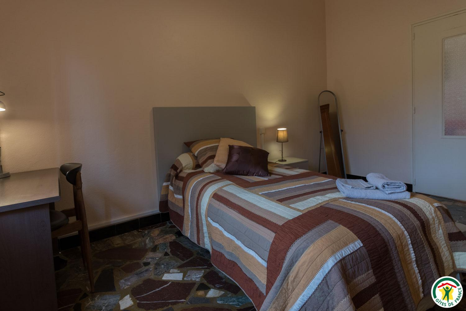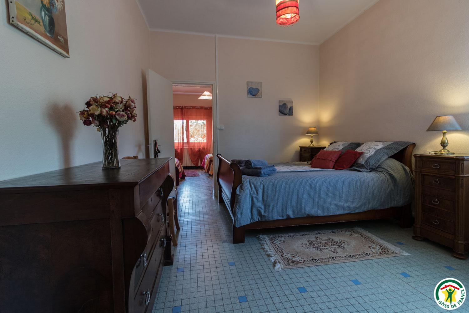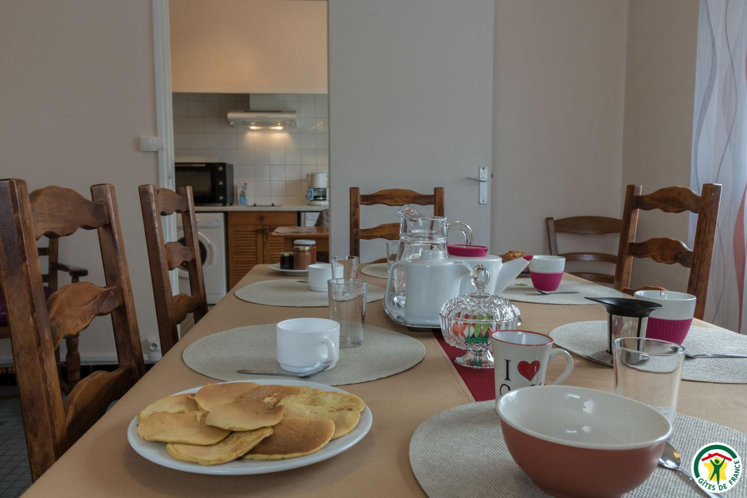 Gîte de plain-pied (une marche à l’entrée) : cuisine ouverte sur le coin-salon, salle à manger, 1 chambre (1 lit 1 personne en 90cm) avec accès direct sur le jardin, 2 chambres en enfilade (1 lit 2 personnes en 140cm) (2 lits 1 personne en 90cm), salle d’eau/WC. Chauffage central gaz. Maison non fumeurs. Aire de stationnement commune avec les propriétaires.