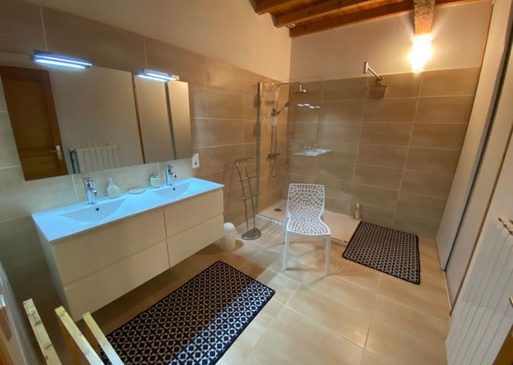 Entièrement au rez-de-chaussée, cette jolie lomagnole comprend une grande cuisine (éléments intégrés, lave-vaisselle, réfrigérateur, congélateur, micro-ondes), un salon avec canapés TV, 1 chambre (1 lit 140 1 lit 0,90), 1 chambre (1 lit 160 1 lit 0,90), une salle d’eau (douche à l’italienne, 2 vasques), 1 wc indépendant, 1 buanderie (avec lave-linge, rangement). Bel espace autour du gîte avec salon de jardin, transat, barbecue). Linge de lit et linge de toilette et linge de maison compris dans le prix.