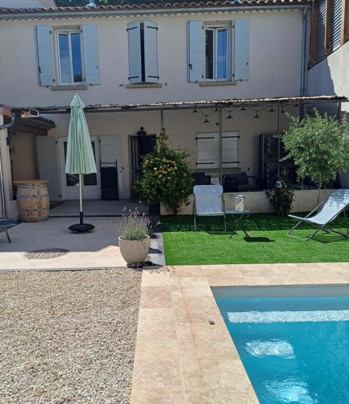La Cité de Carcassonne est à 30 minutes, Castelnaudary (capitale mondiale du Cassoulet), Limoux réputé pour sa Blanquette est à 20 minutes, la Haute Vallée de l’Aude, avec les activités de sport d’eau vives, les Châteaux du Pays Cathare, etc…, sans oublier les lacs (Chalabre et Puivert) ou vous pourrez vous rafraichir en saison estivale. Depuis votre gite, vous pourrez directement profiter de la voie verte qui vous donnera accès à la campagne vallonée et sauvage de la Malepère. Une location de vélos est à votre disposition juste à côté de la maison. Le village est très bien achalandé : commerces, pharmacie et restaurant. Gîte situé au coeur du village de Belvèze du Razes, maison de famille entièrement rénovée dans laquelle vous retrouverez les traces de son histoire. Jardin privatif et clos vous permettant de stationner sur place. Chambres spacieuses, lumineuses et beaucoup d’espace pour permettre à votre tribu de trouver son bonheur. Lieu idéal pour combiner vacances et télé-travail. Vous disposez pour vos soirées à la belle saison, d’une cuisine d’été avec plancha donnant sur la terrasse et le jardin avec salon de jardin. Une belle piscine privative (à l’eau salée, dimensions: 4,30×2,30m, fond plat: 1m50) est à votre disposition pour vous rafraîchir ou vous prélasser sous le soleil du Midi. Au rez de chaussée, le gîte comprend, un séjour-cuisine avec coin cheminée donnant sur la terrasse et le jardin. Un WC indépendant. Une buanderie avec lave-linge. Un salon détente. A l’étage: 3 chambres, dont une avec salle d’eau privative (1 lit en 140, 1 lit en 160 et 2 lits en 80). Salle d’eau avec WC indépendant, espace détente avec télévision. Gîte climatisé.