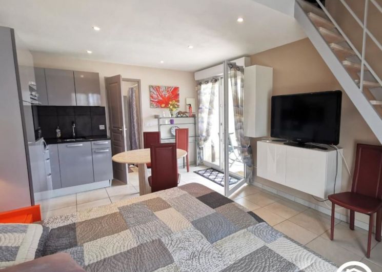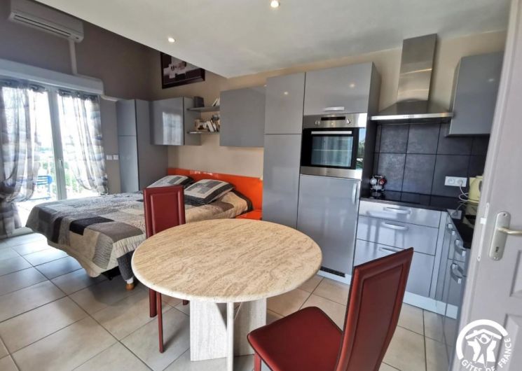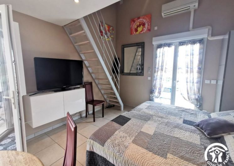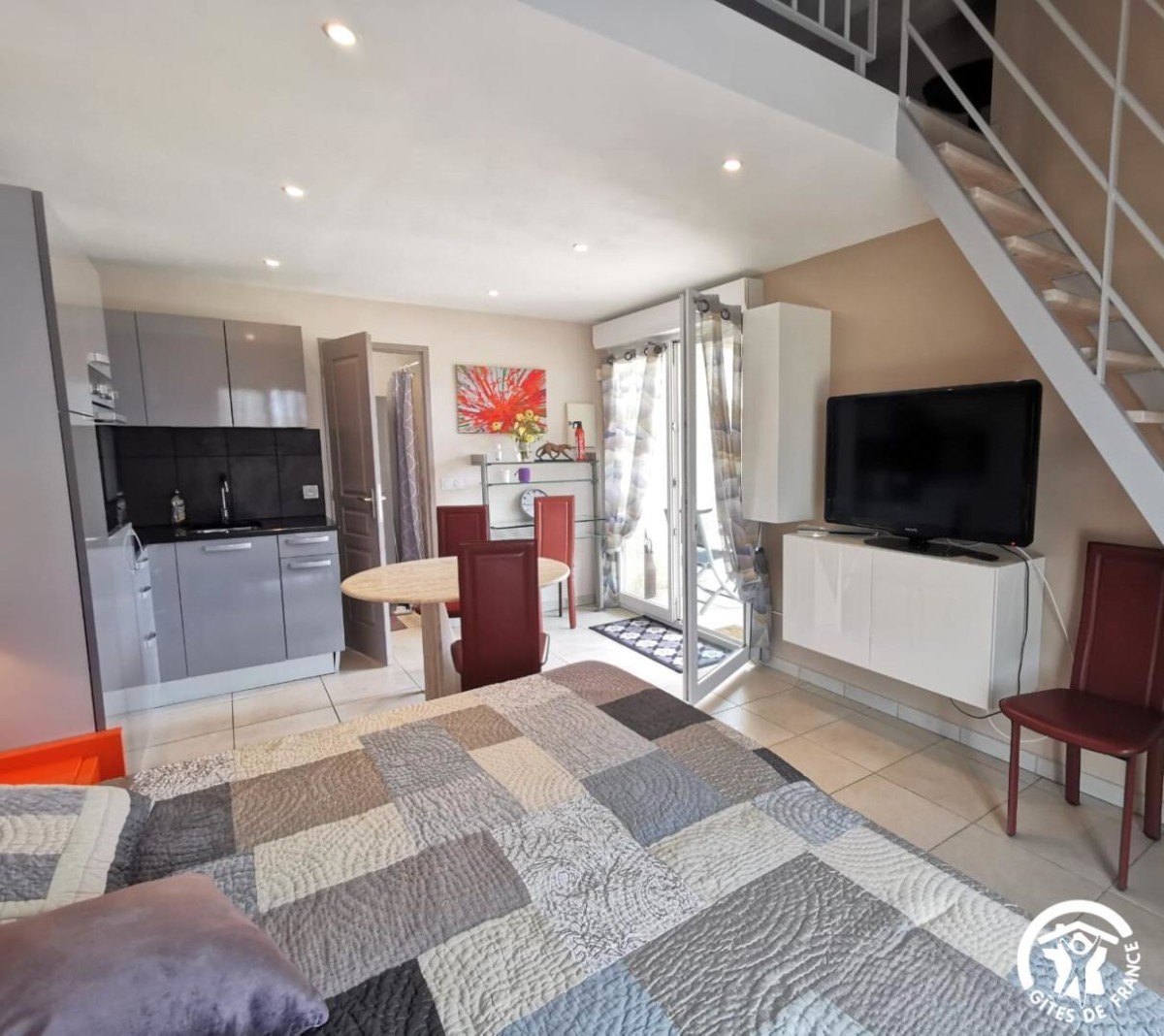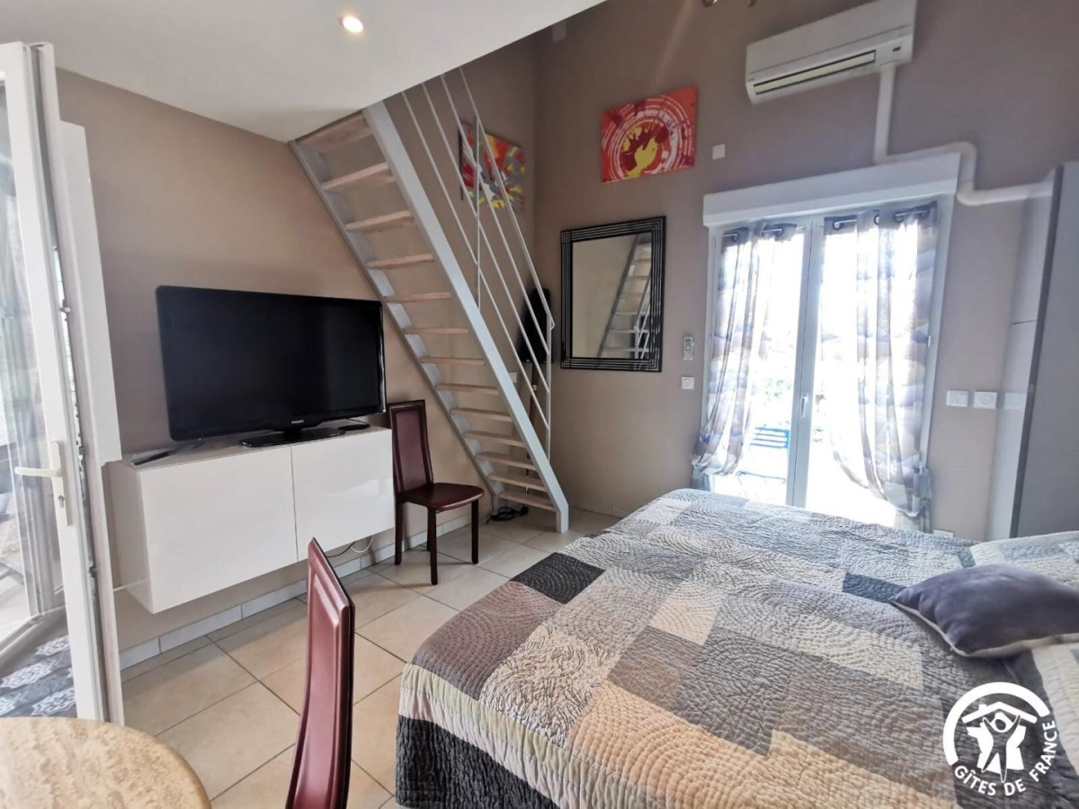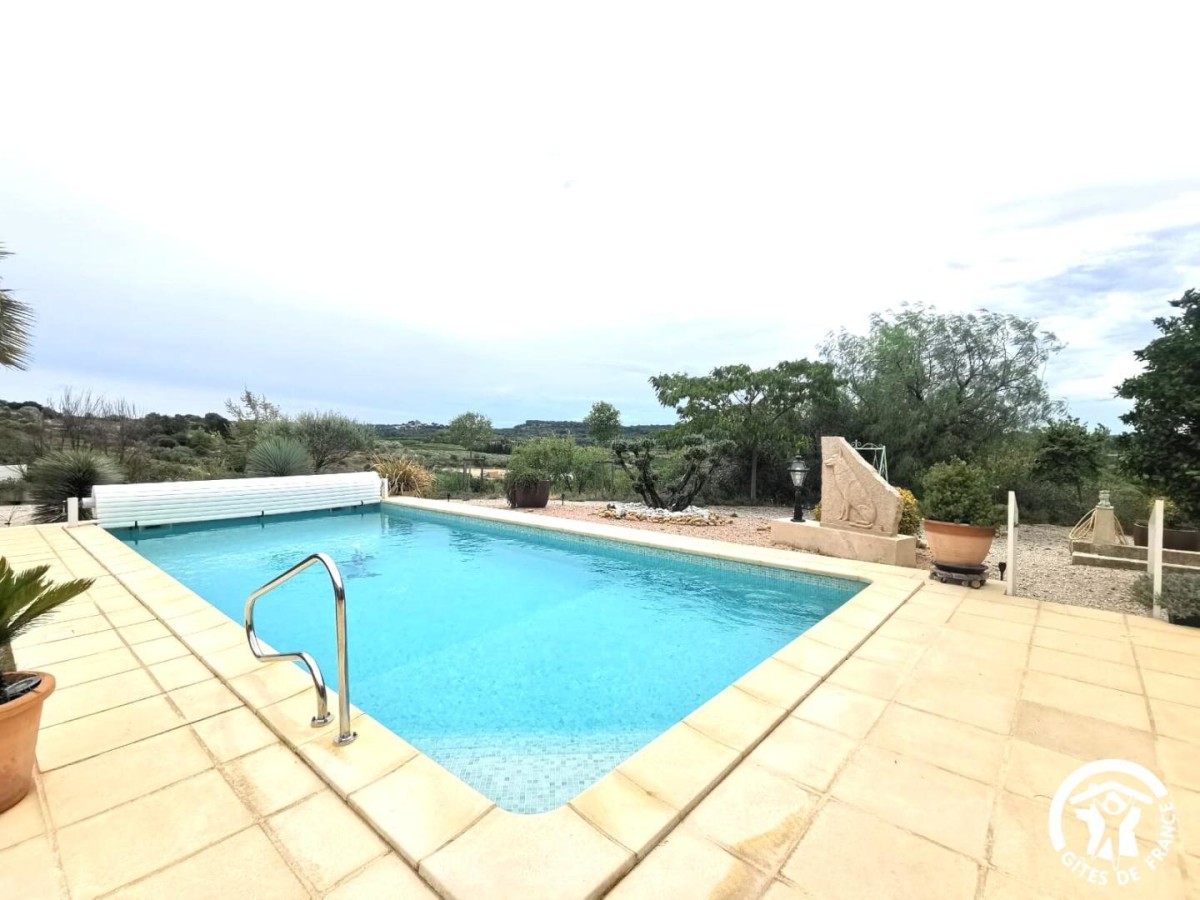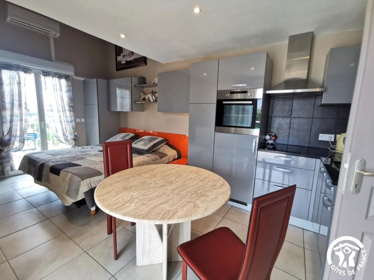 Passez d’agréables vacances au Gîte des sculptures, qui tire son nom des sculptures présentes dans le jardin commun du gîte, un joli studio idéal pour un couple ou pour des amis avec un beau séjour et un spa privatif, parfait pour des vacances dans le calme et la détente dans l’Hérault ! Aux alentours, profitez du Lac du Salagou qui offre des activités nautiques et des randonnées au milieu d’un paysage unique. Ne manquez pas non plus de visiter le célèbre village de Saint-Guilhem-le-Désert, classé parmi les plus beaux villages de France, et de faire une randonnée sur ses célèbres sentiers escarpés. Visitez également le village médiéval de Pézenas, avec son superbe centre historique et ses boutiques et ateliers d’artisanat. Le gîte comprend : – Une belle pièce de vie avec un espace salle à manger et cuisine bien équipée (four, réfrigérateur avec compartiment congélateur, nécessaire de cuisine…), ainsi qu’un espace nuit avec un lit en 190×200 cm (literie électrique sur un côté) et une télévision ; – Une salle d’eau avec douche, vasque avec miroir et WC ; – Une terrasse avec chaises et tables avec une vue imprenable sur les environs ; – Un bel extérieur avec un spa privatif et une piscine commune chauffée (10 x 4,5 x 1,70 m), disponible de 10h à 18h. Vous pourrez vous stationner gratuitement à l’intérieur de la propriété. A noter que le gîte n’accepte pas les enfants pour des questions de sécurité.