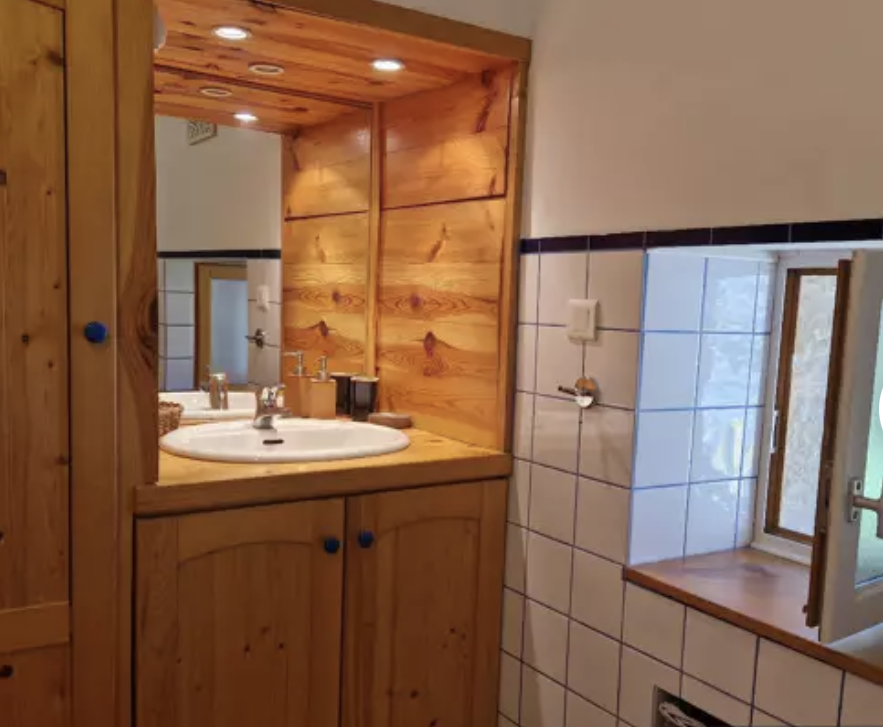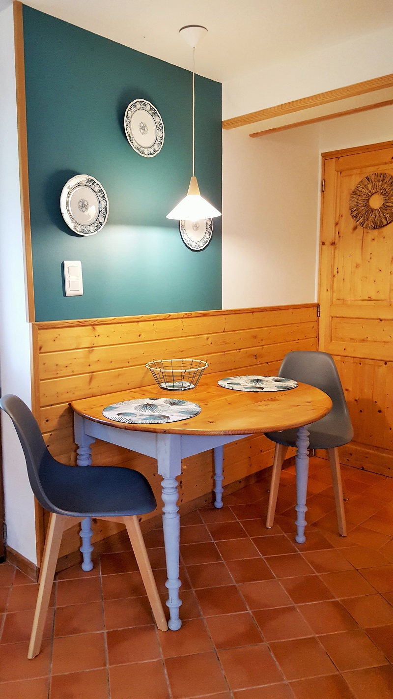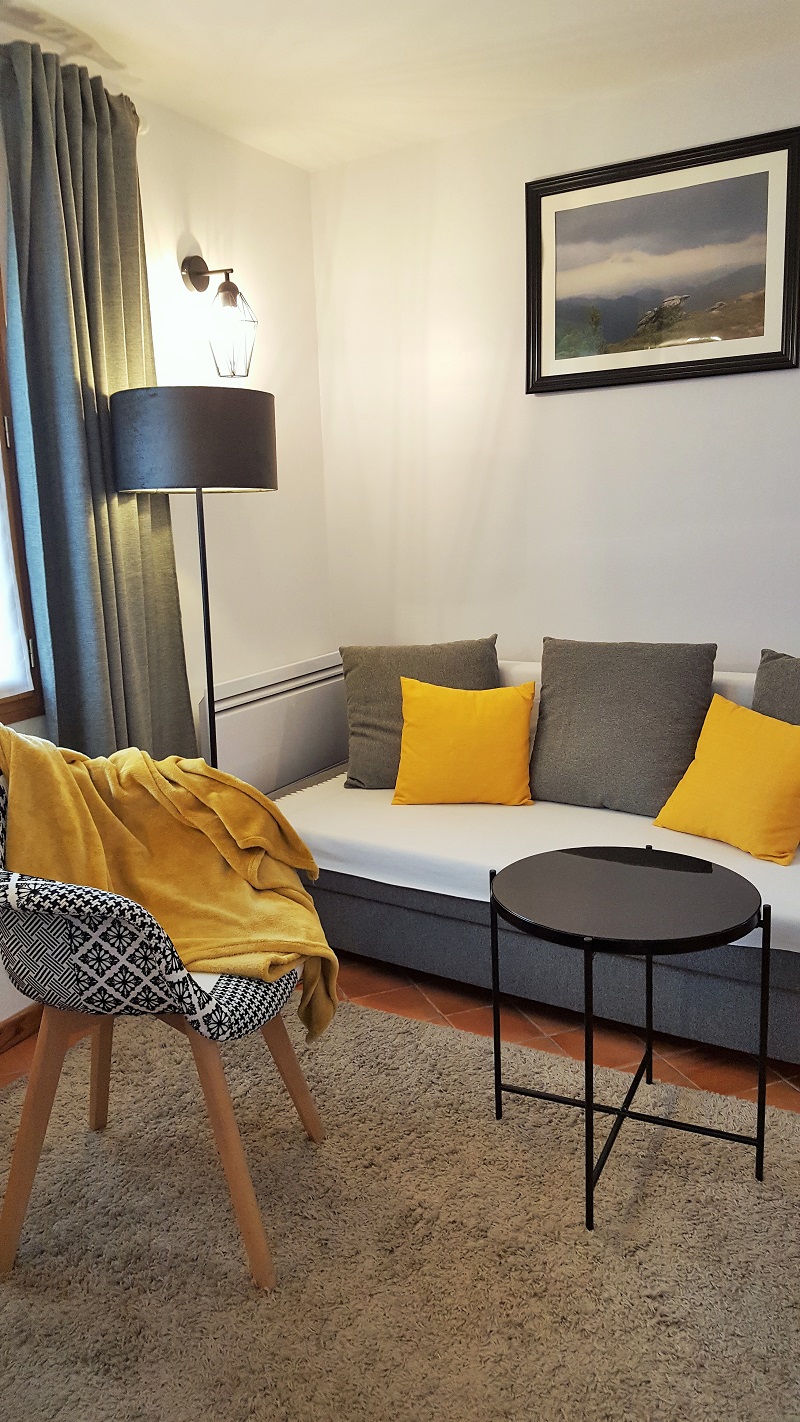 Gîte de 40m², idéal pour couple et randonneurs, comprenant au RDC séjour, coin repas et coin cuisine, et au 1er étage chambre et salle d’eau.