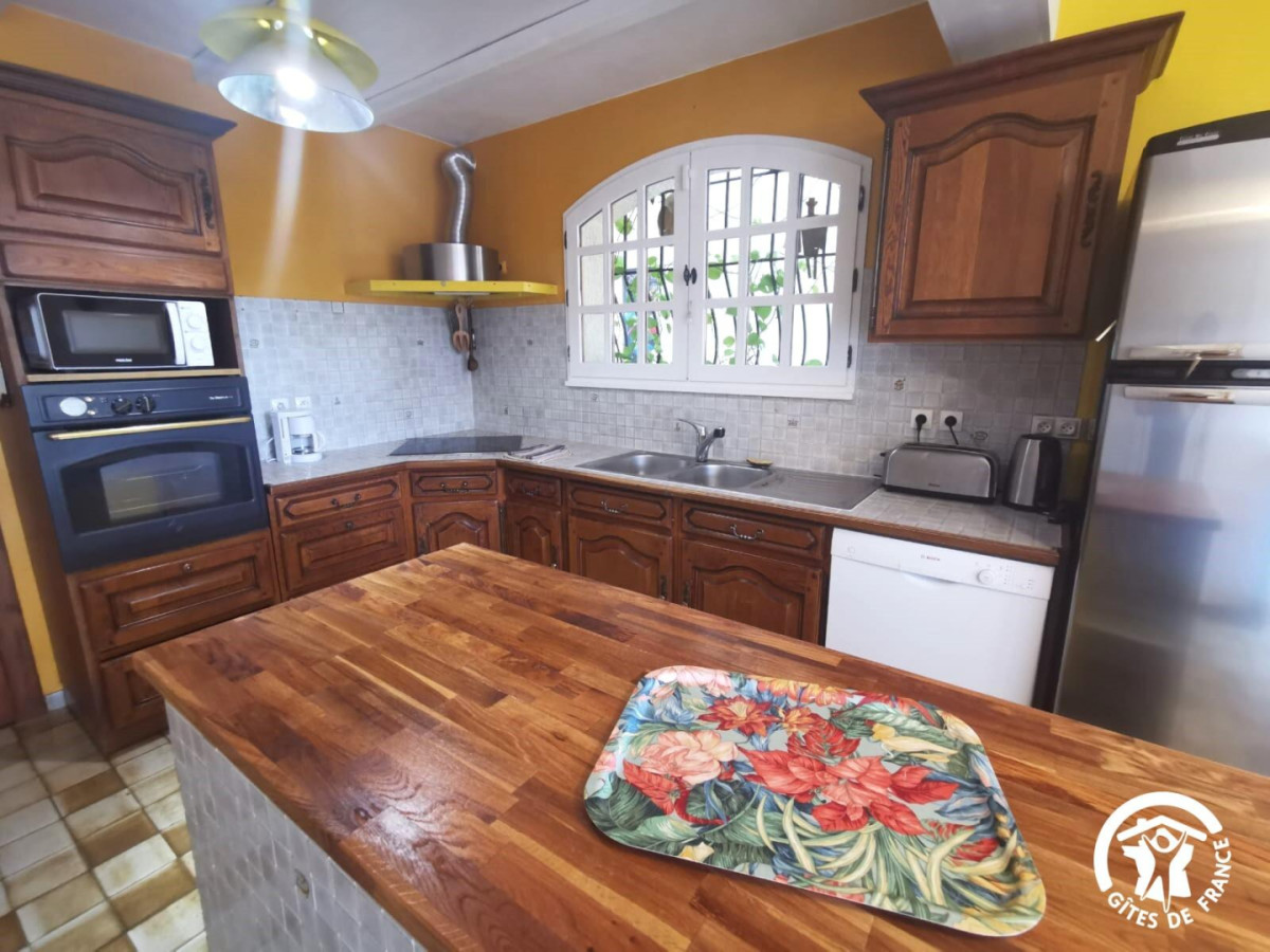 Le gîte dispose également d’une cuisine bien équipée (réfrigérateur avec compartiment congélateur, four, micro-ondes, lave-vaisselle, cafetière, bouilloire, grille-pain…) avec une table à manger et un ilot central. Cette cuisine donne directement sur une jolie terrasse fleurie avec une table. Le gîte possède également une chambre pour deux personnes avec un lit double 140x190cm, ainsi qu’une deuxième chambre avec 2 lits simples. Vous trouverez une salle de bain élégante avec baignoire, WC, vasque avec miroir et machine à laver. Le gîte compte aussi un autre WC indépendant de la salle de bain. Le patio du gîte n’est pas privatif et est commun avec les propriétaires. 2 couchages supplémentaires sont possibles dans le salon (canapés convertibles) sur demande auprès du service réservation. A l’extérieur, vous pourrez profiter d’une belle piscine (accessible jusqu’à 18h, à discuter avec les propriétaires) avec transats pour se rafraichir et se détendre pendant vos vacances ! Le domaine possède également un terrain de pétanque pour des parties endiablés en famille ou entre amis. Possibilité de parking dans la cour en toute sécurité, la cour est fermée par un portail manœuvré par une télécommande Attractions : Profitez de votre séjour au Gîte du Pioch pour découvrir le charmant village de Montferrier-sur-Lez ; déambulez dans les ruelles atypiques du village comme la Rue du Four et son atmosphère bucolique et découvrez les anciennes bâtisses du village construites en pierres basaltiques. Embarquez pour une balade sur le circuit patrimoine du village pour découvrir les sites historiques du village : la poterne du château, les terrasses de celui-ci (avec une vue imprenable sur les alentours) et la Cour d’honneur, l’Eglise Saint-Etienne et de la Gleizasse, les différentes places du village ou encore l’Aqueduc… Ne manquez pas le château de Montferrier au centre du village avec sa tour crénelée. Rejoignez les plages de Pérols et la Grande-Motte en 35mn en voiture.