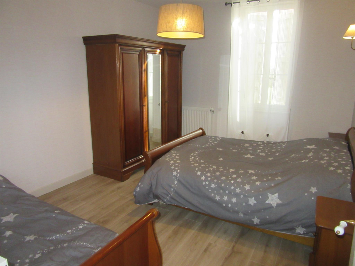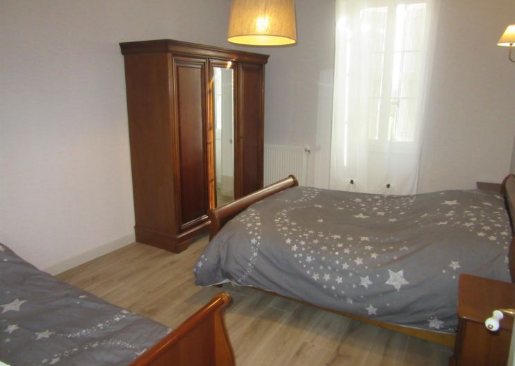 Les 5 chambres se trouvent au premier étage, ainsi qu’un coin détente canapé (convertible). Salle de bain (baignoire et douche) + une salle d’eau + 2 wc. Deux chambres doubles (lit 160X200), deux chambres triple (lit 140X190 + lit simple en 90X190), la dernière pouvant accueillir jusqu’à 4 personnes (lit 140X190 + 2 lits simples en 90X190 dont un gigogne).
