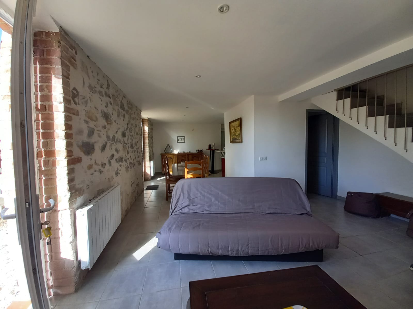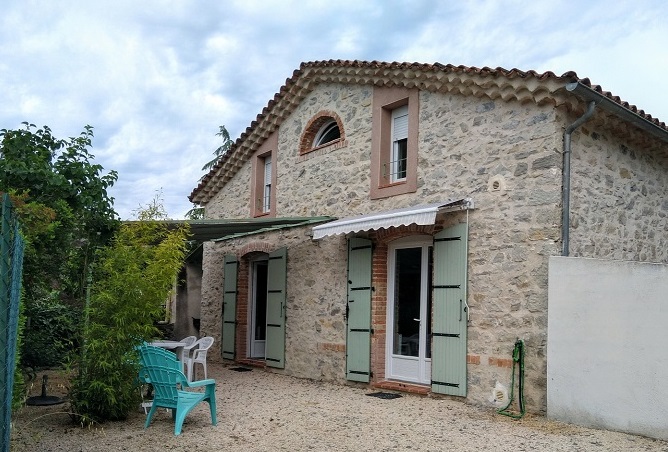 Ce logement indépendant de 60m², dans une maison vigneronne en pierre, entièrement rénovée, pierres apparentes et briques font le charme de cette construction au pied des Cévennes.