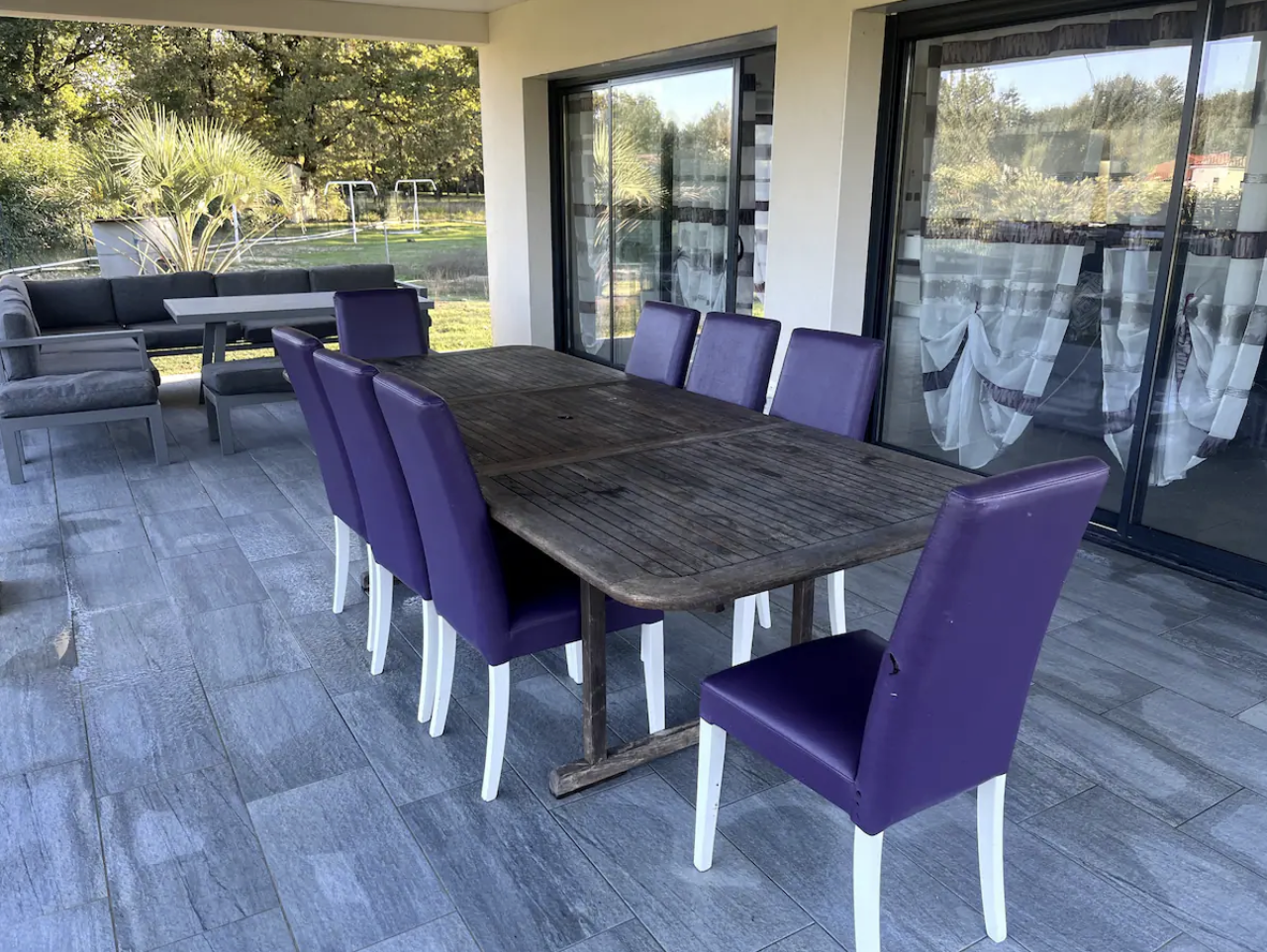 Autres équipements extérieurs : boules de pétanque, ballon avec 2 cages de foot pour enfant, jeu de fléchettes électroniques, toboggan enfant.