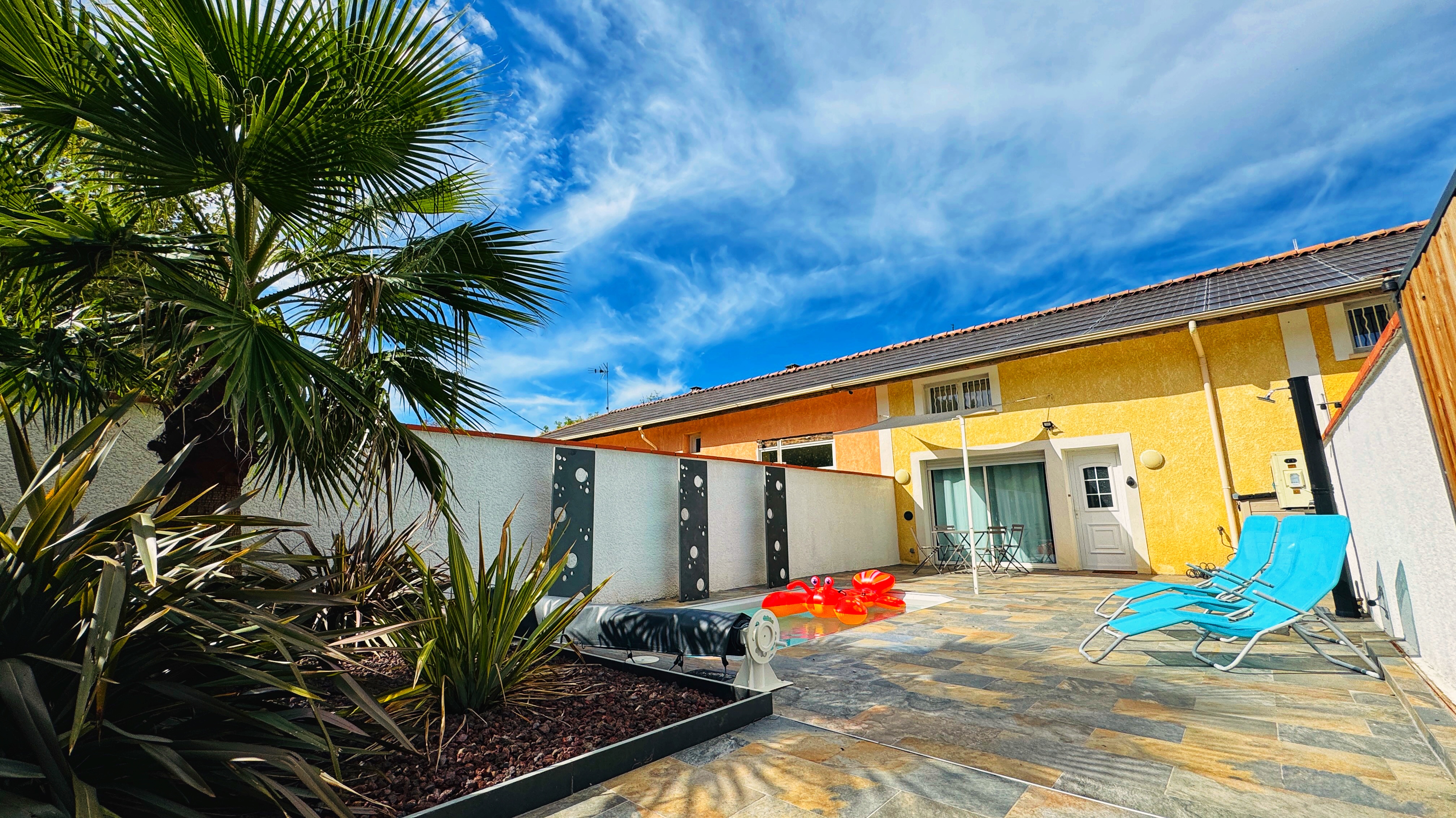 Le Gîte Nature Bien-Être Piscine du Tarn se situe dans un lieu exceptionnel de détente au cœur de la campagne, très accessible entre Toulouse et Albi et à 5 mn de l’A68. Ce Cottage de 94 m² est très sympathique et chaleureux pour héberger 6-8 personnes. Vous découvrez dès votre arrivée une place de parking et une entrée privative qui vous donne accès à une cour intérieure avec piscine chauffée d’avril à octobre dés que les nuits sont supérieures à 16°. Vous aurez également à une première terrasse où un salon de jardin et une table en bois vous accueille pour vous suggérer un apéro de bienvenue ou une appréciable pause !