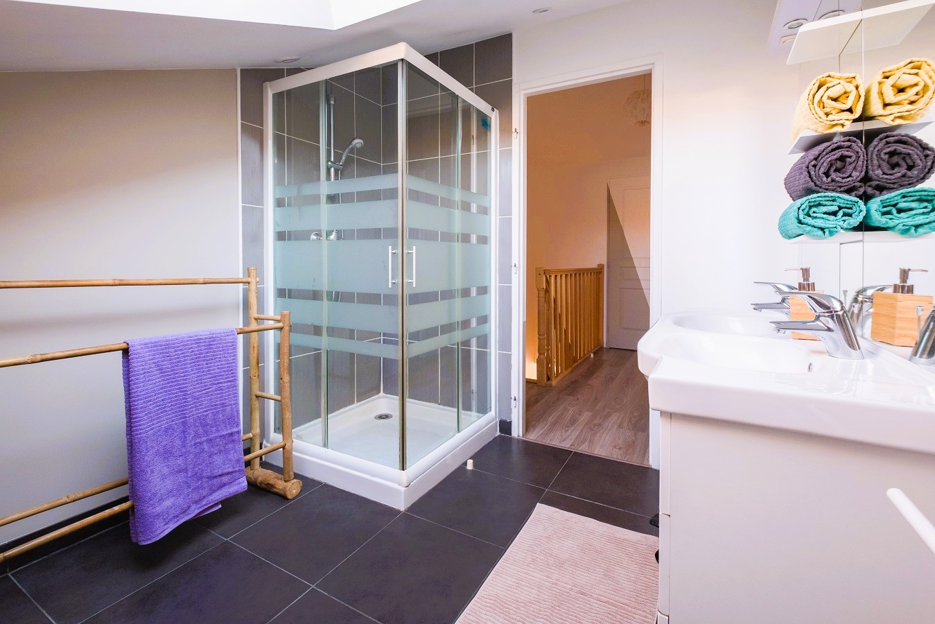 À l’étage, vous découvrez deux chambres stylisées par des ambiances épurées et chaleureuses. Un premier nid douillet et spacieux de qualité hôtelière en 160 ; un autre espace cocooning pour une deuxième chambre avec l’originalité d’un canapé futon en 140 propice à la détente, et une literie en 140 pour des ambiances zen-chic aux qualités reconnues.Une deuxième salle de bain vous propose une douche ainsi que deux vasques pour penser à votre espace de confort. Vous bénéficiez également d’un second toilette indépendant.