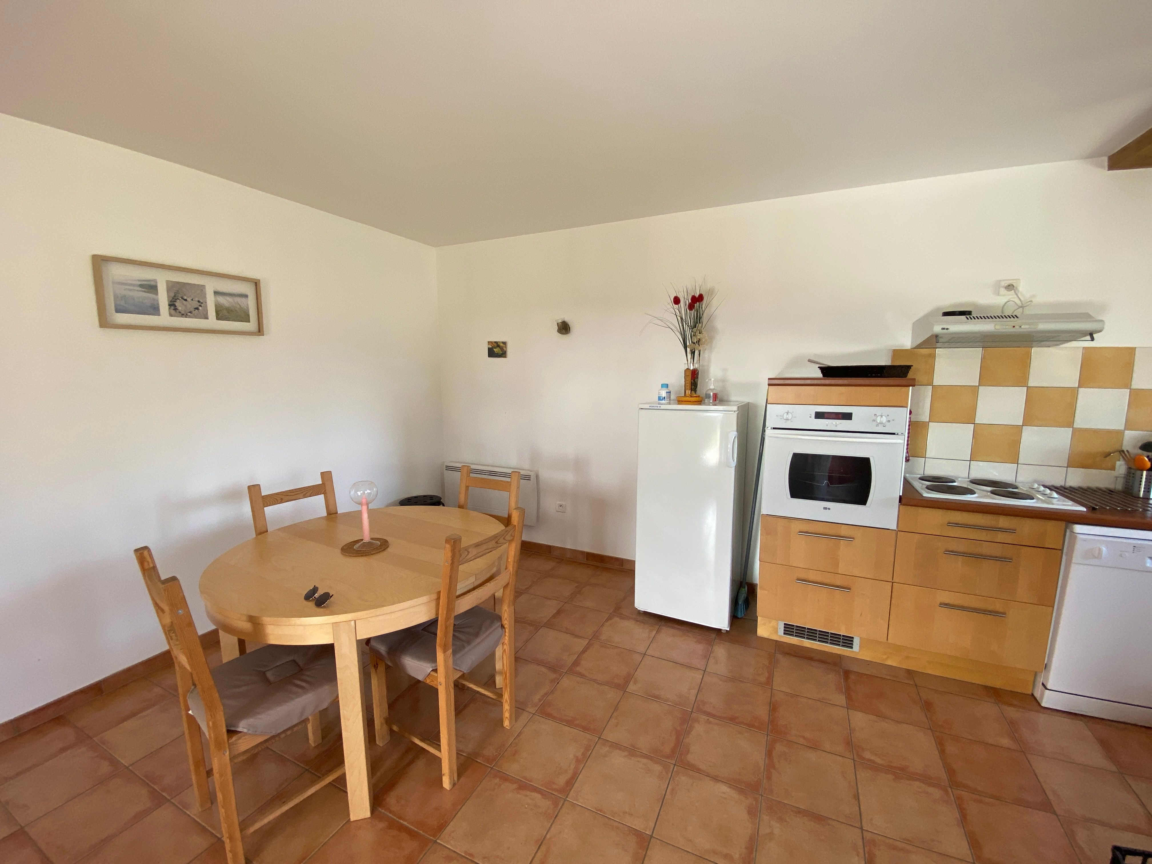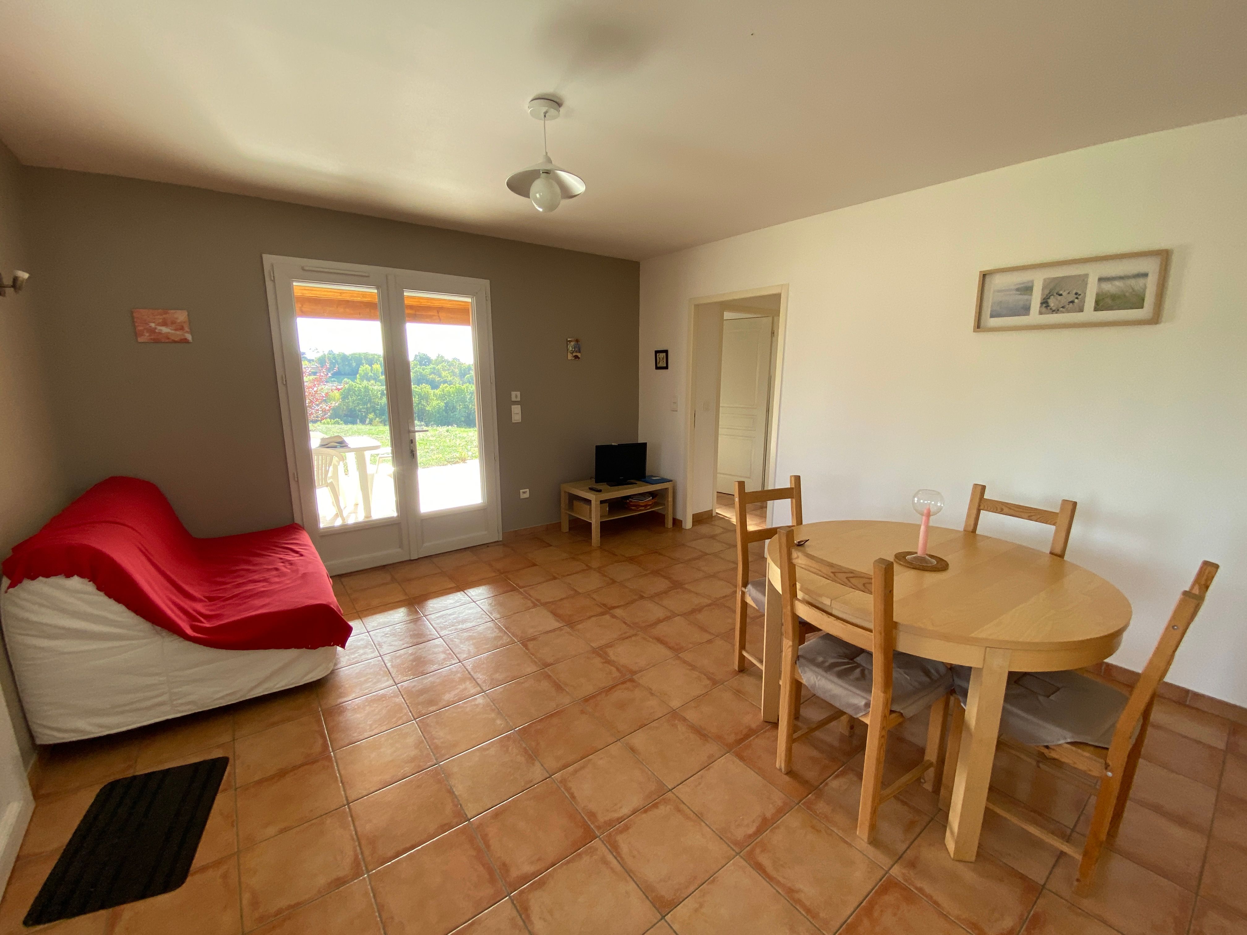 Tout en rez de chaussée, le logement comprend une pièce à vivre avec un espace cuisine de type intégré (lave-vaisselle, réfrigérateur, plaque, micro-ondes), table et chaises. Un espace salon (canapé BZ, TV écran plat). Deux chambres (1 lit 2 personnes chacune), une salle d’eau et un wc indépendant avec lave-mains. Terrasse avec salon de jardin et barbecue. Linge de lit fourni sur option. Climatisation dans le logement. Pas de wifi. Piscine chez le propriétaire et accessible par les locataires.