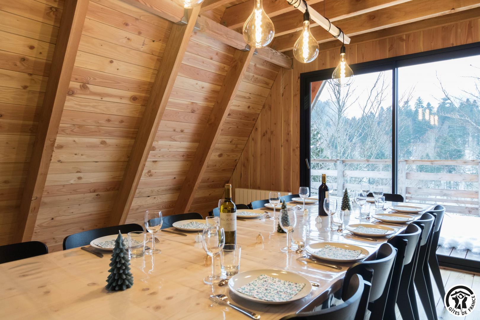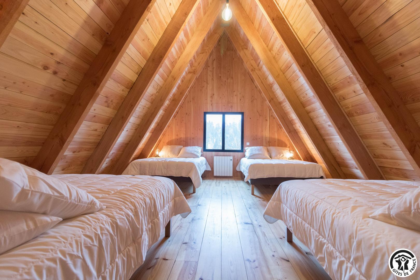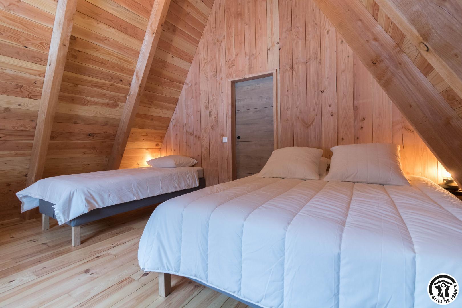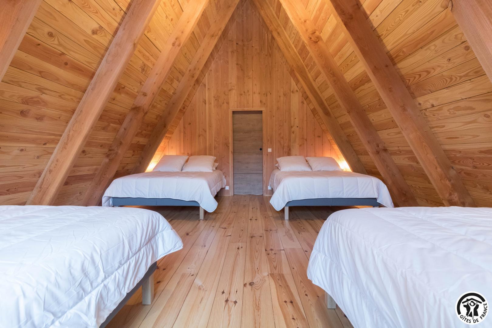 L’agencement a été conçu pour accueillir confortablement jusqu’à 12 personnes. Au rez-de-chaussée, un vaste séjour avec cuisine intégrée, table et 15 chaises et un coin salon, deux chambres accueillantes (1 lit double en 160*200cm chacune, l’une avec un bureau pour télétravailler) permettent une vraie autonomie, complétées par une salle d’eau avec WC. À l’étage, deux autres chambres (1 lit en 160*200cm et 1 lit en 90*200cm)(4 lits en 140*190cm) prolongent l’espace nuit, avec une seconde salle d’eau et WC, garantissant confort et intimité à chacun, que vous soyez en famille, entre amis ou en groupe professionnel.