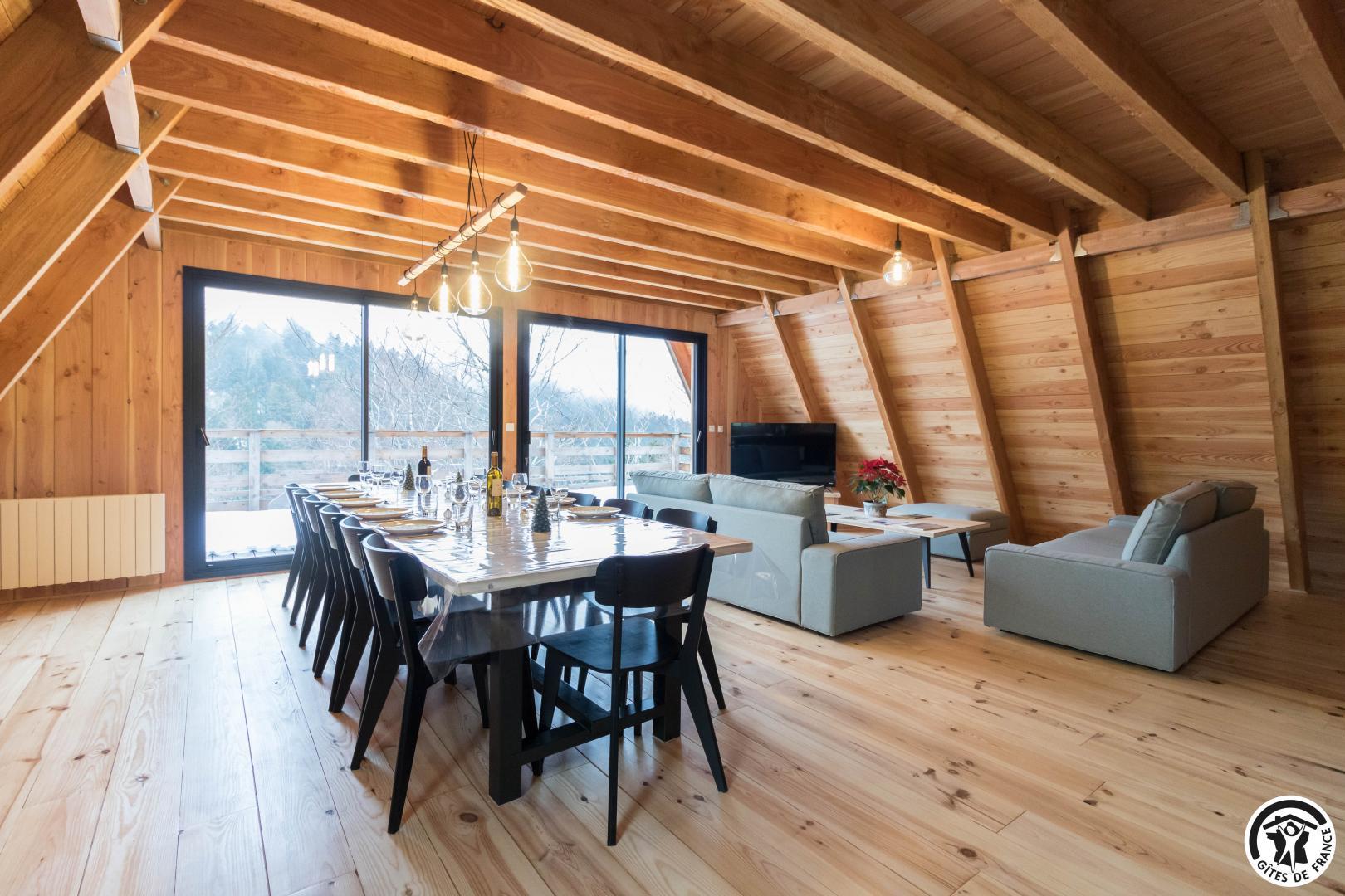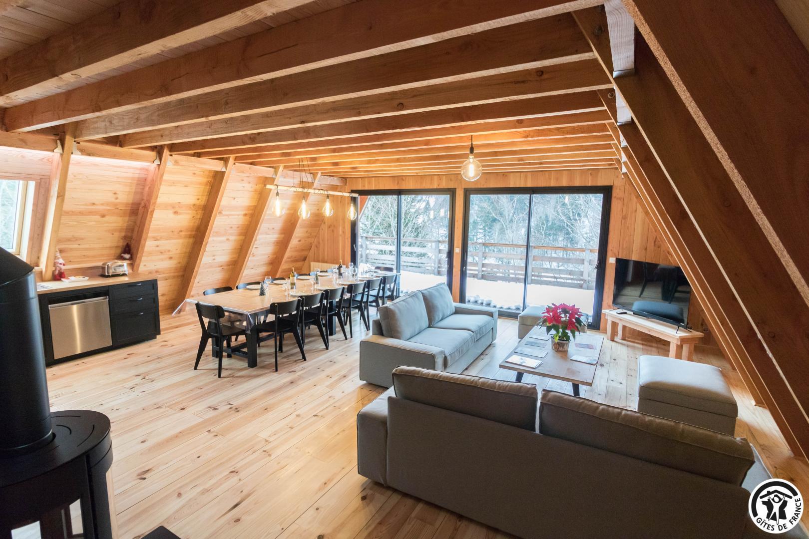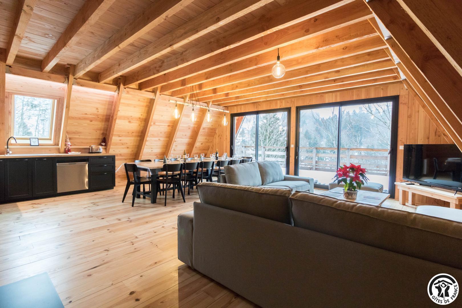 Dès l’entrée, le ton est donné : le bois omniprésent, les finitions soignées et la luminosité naturelle créent une ambiance cosy et haut de gamme.
