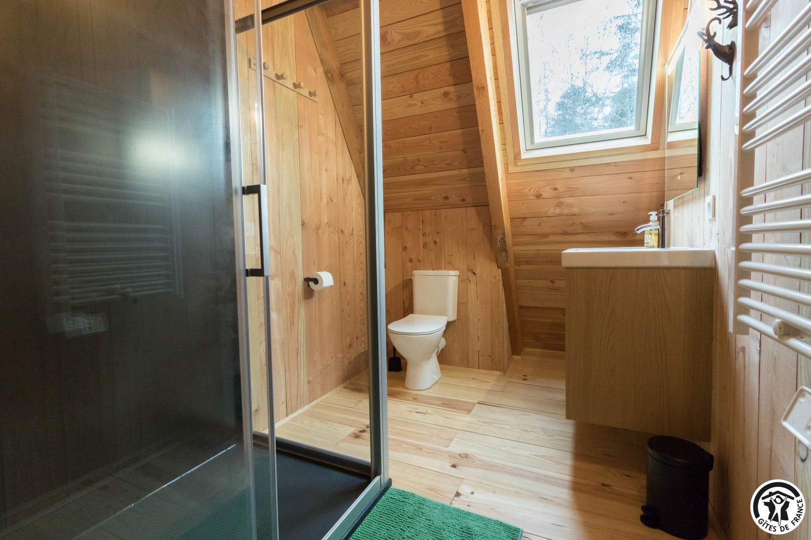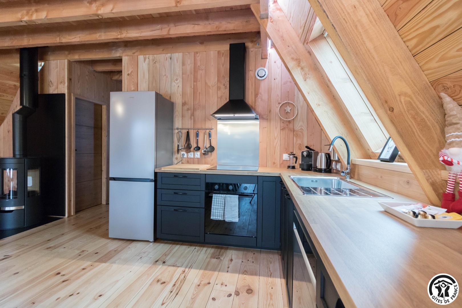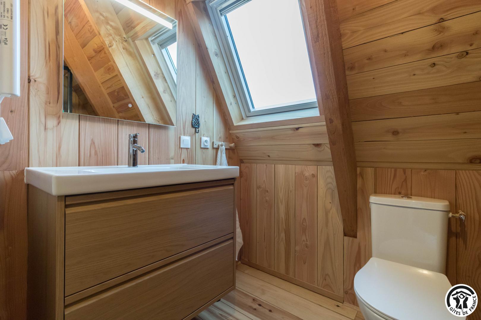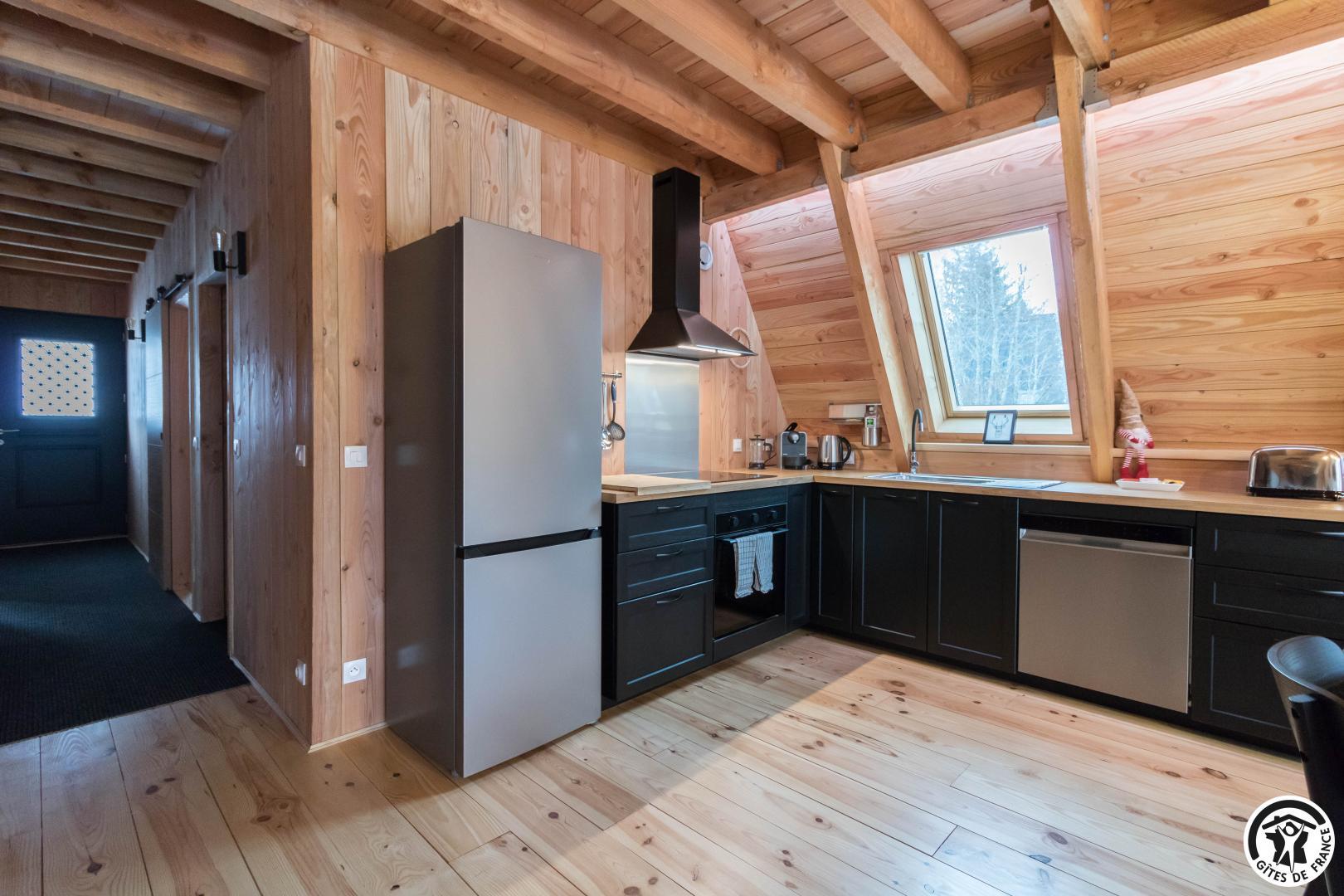 Dès l’entrée, le ton est donné : le bois omniprésent, les finitions soignées et la luminosité naturelle créent une ambiance cosy et haut de gamme.