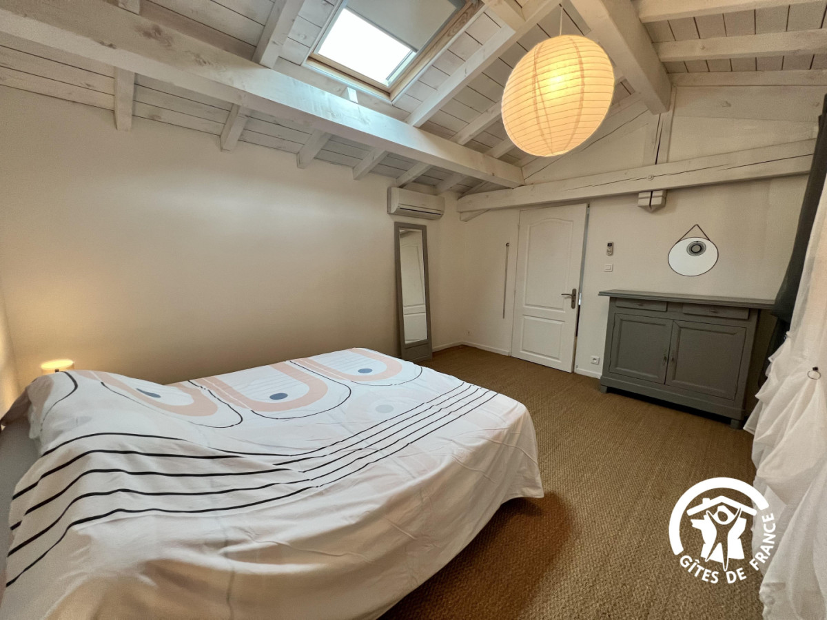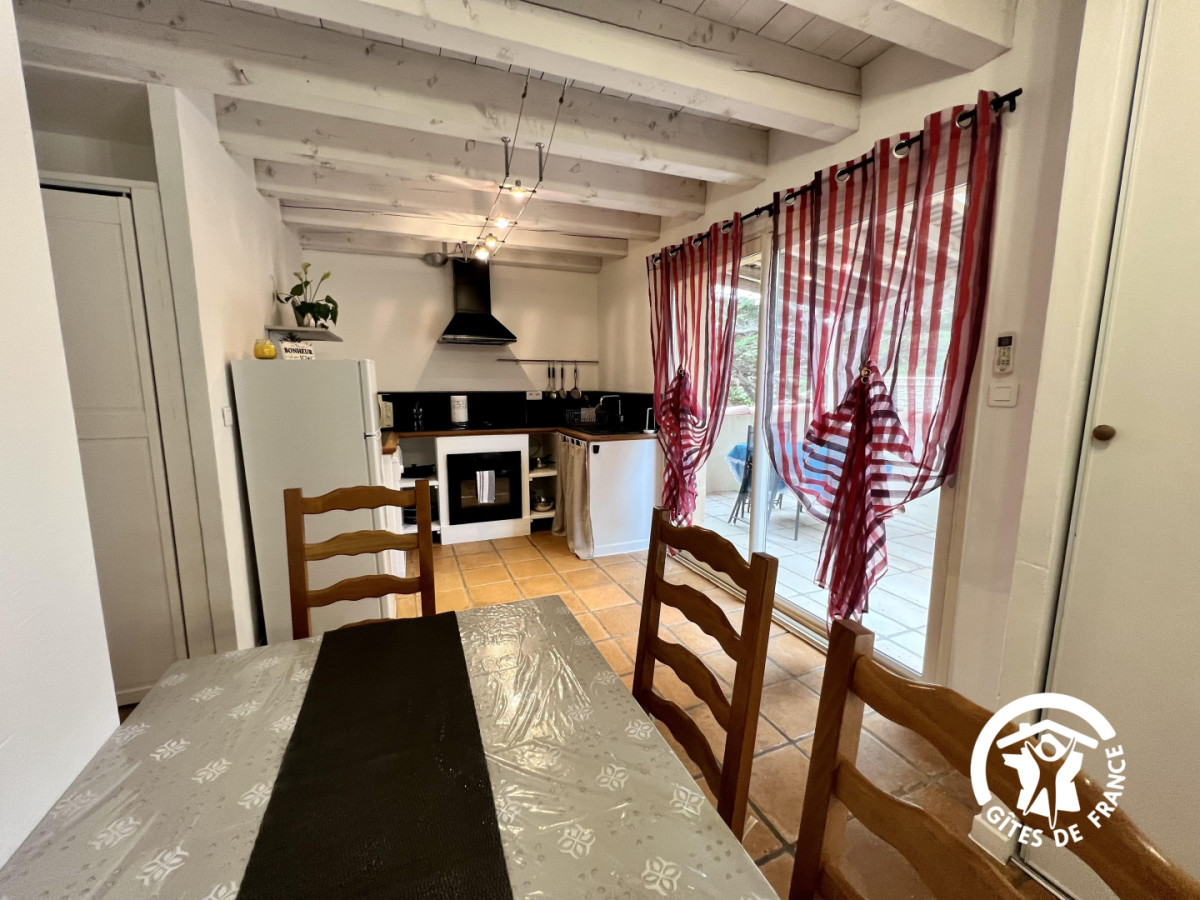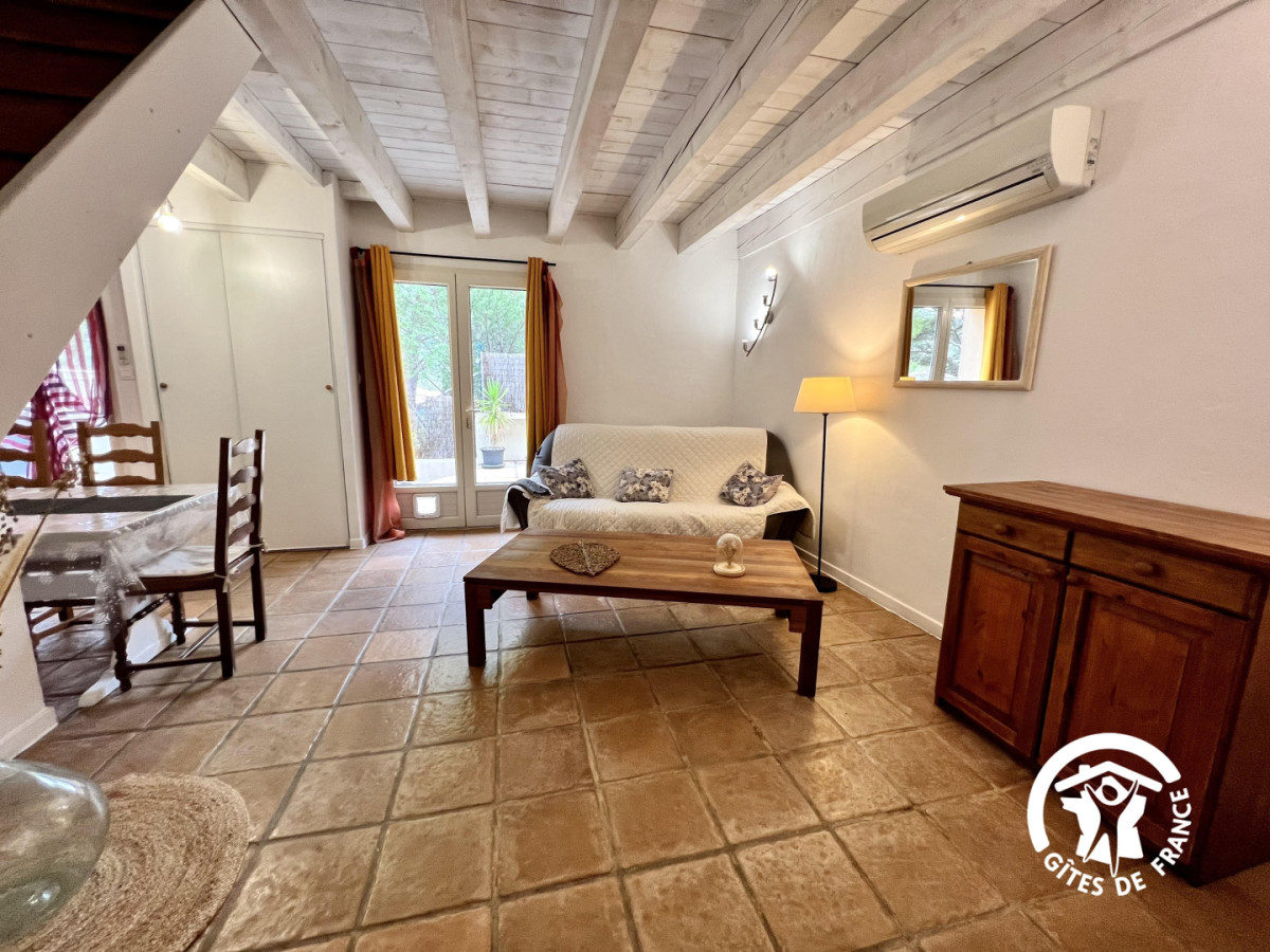 Ici tout est propice au calme et au repos, vous séjournerez dans un environnement de pleine nature, entre garrigues et vignobles. Les propriétaires vignerons et oléiculteurs, vous proposeront une dégustation de leurs productions. Au village au bord des étangs, vous déambulerez dans ce village occitan avec ses carrierettes médiévales et ses calades. De nombreuses balades vous mèneront par un parcours sur pilotis vers d’anciennes salines, et vers le Doul, véritable petite mer intérieure. Vous êtes également à quelques kilomètres de Narbonne et de son musée de la romanité. Les plages de la Méditerranée à 15 minutes, la réserve Africaine de Sigean à 10 minutes, ainsi que de nombreuses promenades pédestres et VTT tout autour du Gîte. Sur place le gîte comprend un parking privatif, une belle terrasse privative avec mobilier de jardin. Au rez de chaussée: séjour-cuisine donnant sur la terrasse. WC indépendant. Salle d’eau. A l’étage: une chambre avec 1 lit en 160 et salle de bain privative. Une autre chambre avec 3 lits en 90. Le gîte est entièrement climatisé, il est mitoyen au second gîte tout en conservant l’intimité. Accès au gîte par un escalier à l’extérieur. Prise extérieure pour recharger un véhicule électrique.