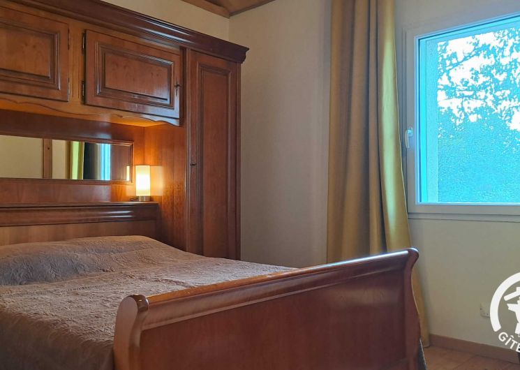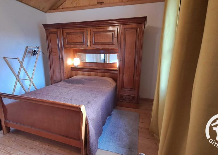 Chambre avec lit double en 140x190cm et commode.