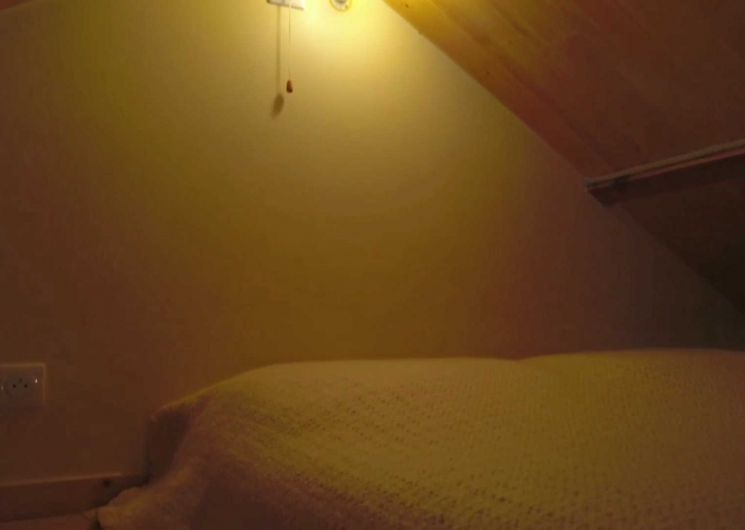 Accès à une mezzanine ouverte au-dessus du séjour et une hauteur sous-plafond basse permettant d’avoir un couchage d’appoint supplémentaire de 2 places (matelas au sol). Accès paréchelle de meunier.