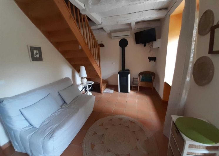 Gîte indépendant, aménagé dans une aile de la ferme, à proximité de l’habitation des propriétaires. Rez-de-chaussée : séjour/coin cuisine. A l’étage : deux chambres (un lit double 140x190cm, un lit simple 90x190cm), salle d’eau avec wc. Climatisation réversible. Draps et linge de maison sont fournis, les lits sont faits à votre arrivée.