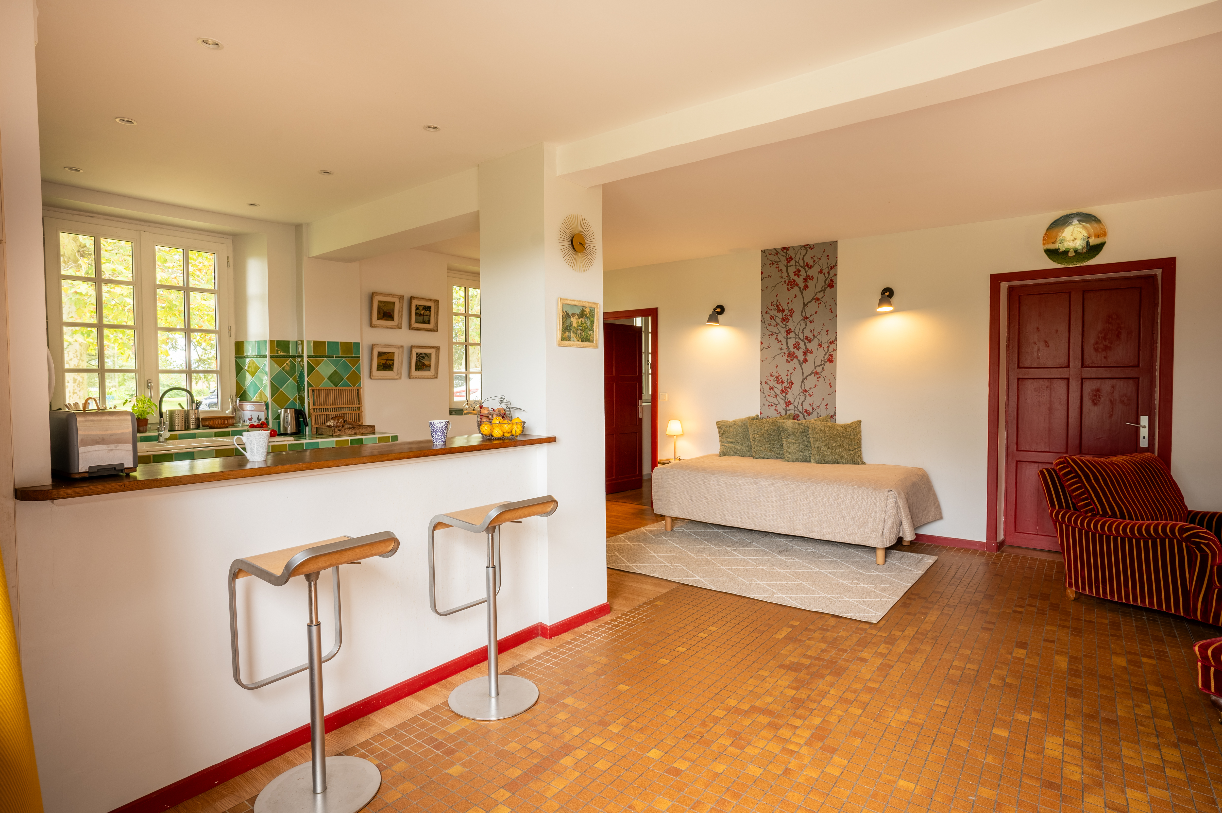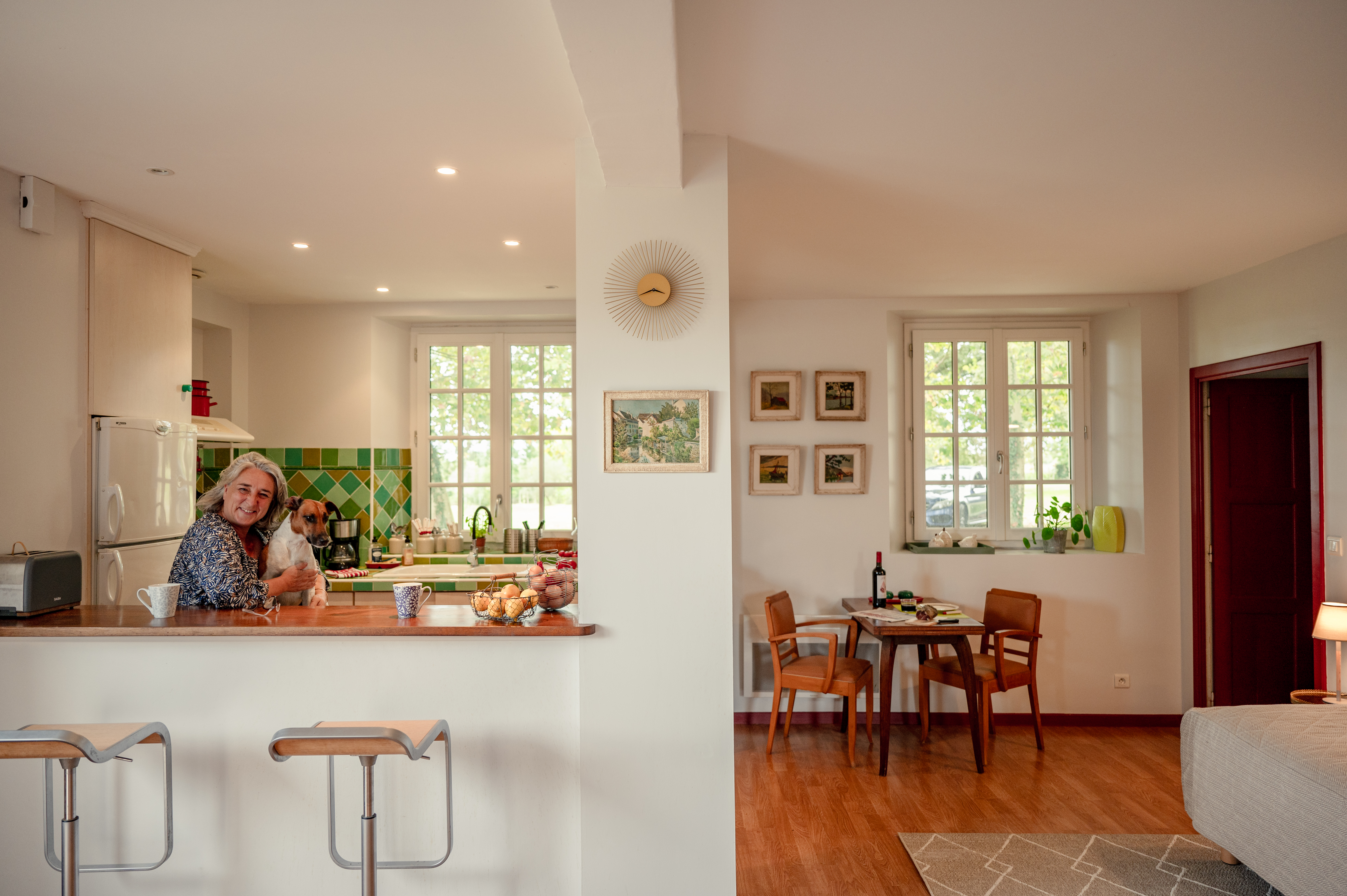 Le Levant de Crémens appartement de plein pied , avec vue sur la campagne et les chevaux de la maison. Appartement avec 3 orientations de 65 m², cuisine américaine tout équipée, coin repas, petit salon, chambre séparée et salle de bain.