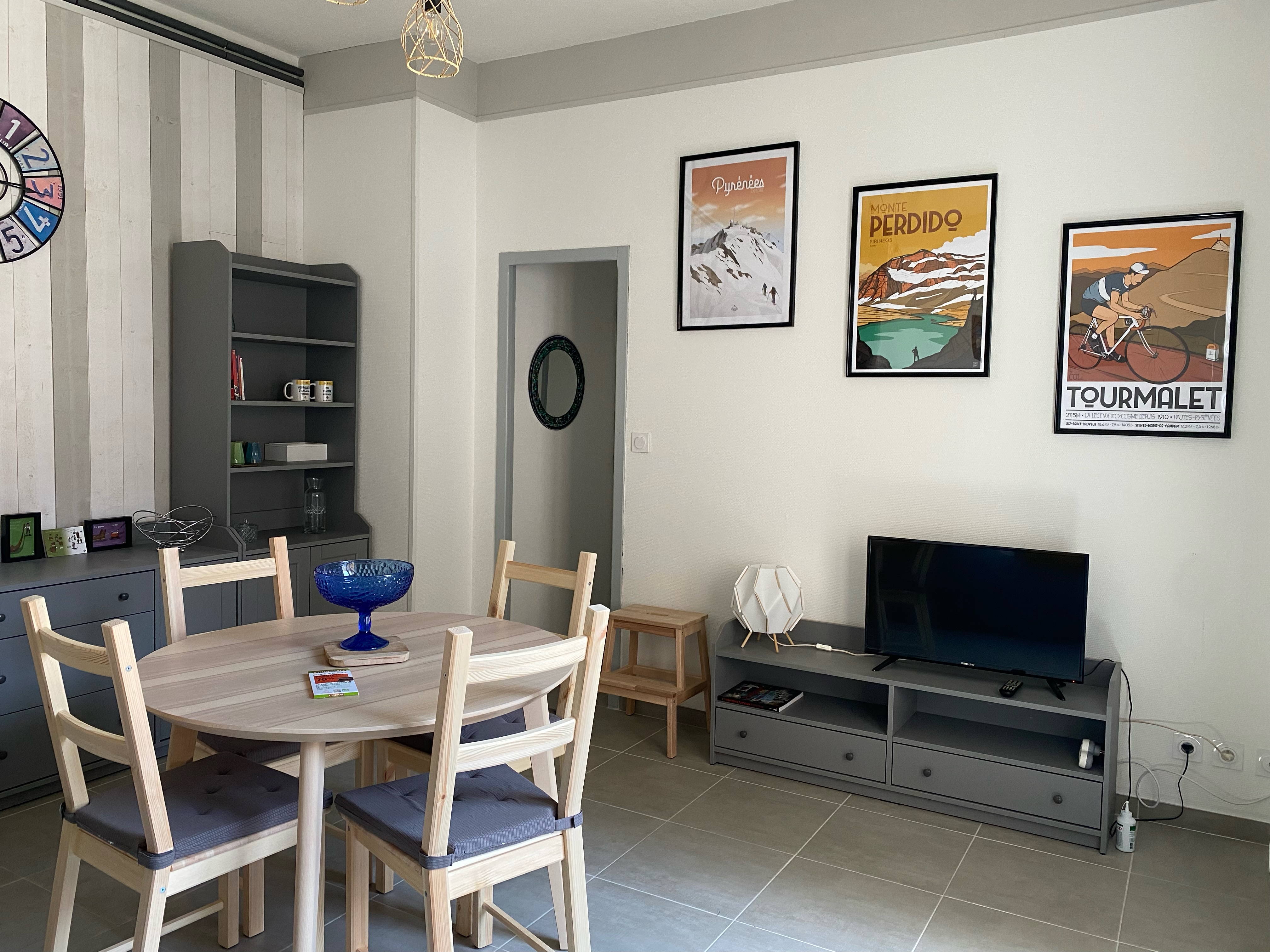 Bel appartement T2 très calme situé dans le cœur de ville, à 300 m à pied des Thermes au premier étage d’une résidence avec ascenseur. Une belle pièce à vivre très lumineuse donnant sur un balcon terrasse exposé au sud, équipée d’un canapé lit, TV, Wifi. Cuisine équipée d’un four, d’un micro-onde, frigo, lave-linge. Dans la chambre, 1 lit 140, armoire, 2 tables de chevet. Une salle d’eau équipée d’un sèche serviette, meuble colonne pour rangements et sèche-cheveux. .