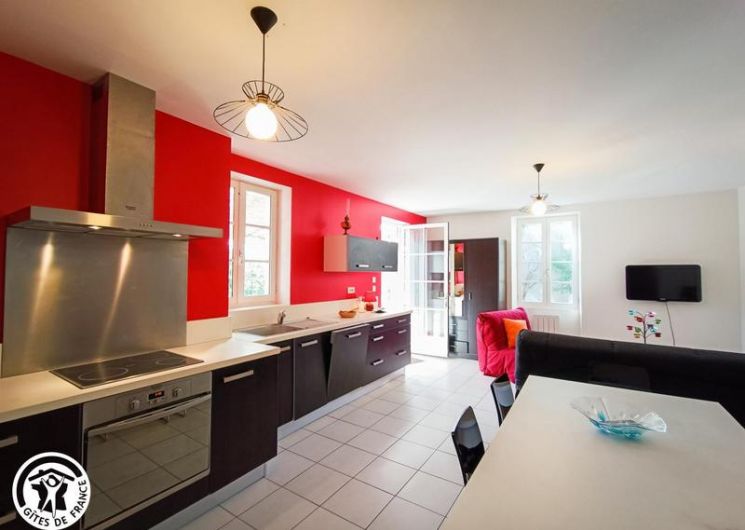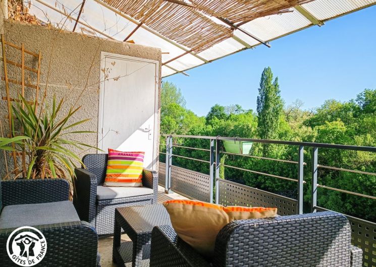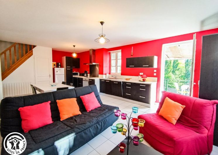 Maison de village mitoyenne à une habitation à l’année, sans vis à vis. Au rez de chaussée : séjour avec canapé, fauteuil, TV écran plat, et coin cuisine tout encastré avec tout l’équipement ; wc séparé ; terrasse semi-couverte avec salons de jardin et barbecue. A l’étage desservit par escalier droit, chambre mansardée ouverte avec un lit 140 puis salle d’eau + wc. Petit jardin clos en rez de jardin accessible par un escalier via la terrasse.
