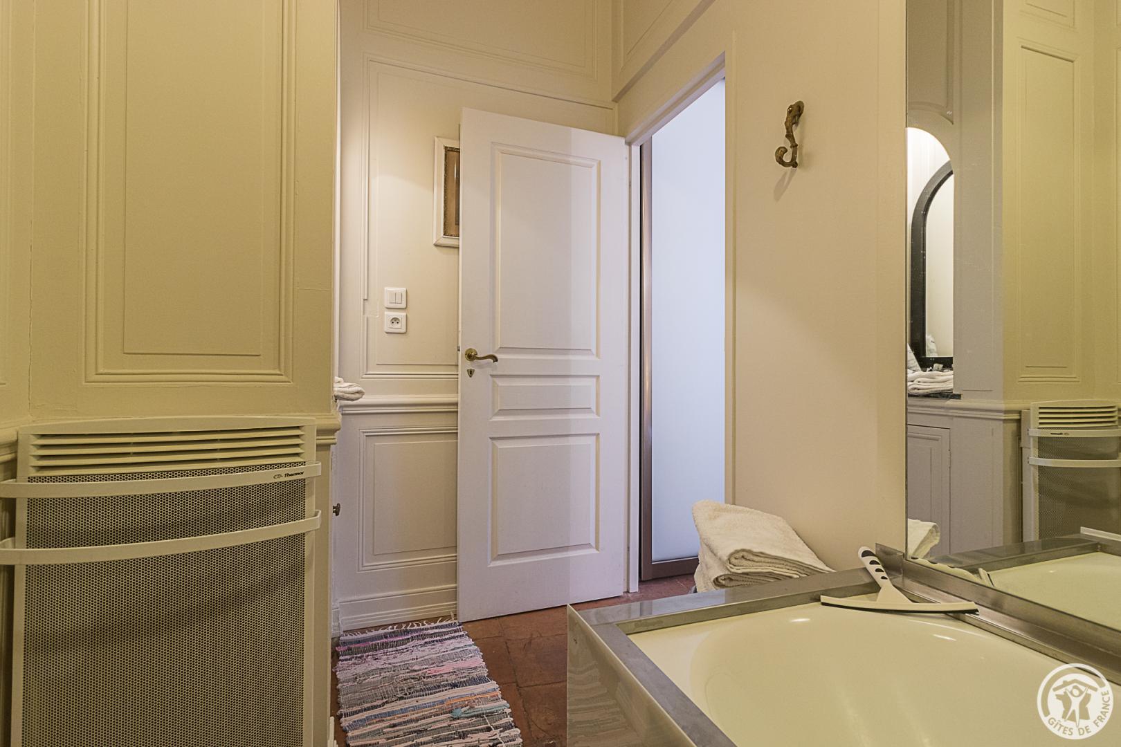 Un escalier commun conduit à l’étage : entrée (placard/penderie, coin-buanderie), grande pièce de séjour avec coin-repas et espace-salon, petite kitchenette, chambre (1 lit pour 2 personnes en 140x190cm) donnant sur une salle de bains/WC. Chauffage électrique. Connexion Internet Wifi (fibre). Animaux non admis.
