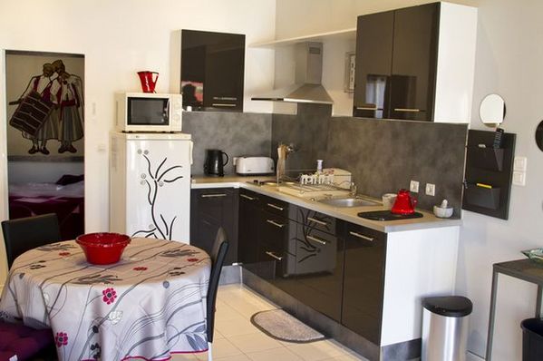 Un séjour cuisine comportant 1 BZ et 1 lit d’appoint pliant 80 cm, tout nécessaire de cuisine et matériel électroménager, TV 82cm, lecteur DVD, radio, parking privatif, barbecue, 1 chambre individuelle avec lit sommier ergonomique en 160 cm, équipement bébé : lit pliant bébé, matelas à langer.