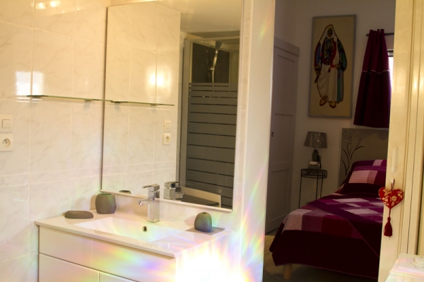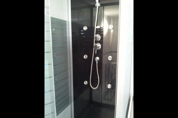 1 salle d’eau avec cabine douche, wc, 1 vasque, machine à laver, sèche-cheveux.
