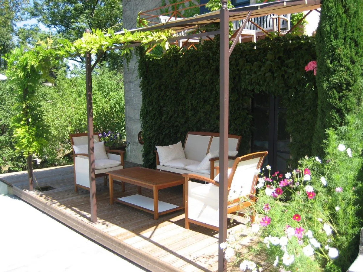 Il y a un jardin avec table et chaises devant la Maison Longue et une pelouse à l’arrière, mais les jardins et les champs du Mas d’Arjac sont offerts à votre curiosité.