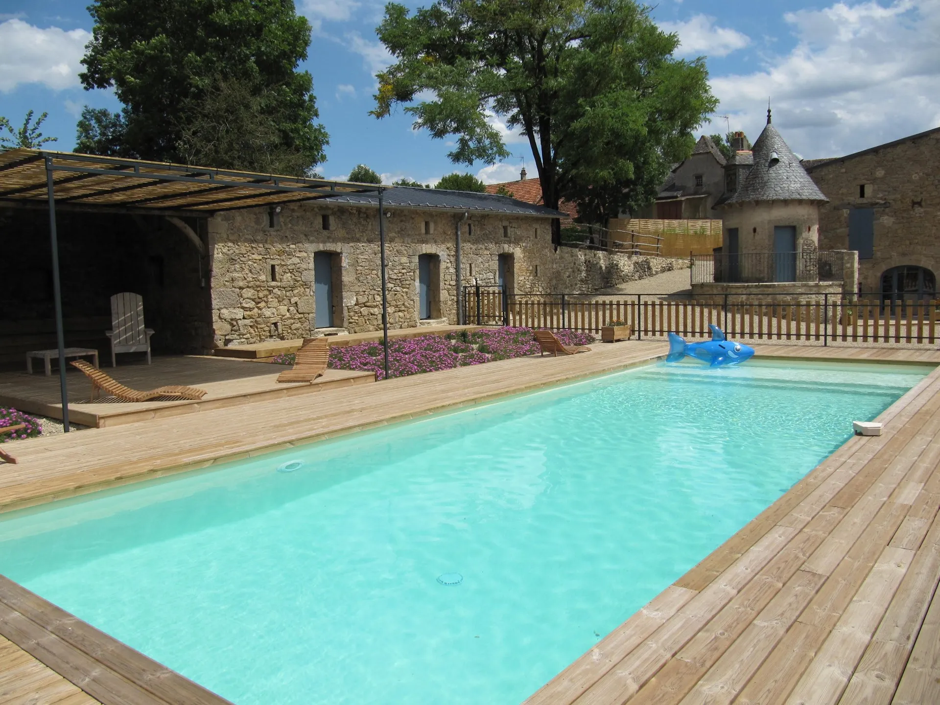 Terrasse privée couverte, jardin privatif non clos, salon de jardin, barbecue, piscine (12,5×4,5m) chauffée, close et commune (utilisable de juin à septembre)