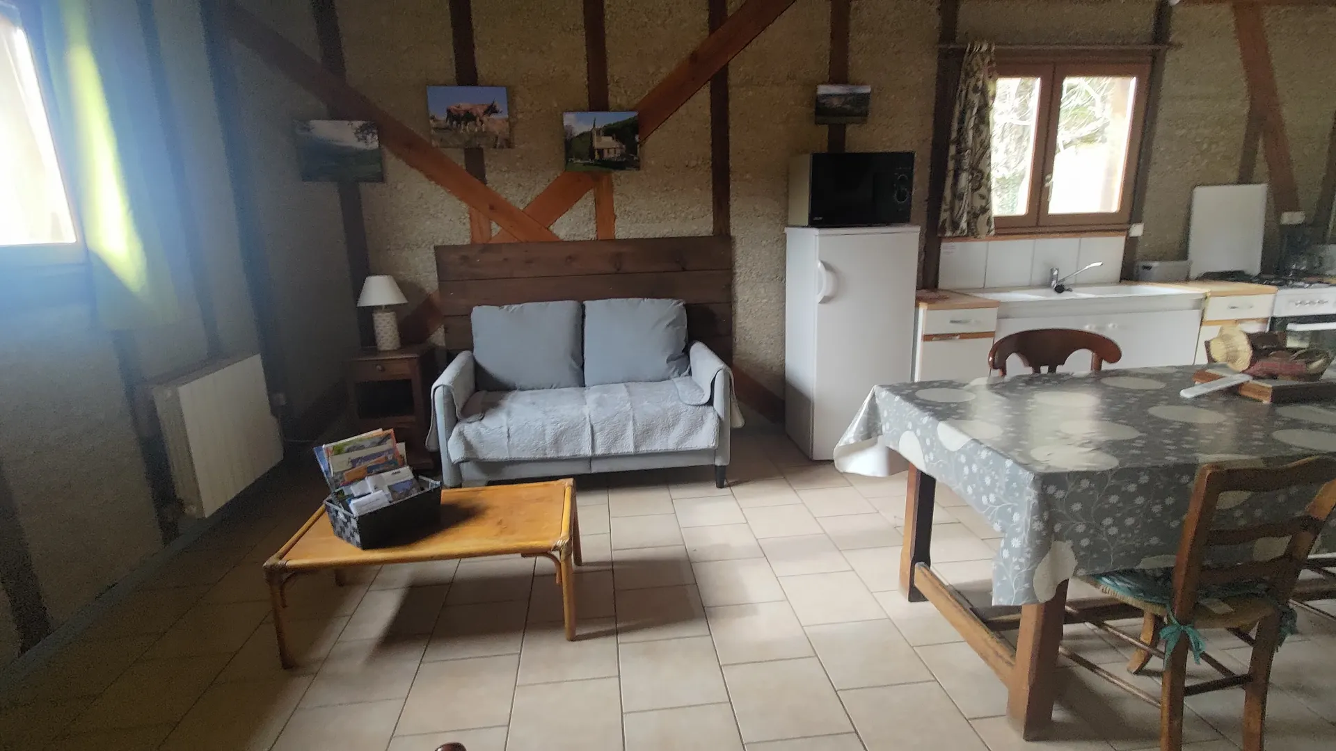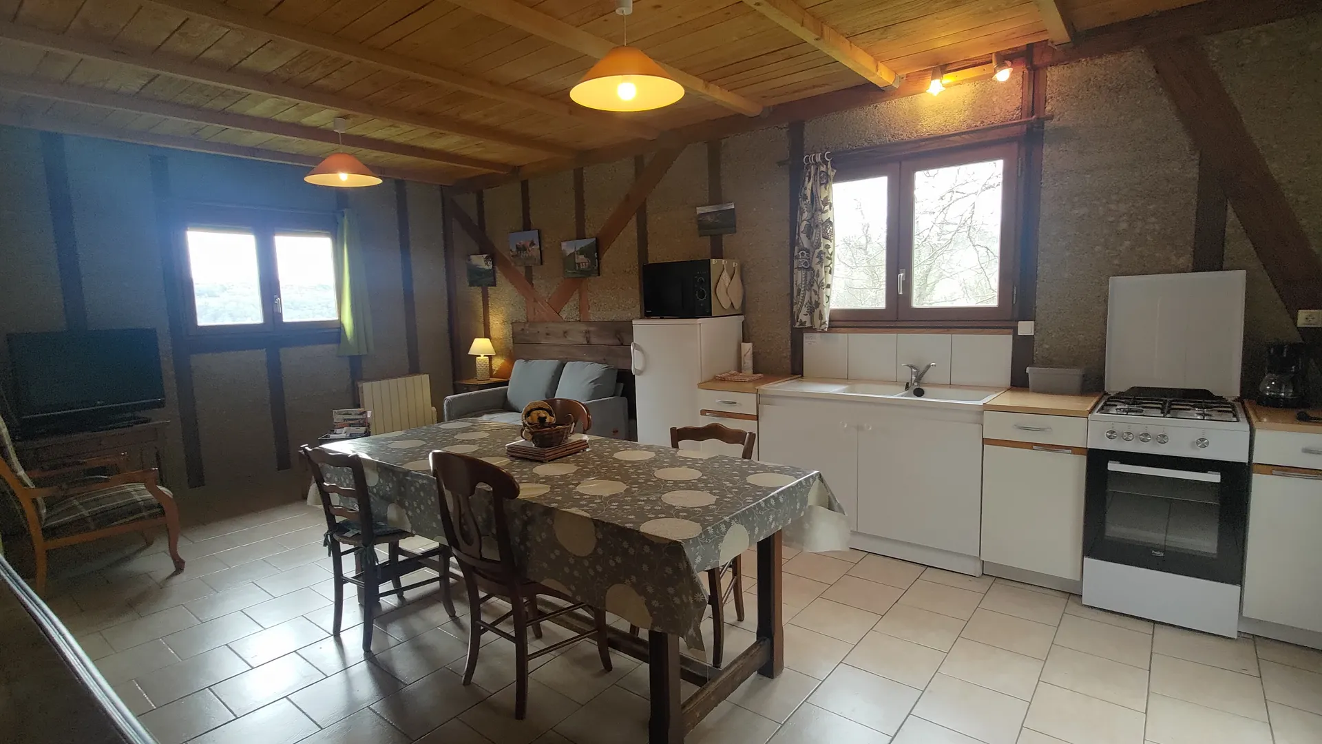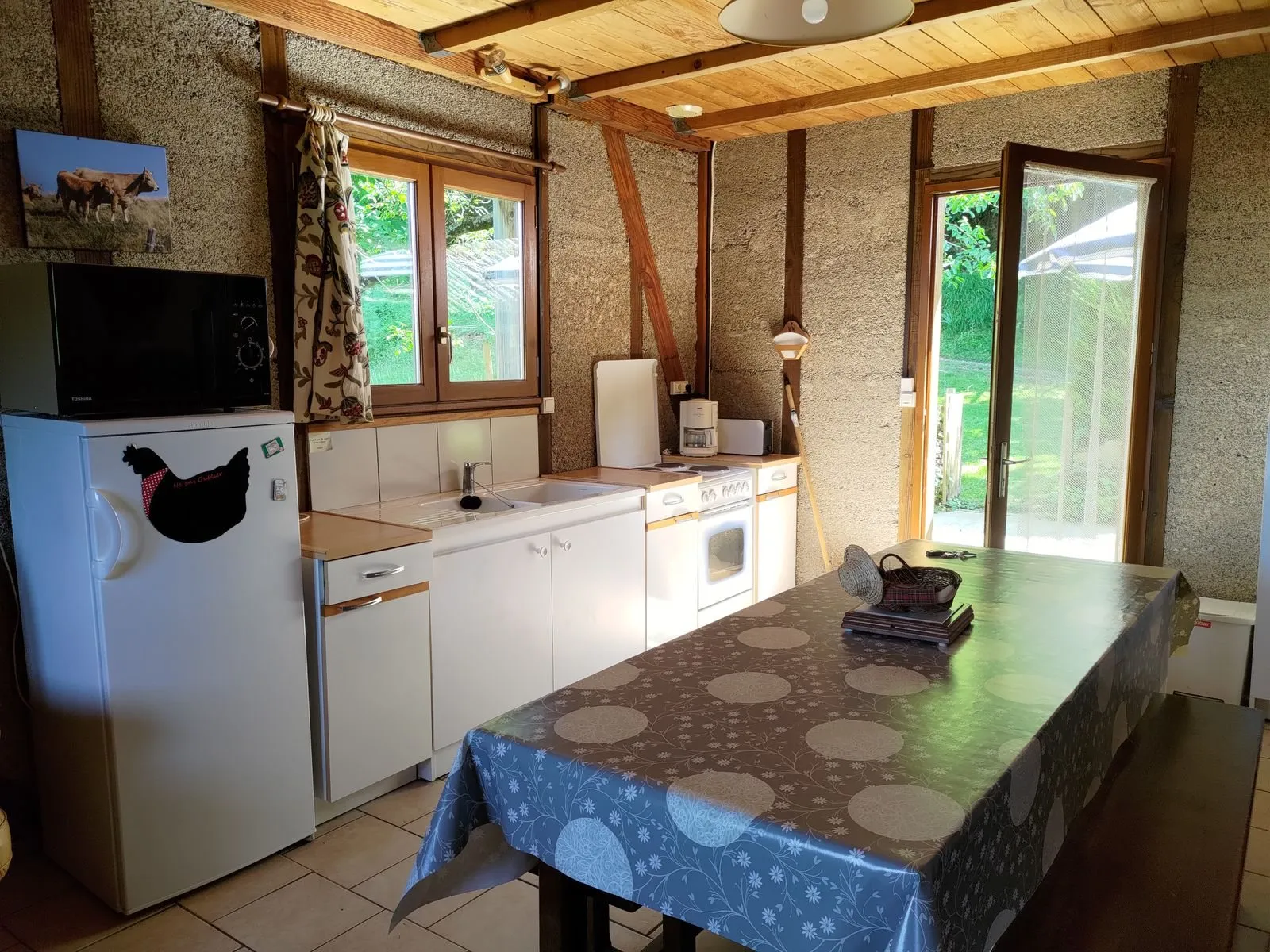 Gîte construit en colombage et chanvre, sur 2 niveaux, et mitoyen à une grange. A 300 m de la rivière Lot et du lac de Castelnau-Lassouts-Lous.