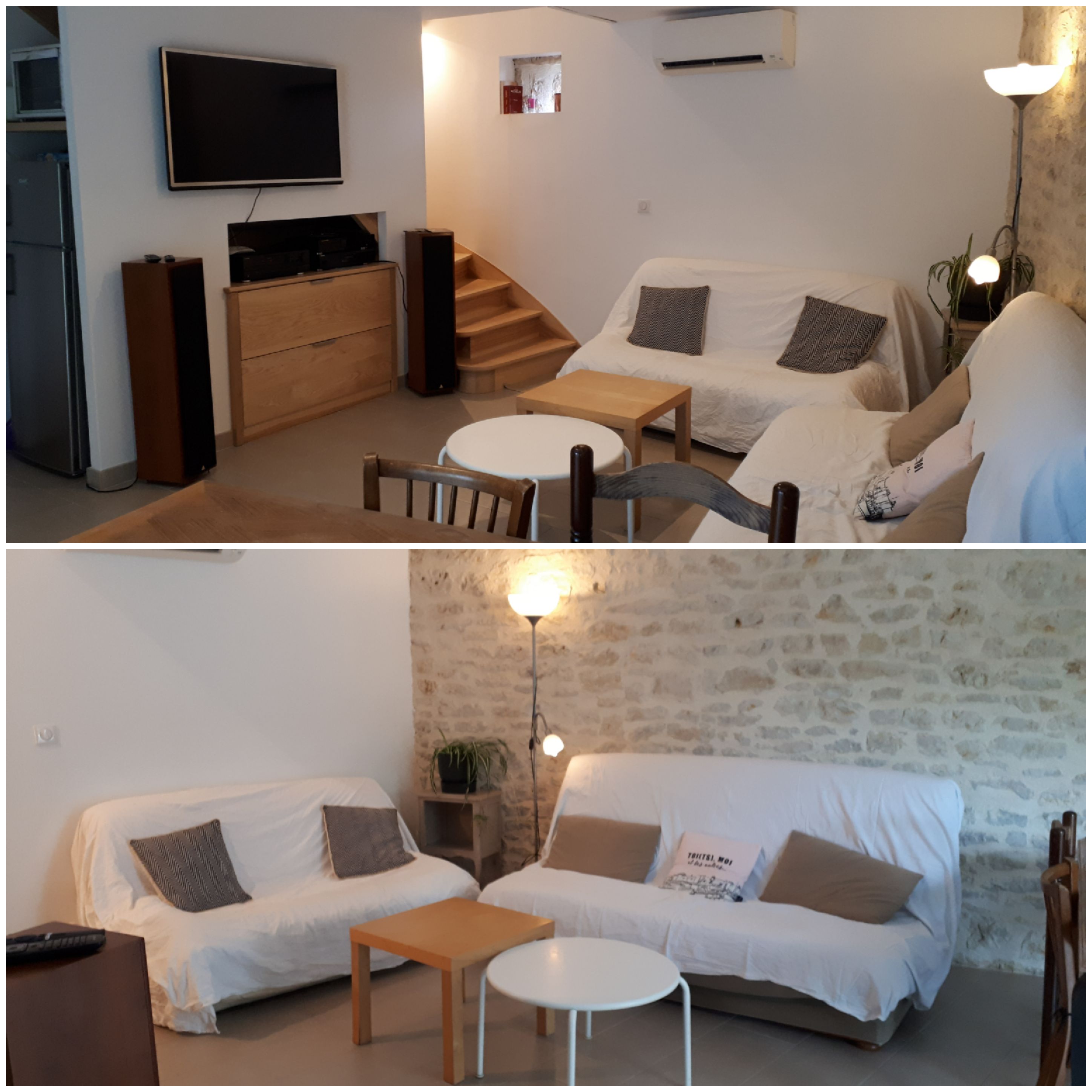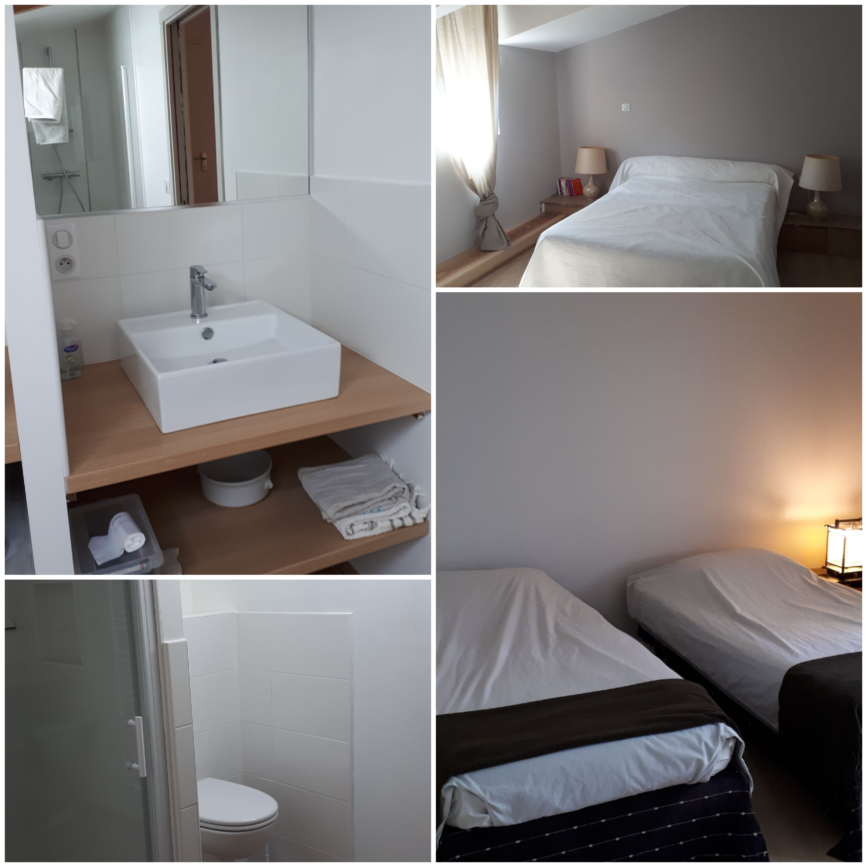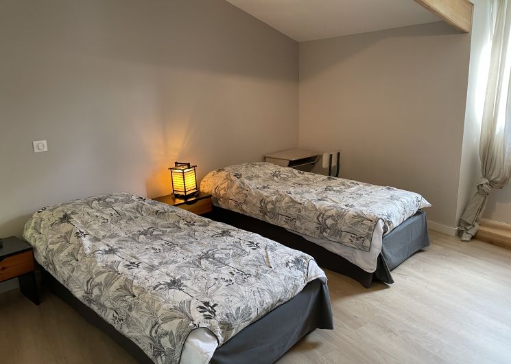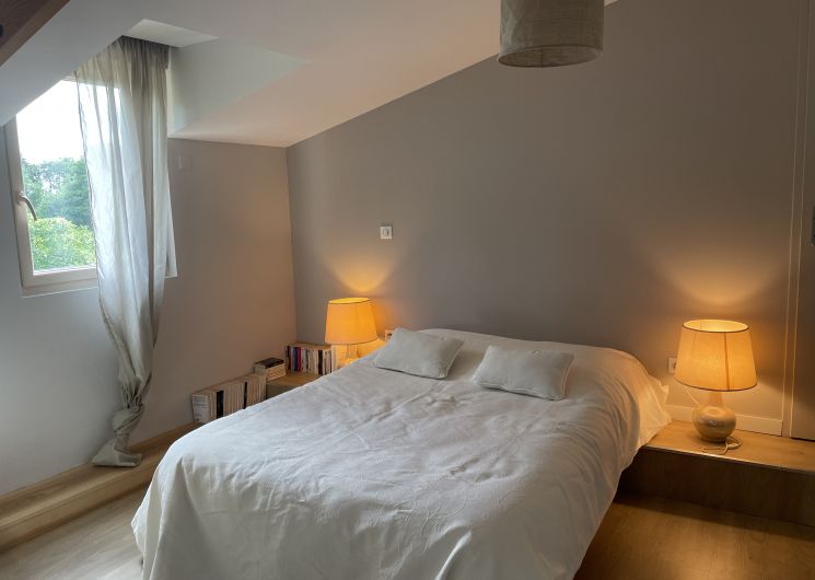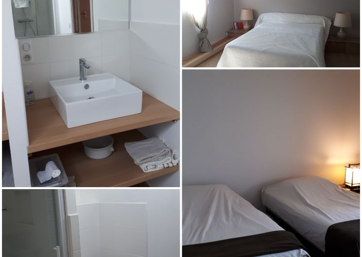 Le logement est dans une dépendance à 10 mètres de notre maison. Il comporte une cuisine et un salon privatif et s’ouvre sur un grand jardin accessible aux voyageurs. Au rez de chaussée se trouvent une petite cuisine et un séjour-salon avec un canapé-lit. Les deux chambres du 1er étage comportent chacune une salle de bain avec toilettes, douche et lavabo. Une chambre est équipée d’un lit 140 cm; l’autre de deux lits de 90 cm pouvant être réunis pour former un grand lit ou séparés pour créer deux couchages indépendants. Deux couchages d’appoint (chauffeuses en 90) peuvent être disponibles dans chaque chambre, ainsi qu’un lit bébé pliant. La cuisine est équipée d’un évier, d’un lave-vaisselle, d’une plaque électrique à deux feux, d’un réfrigérateur-congélateur, d’un four, d’une cafetière classique, d’une bouilloire. Equipement bébé et enfant disponible.