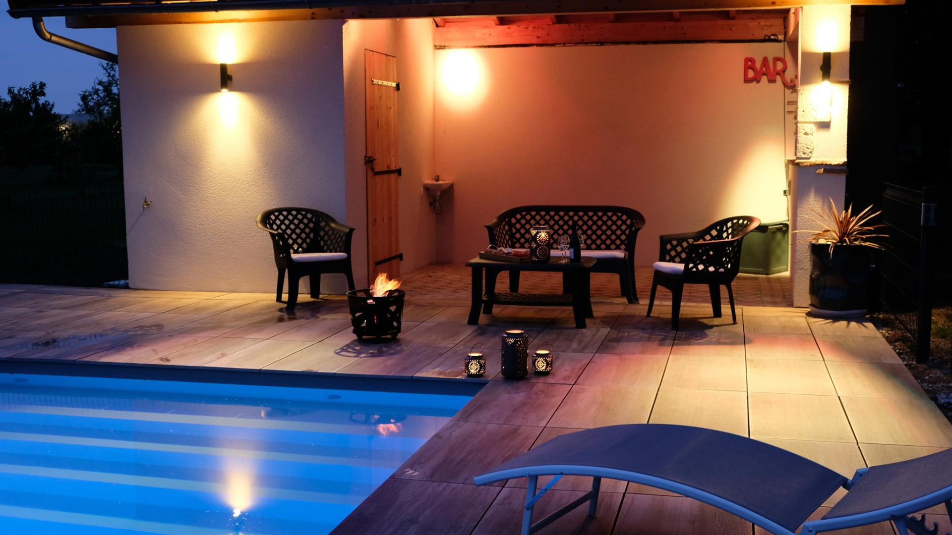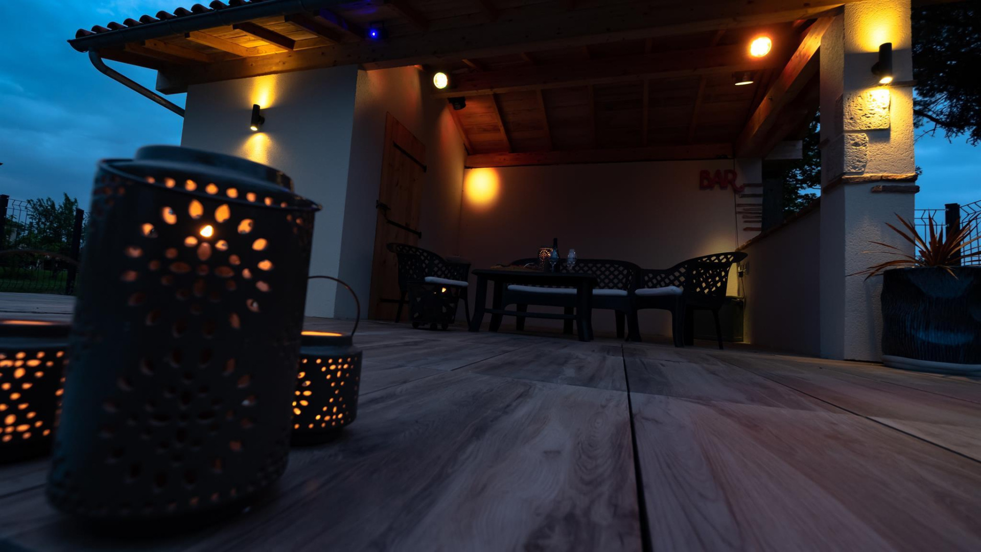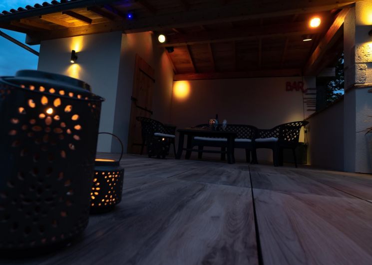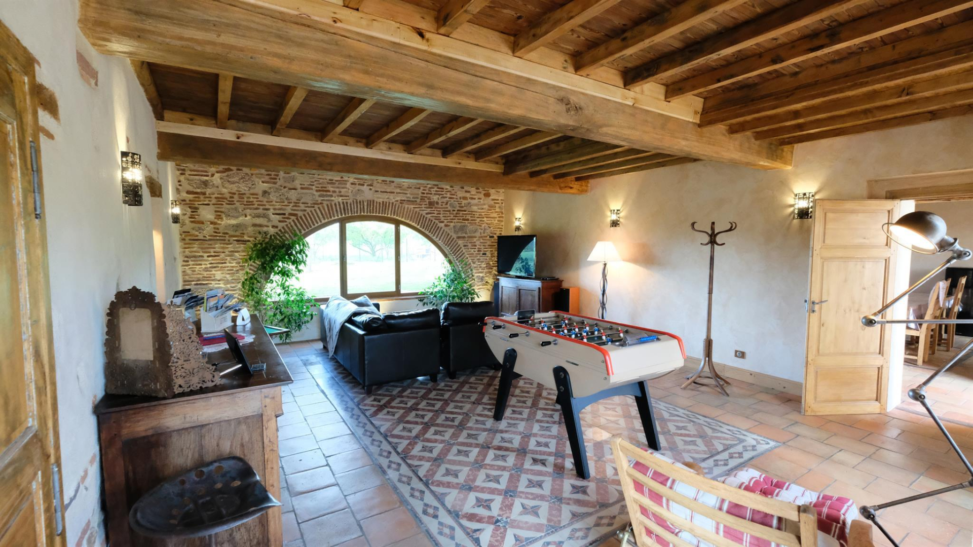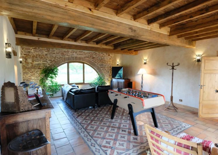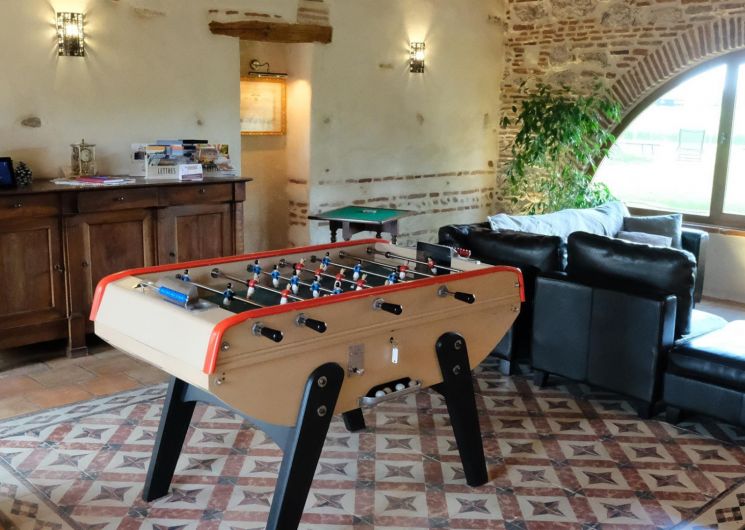 Tout est pensé pour les loisirs des petits et grands : baby-foot Bonzini B60, table de ping-pong, console XBOX 360 avec jeux sur DDUR + 2 manettes, home cinéma et ampli, TV écran plat 55′, lecteur DVD Blu-ray, lecteur carte SD MP3, table de mixage… mais aussi transat, salon de jardin, barbecue, plancha