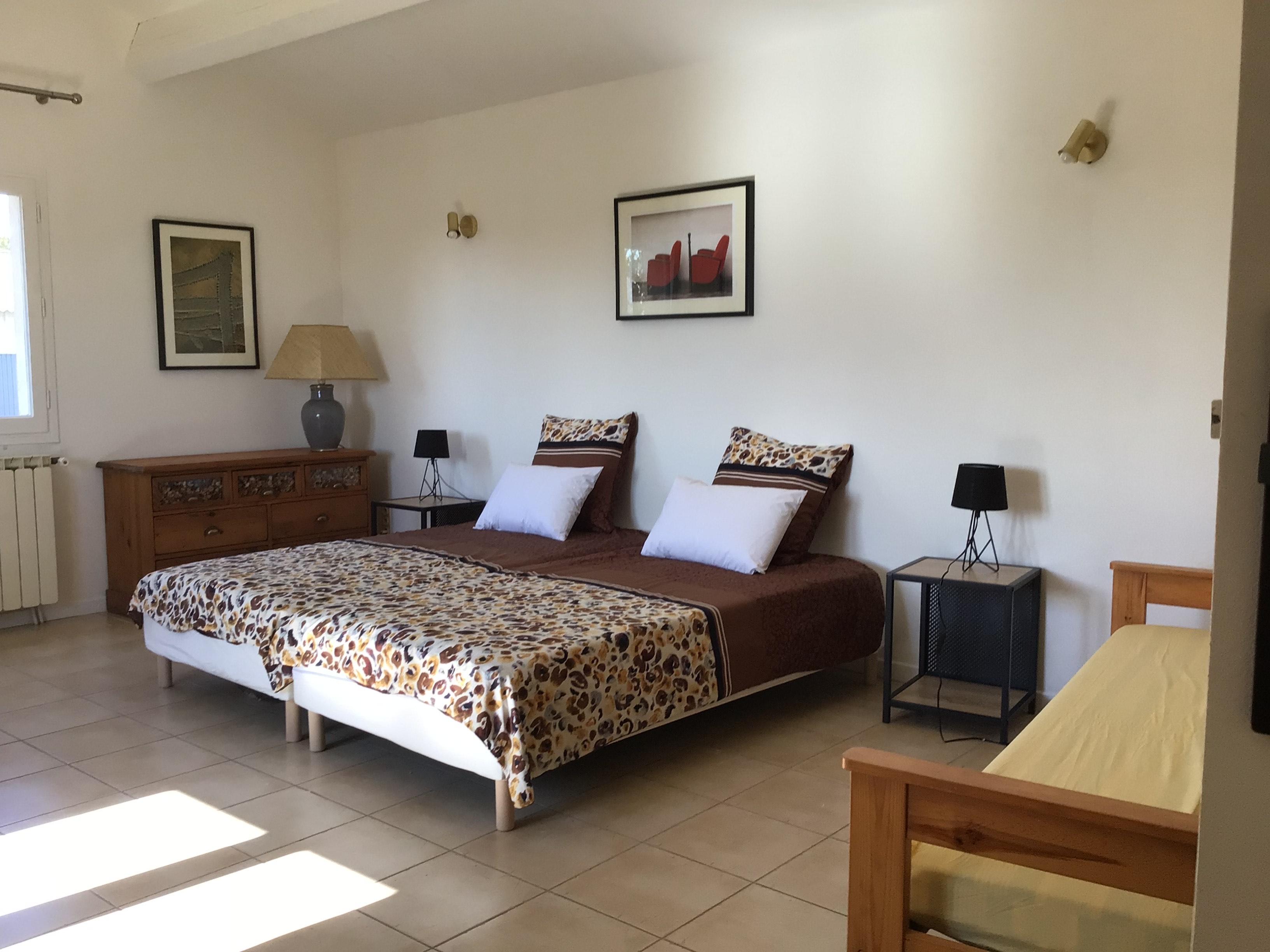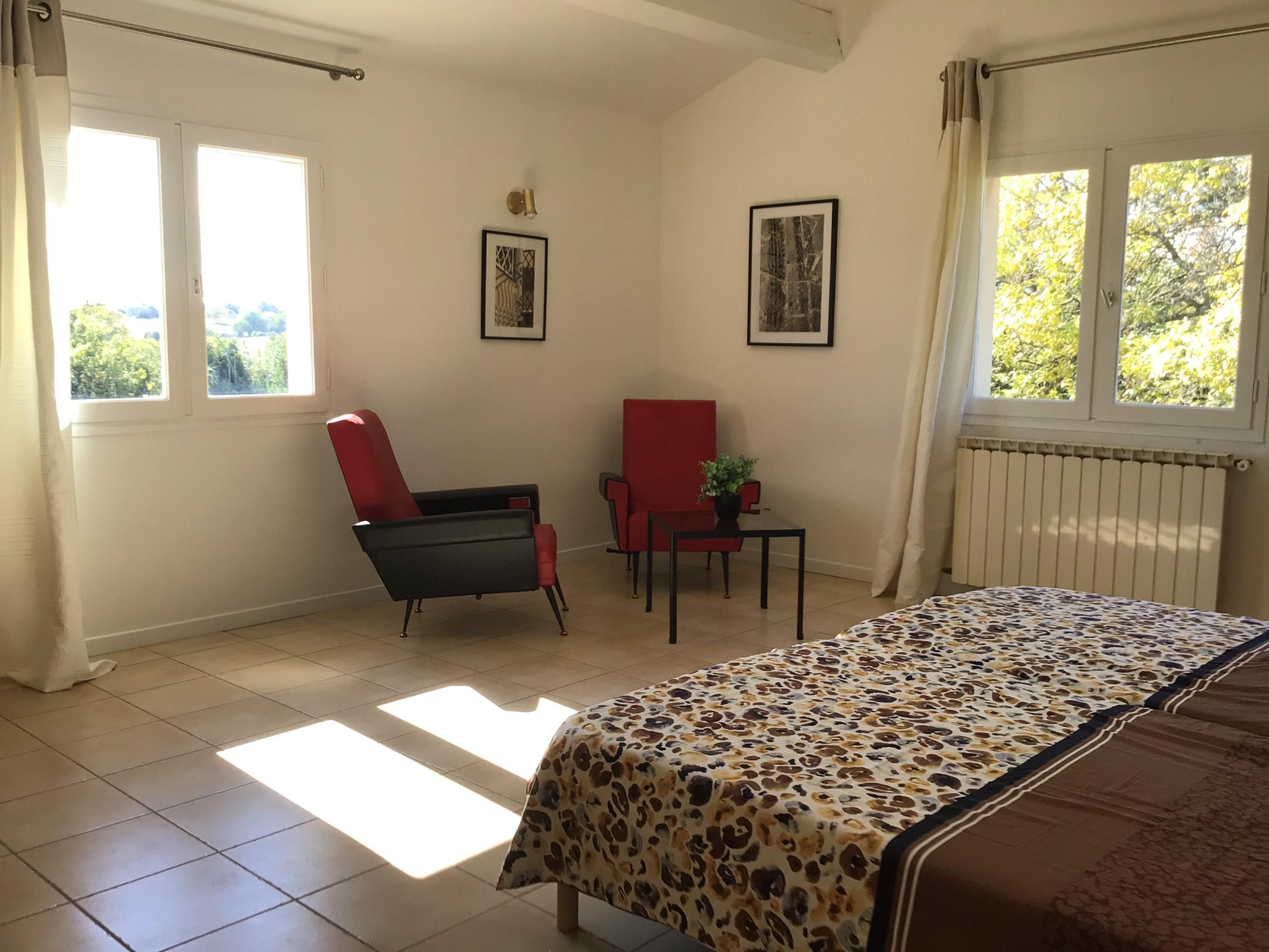 Ce logement de charme, classé 3 étoiles, est situé dans un ancien mas entouré de vignes. Entièrement refait à neuf, tout confort( piscine, wifi, climatisation, TV…)il est décoré par Francelyse et Bruno de meubles anciens, ainsi que de photos d’Artistes
