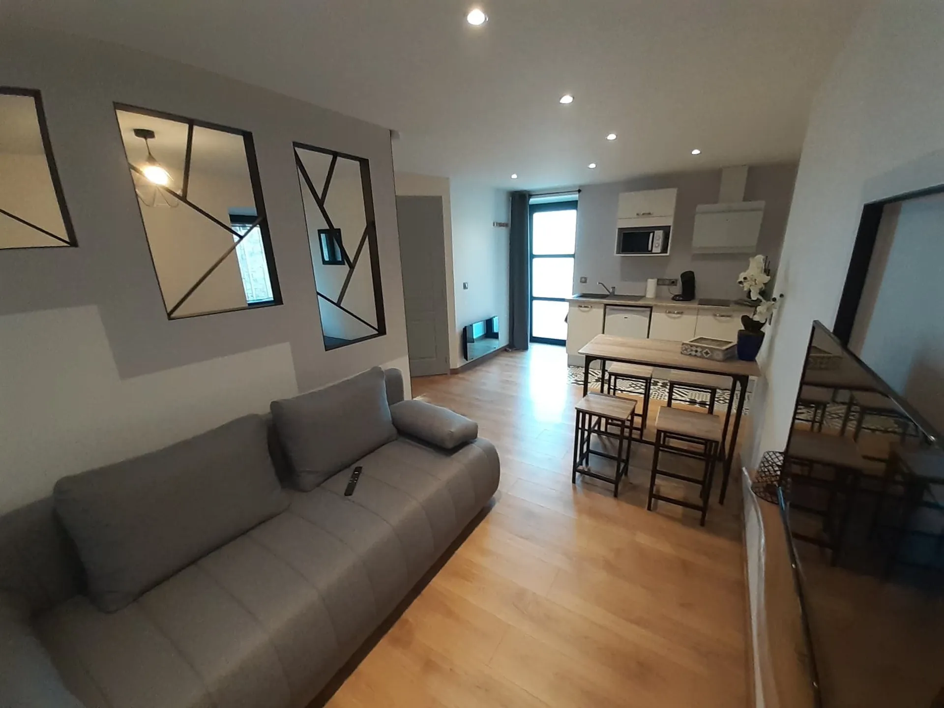 1 coin séjour : canapé convertible 140×190, télévision écran plat pivotante