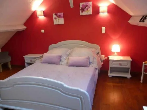 Gîte indépendant, sur 2 niveaux, isolé, en pleine campagne. 3 chambres (1 lit 160, 1 lit 140, 2 lits 90), salles d’eau (lave-linge), coin cuisine (lave-vaisselle)/séjour (canapé, cheminée, télévision, accès internet), salon (canapé convertible lit 140, télévision), chauffage complet électrique, terrasses privées (15 et 8 m) et terrain (600 m²) commun non clos, salon de jardin, barbecue. Draps, linge de table et de toilette en options. Equipement bébé (chaise haute, lit bébé, baignoire, transat, matelas à langer) sur demande.