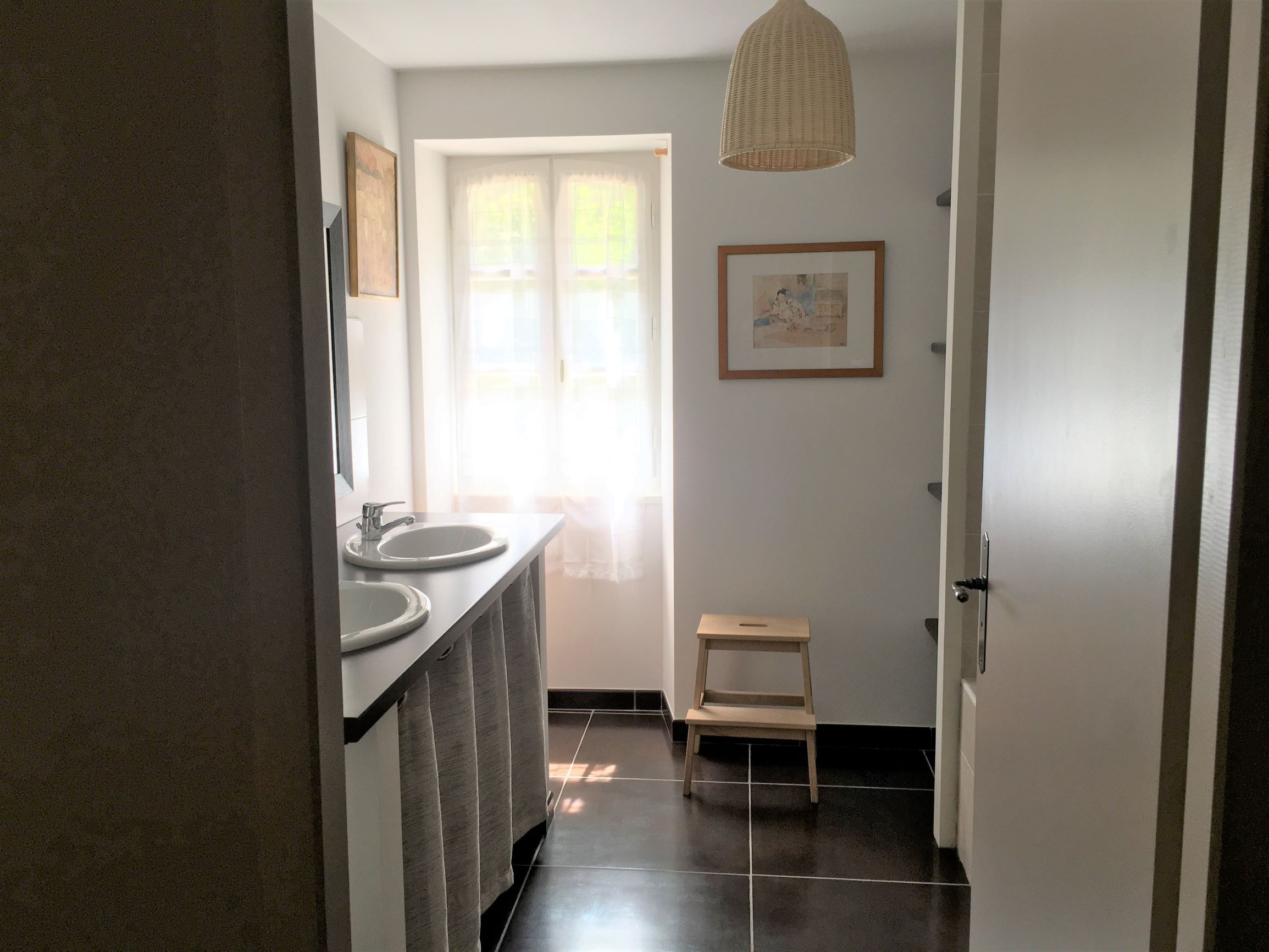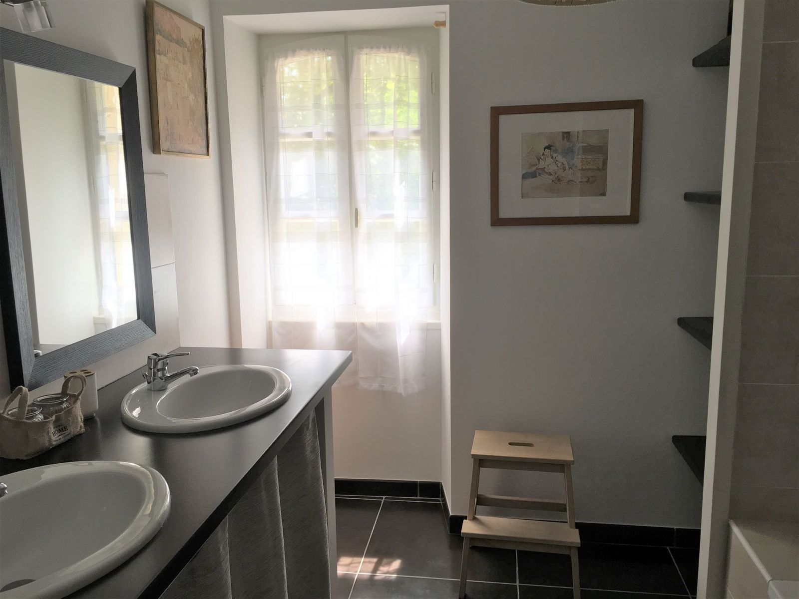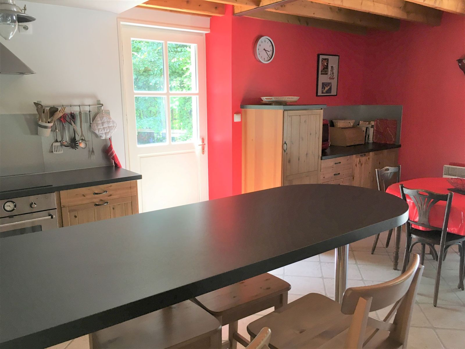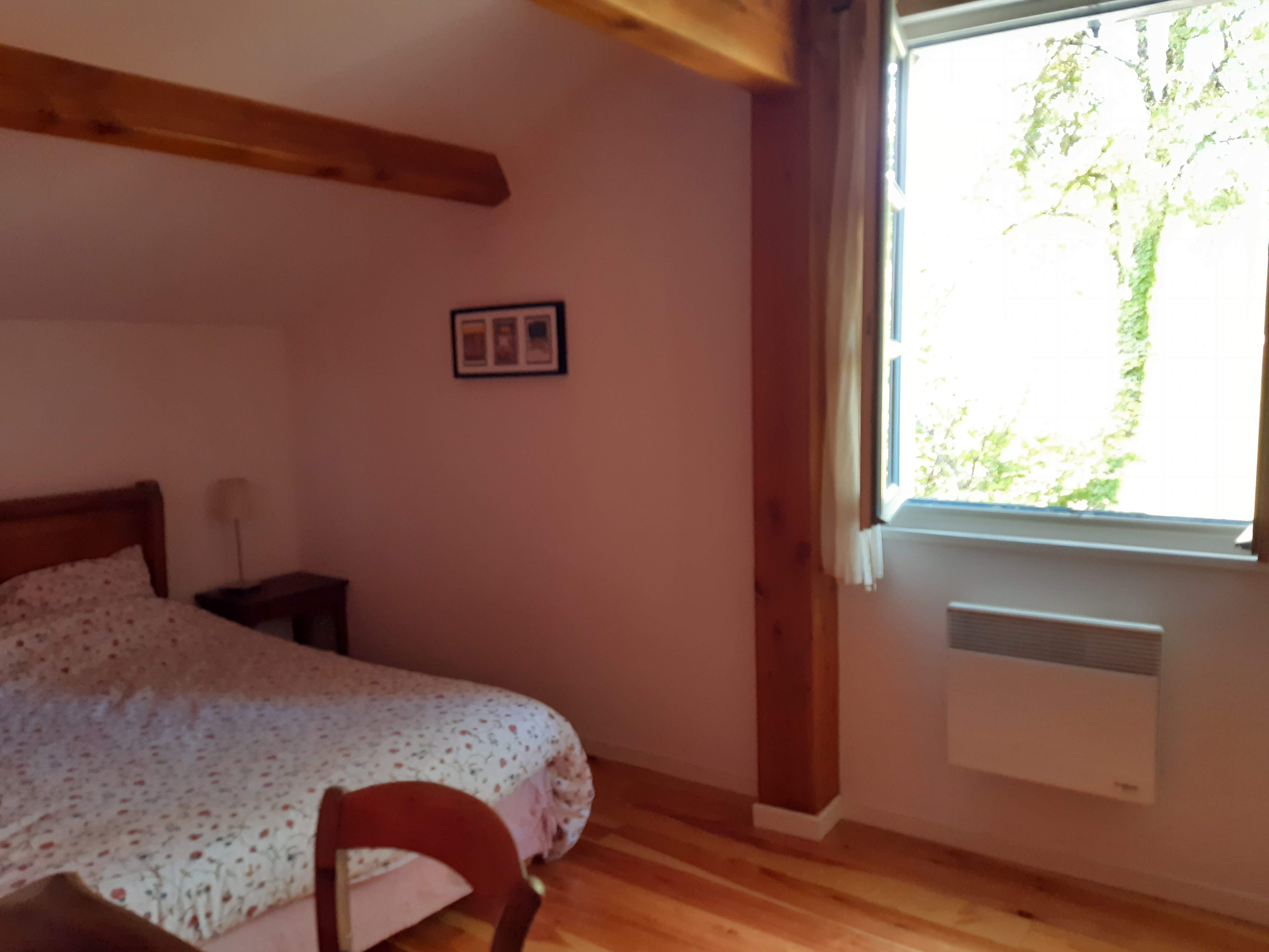 Au rdc : une salle (25 m2) où jadis les meules du moulin fonctionnaient servant de hall d’entrée spacieux, avec un wc et vestiaire, donnant sur un séjour (32 m2) avec un vaste espace cuisine (éléments intégrés (lave-vaisselle, plaques, four, réfrigérateur, congélateur, micro-ondes), un cellier (LL, SL). A l’étage : salon (canapé, fauteuil, TV, lecteur DVD, petit bureau d’écolier), 1 ch (1×160), 1 ch (1×140), 1 ch (2×90), sdb, WC. indépendant. Terrasse (40 m2) avec 2 salons de jardin, barbecue, transats. Terrain privé non clos (900 m2). Equipement bébé sur demande : lit, chaise haute, baignoire. Le prix comprend : le chauffage, l’électricité, la taxe de séjour. En option : loc draps, linge de maison et de toilette, ménage. Pas de wifi.